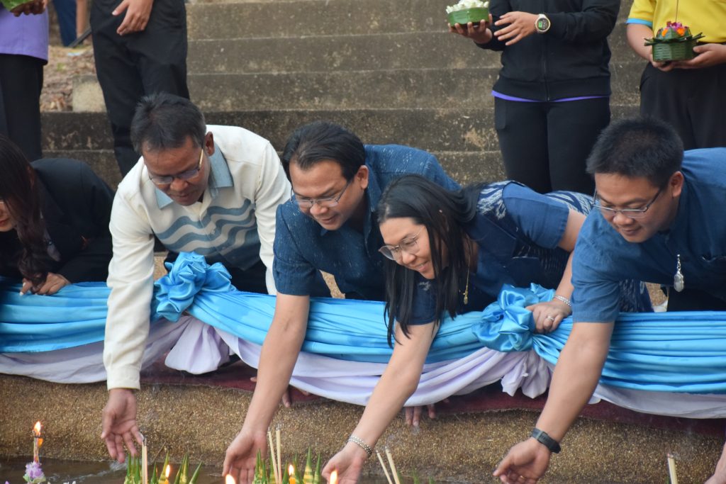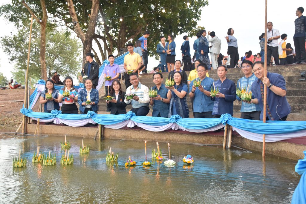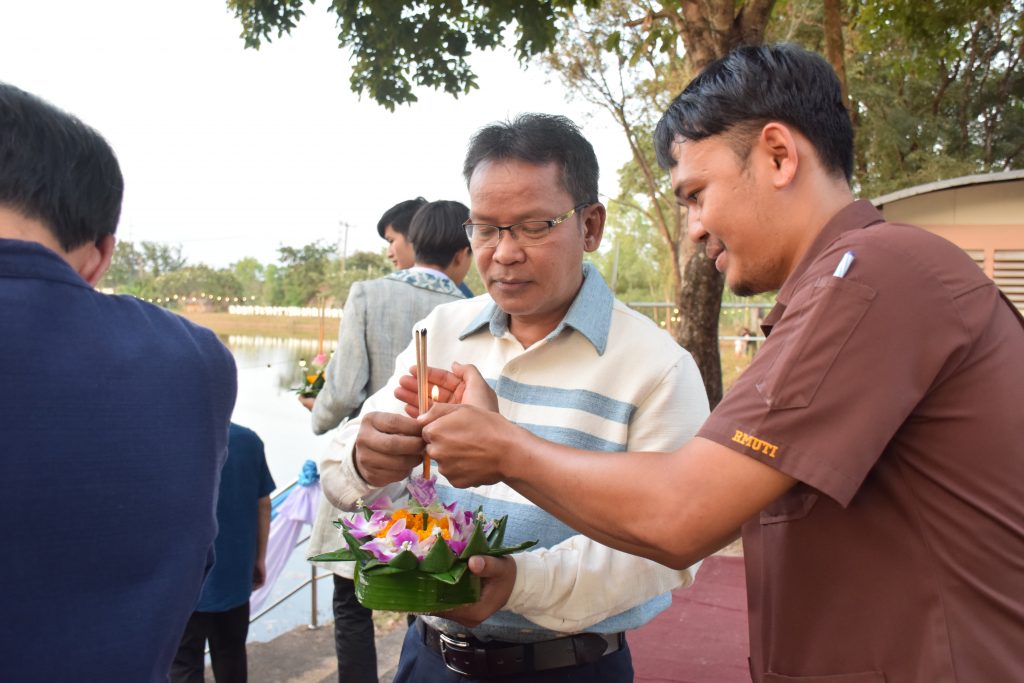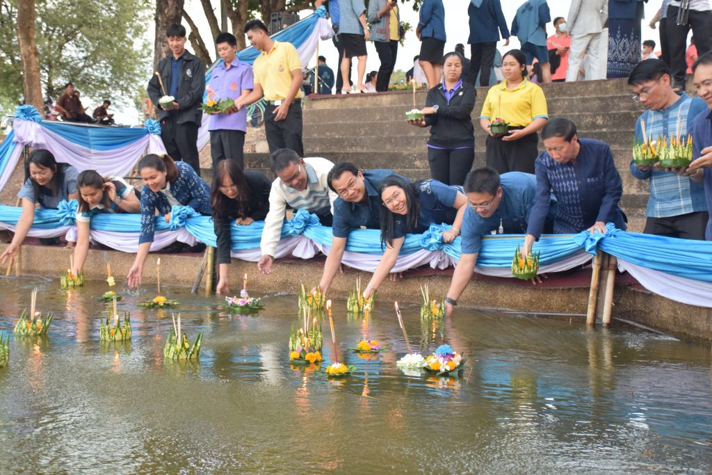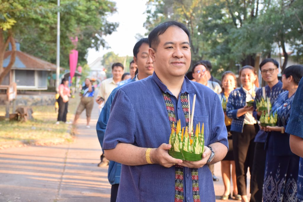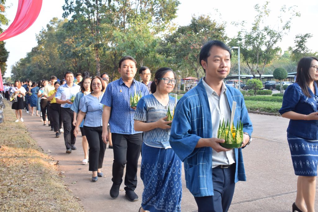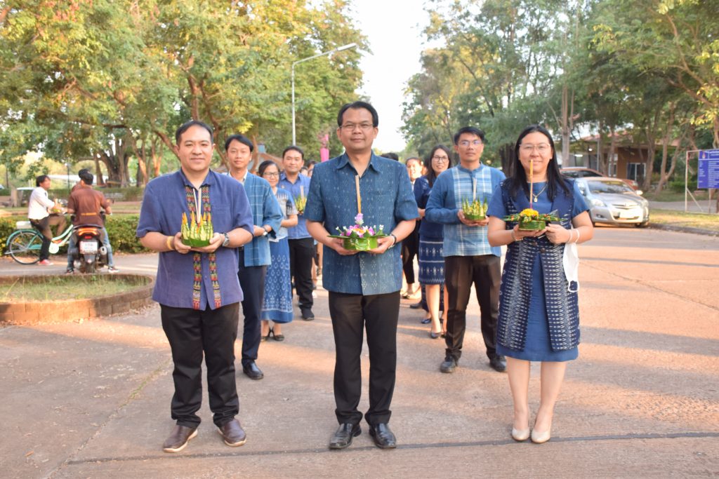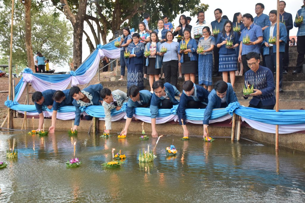 วันที่ 27 พฤศจิกายน 2566 สโมสรนักศึกษาคณะอุตสาหกรรมและเทคโนโลยี จัดโครงการอนุรักษ์ประเพณีไทย “ลอยกระทง” ประจำปีการศึกษา 2566 ณ บริเวณท่าน้ำหน้าอาคารสำนักงานวิทยาเขตสกลนคร เพื่อส่งเสริมให้นักศึกษาได้ตระหนักถึงการอนุรักษ์วัฒนธรรมประเพณีอันดีงามของไทย ร่วมกันสืบสานประเพณีวันลอยกระทง ทั้งนี้ ผศ.ดร.สุริยา แก้วอาษา พร้อมด้วย คณะผู้บริหาร คณาจารย์ เจ้าหน้าที่ และนักศึกษา ร่วมสวมชุดผ้าไทย ผ้าย้อมคราม เดินขบวนเข้าร่วมงานลอยกระทงในปีนี้ เพื่อส่งเสริมการแต่งชุดผ้าไทย และสืบสานภูมิปัญญาผ้าย้อมครามของจังหวัดสกลนคร ในการนี้ ผศ.น.สพ.ดร.ชเวง สารคล่อง รองอธิการบดีประจำวิทยาเขตสกลนคร ให้เกียรติเป็นประธานในพิธีเปิดโครงการ พร้อมทั้งร่วมลอยกระทงในครั้งนี้ด้วย