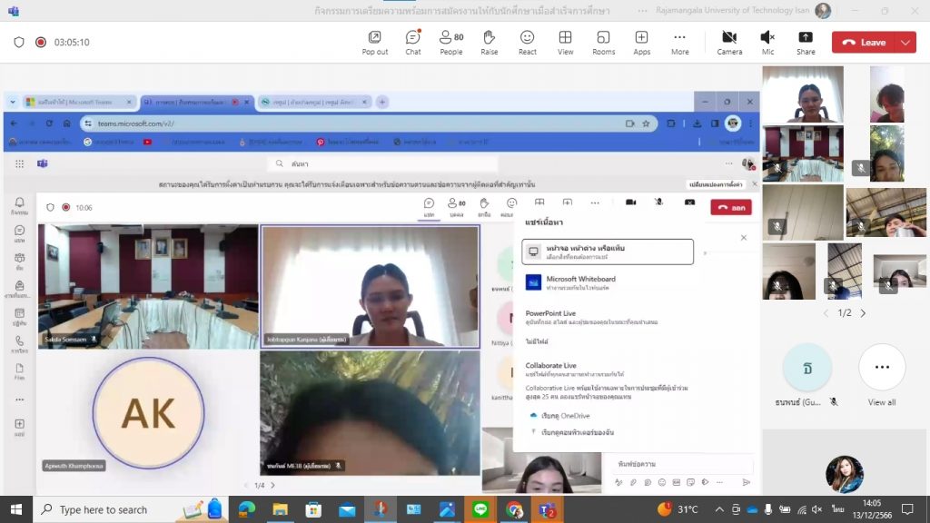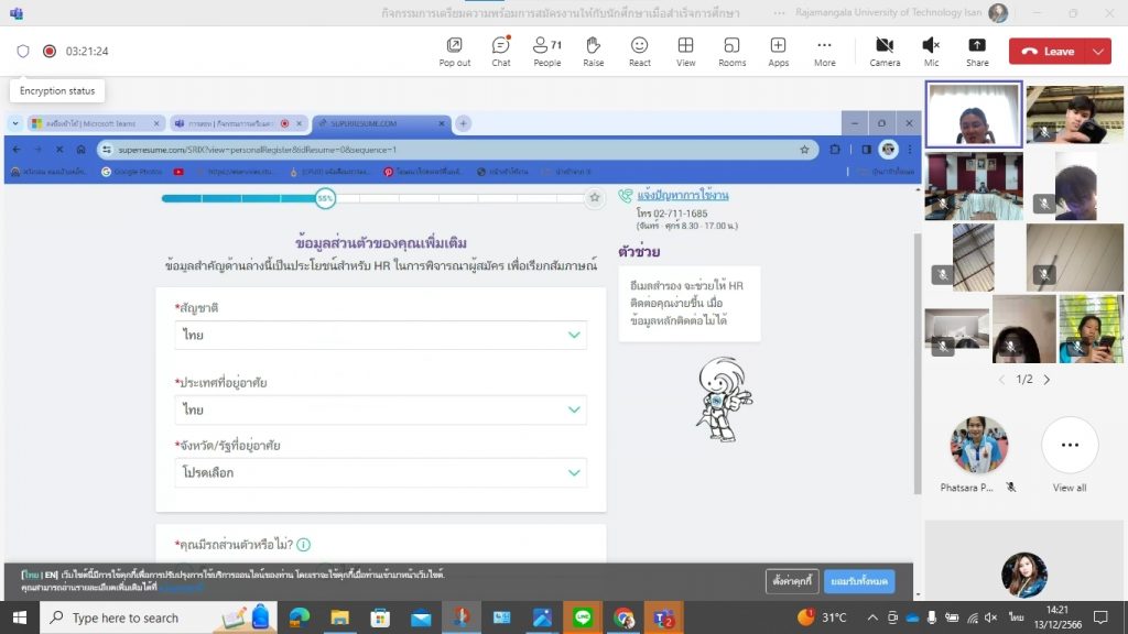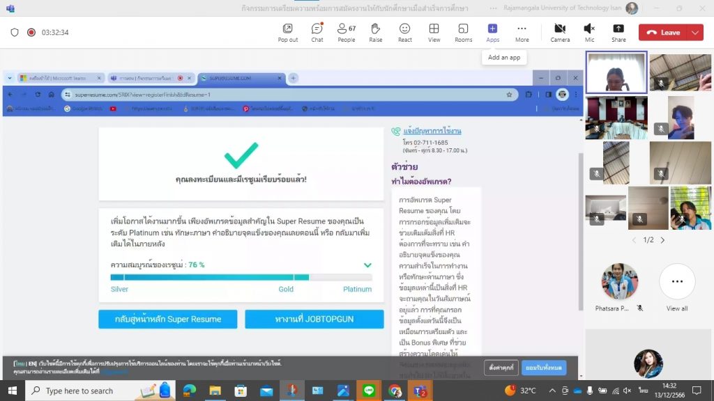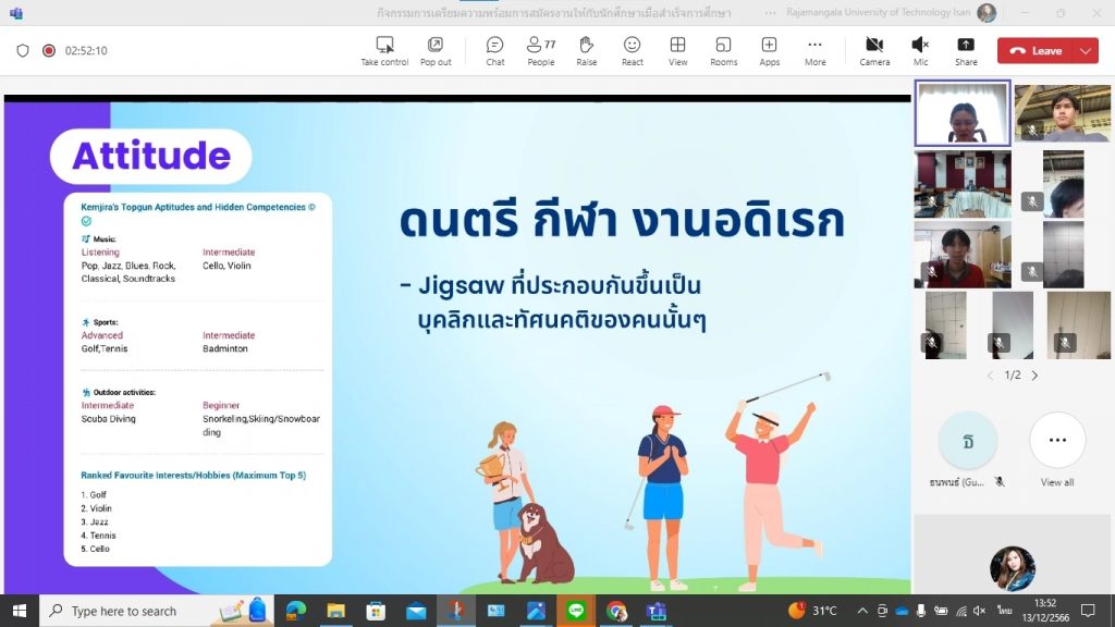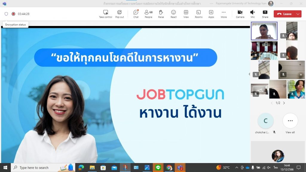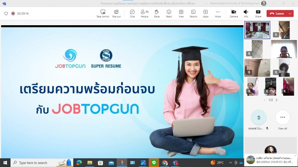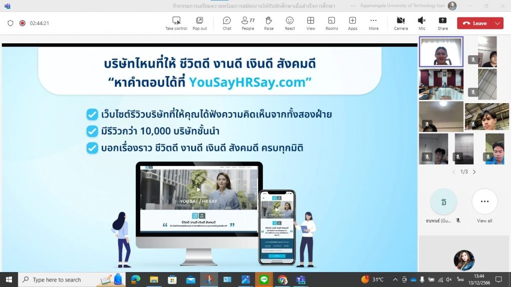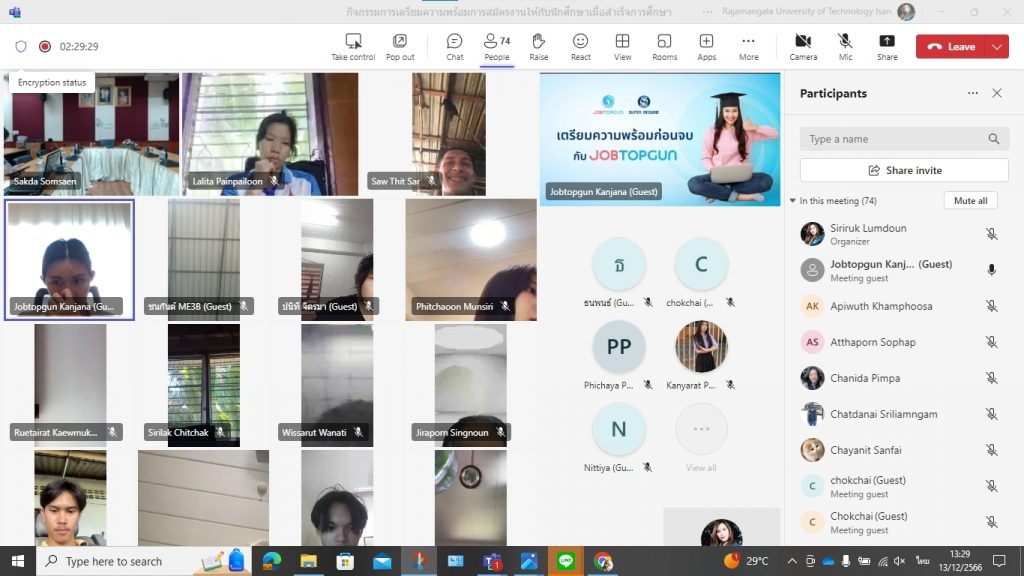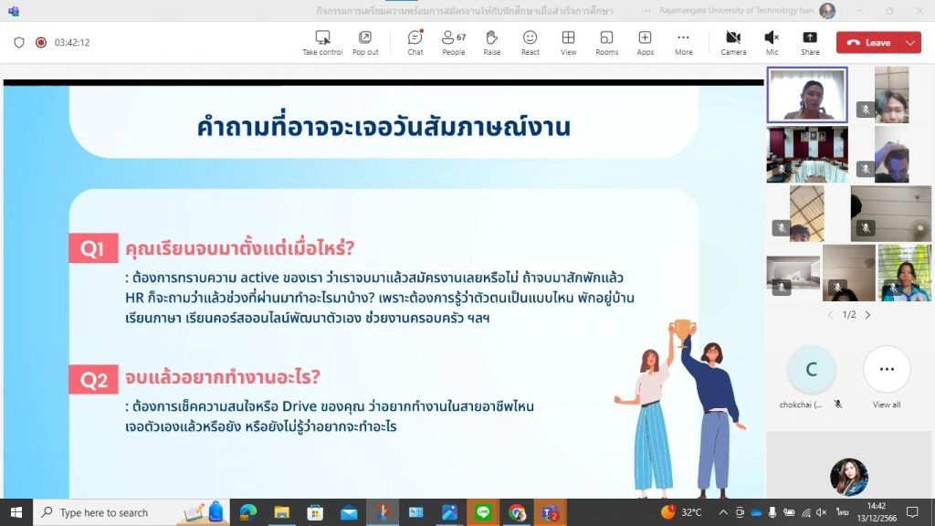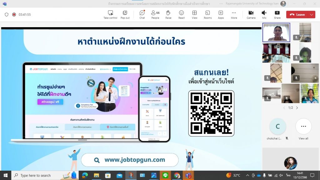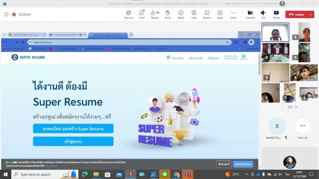 วันที่ 13 ธันวาคม 2566 คณะอุตสาหกรรมและเทคโนโนโลยี มทร.อีสาน วิทยาเขตสกลนคร จัดกิจกรรมการเตรียมความพร้อมการสมัครงานให้กับนักศึกษาเมื่อสำเร็จการศึกษา ผ่านระบบออนไลน์ Microsoft Teams โดยมีวัตถุประสงค์เพื่อให้ความรู้กับนักศึกษาในการเตรียมความพร้อมการสมัครงานกับสถานประกอบการ เป็นการเปิดโอกาสให้นักศึกษาได้ซักถามถึงข้อสงสัยเกี่ยวกับการสมัครงาน โดยได้รับเกียรติจากคุณปรัชญ์กวิน กิตติเลิศวีรกุล วิทยากรพิเศษจาก JOB TOPGUN บรรยายในหัวข้อ“เขียนรีซูเม่ให้ปัง จบใหม่ยังไงก็ได้งาน” ในการนี้ อาจารย์จารุวัฒน์ ถาวรไพศาลชีวะ รองคณบดีฝ่ายพัฒนานักศึกษา ให้เกียรติเป็นประธานในพิธีเปิดโครงการ
