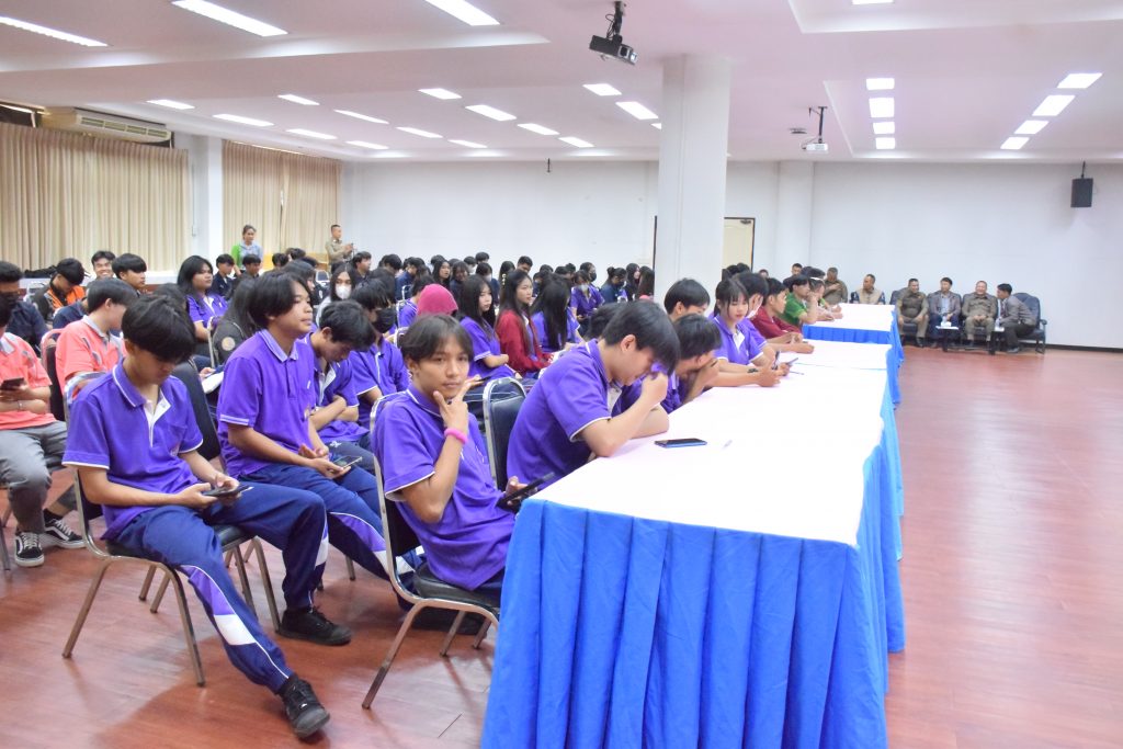 วันที่ 13 ธันวาคม 2566 คณะอุตสาหกรรมและเทคโนโนโลยี มทร.อีสาน วิทยาเขตสกลนคร จัดกิจกรรมดูแลให้คำปรึกษานักศึกษาทุนนวัตกรรมสายอาชีพชั้นสูง กองทุนเพื่อความเสมอภาค ทางการศึกษา (กสศ.) ณ ห้องประชุมค้ำคูณ 4 อาคารสำนักงานคณบดีคณะอุตสาหกรรมและเทคโนโลยี โดยมีวัตถุประสงค์เพื่อส่งเสริมกระบวนการให้คำปรึกษา ดูแลความเป็นอยู่และเฝ้าระวัง ให้นักศึกษาสามารถสำเร็จการศึกษาได้ตามเกณฑ์ระยะเวลาที่กำหนด โดยได้รับเกียรติจาก พ.ต.ท.ปภาวิน ไชยคำภา รองผู้กำกับการป้องกันปราบปราม สถานีตำรวจภูธรพังโคน พร้อมคณะ เป็นวิทยากร ในการนี้ ผศ.ดร.สัณหวัจน์ ทองแดง รองคณบดีฝ่ายวิชาการและวิจัย ให้เกียรติเป็นประธานในพิธีเปิดโครงการ