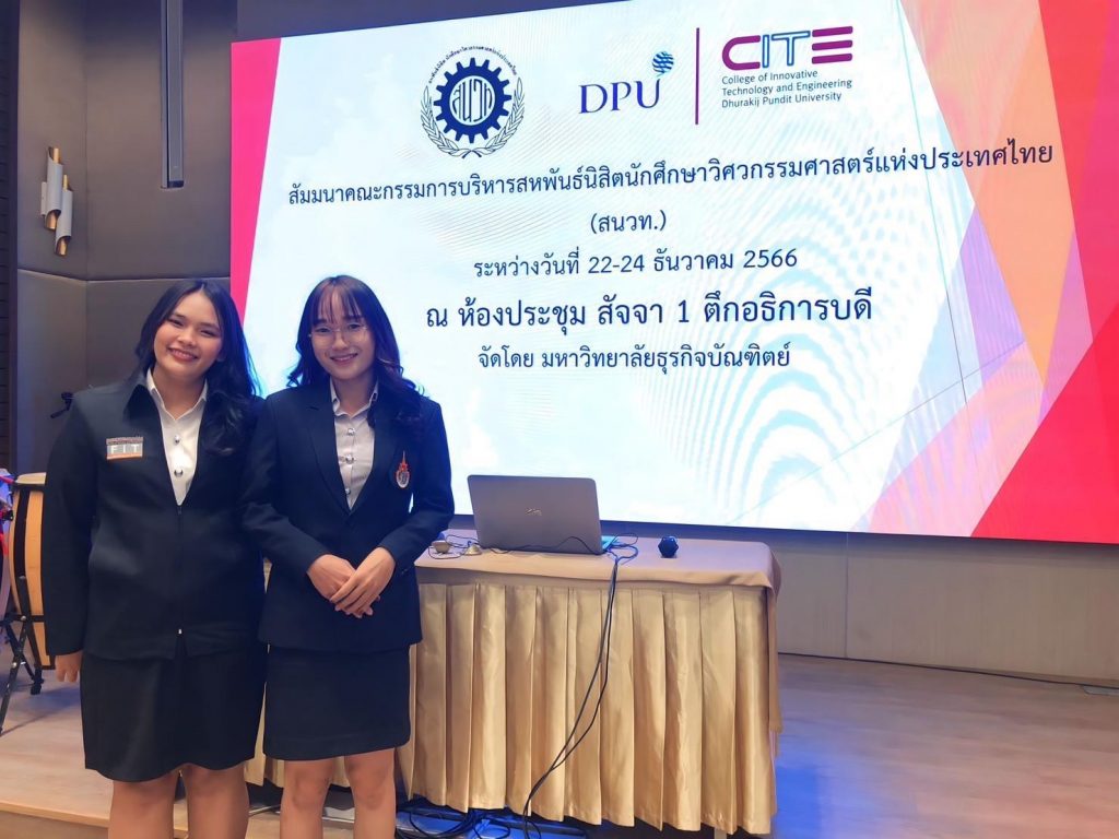 วันที่ 22 – 24 ธันวาคม 2566 สโมสรนักศึกษาคณะอุตสาหกรรมและเทคโนโลยี เข้าร่วมกิจกรรมสัมมนาคณะกรรมการบริหารสหพันธ์นิสิตนักศึกษาวิศวกรรมศาสตร์แห่งประเทศไทย (สนวท.) และศึกษาดูงาน ณ มหาวิทยาลัยธุรกิจบัณฑิตย์ กรุงเทพฯ เพื่อร่วมมือในการพัฒนาองค์กร การจัดทำแผนงานการอบรมหารือ เพื่อสร้างเครือข่ายระหว่างมหาวิทยาลัย นำไปสู่ความร่วมมือ ในพัฒนาองค์กรต่อไป โดยมี นายสกุลกาญจน์ จราฤทธิ์ นายกสโมสรนักศึกษาคณะอุตสาหกรรมและเทคโนโลยี และ นางสาวปิยะฉัตร สนธาทร เลขานุการสโมสรนักศึกษา เข้าร่วมกิจกรรมในครั้งนี้ด้วย