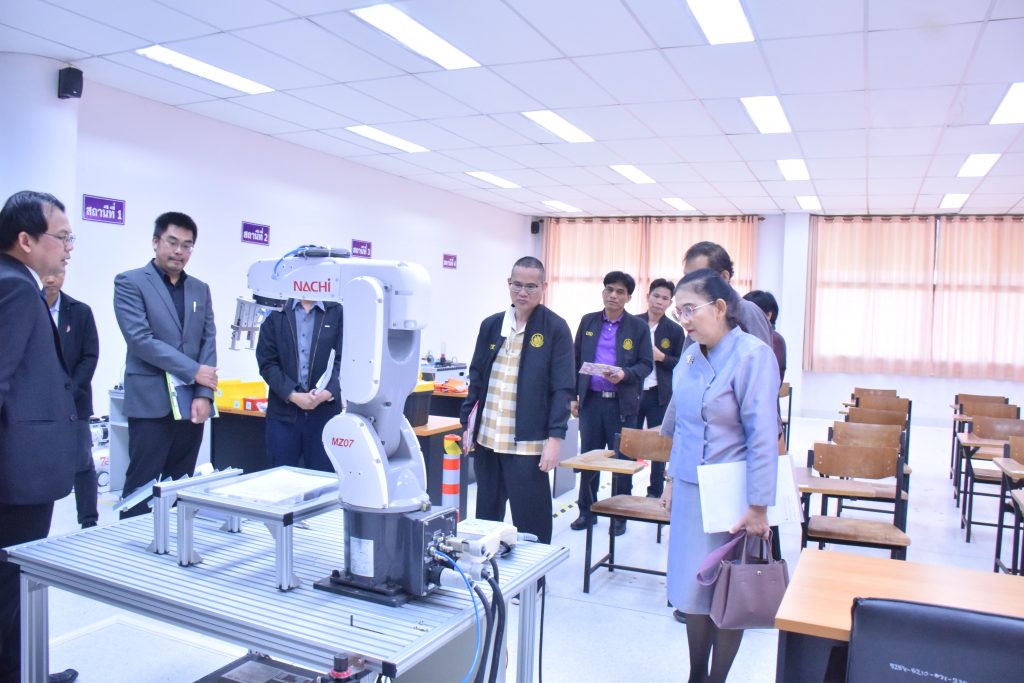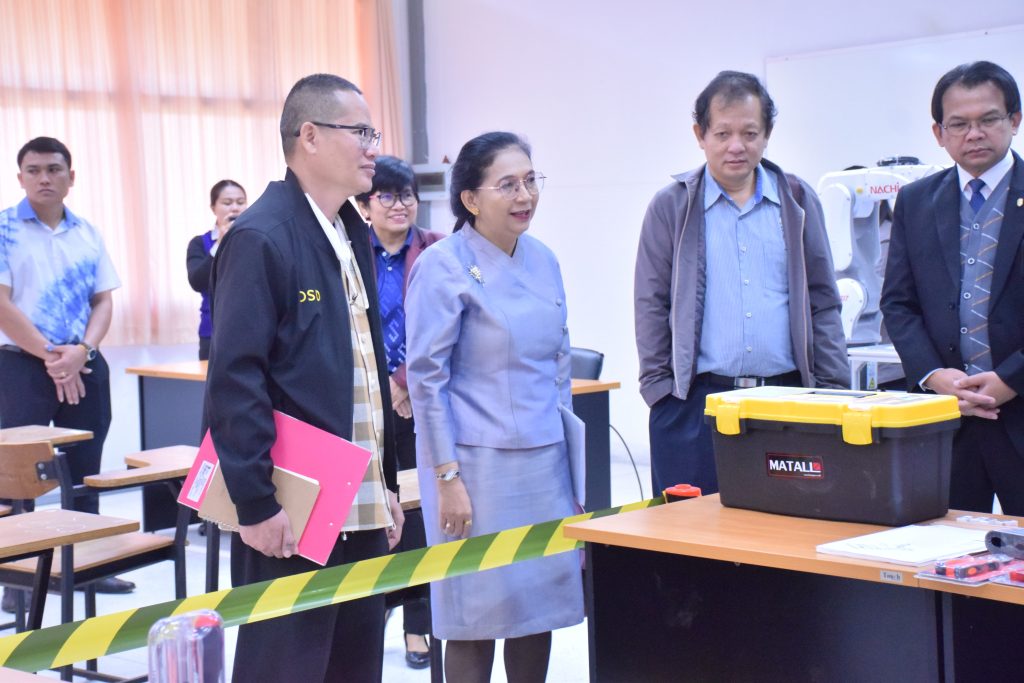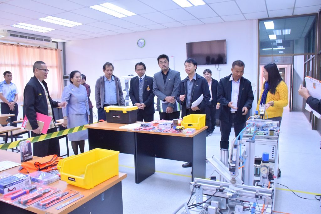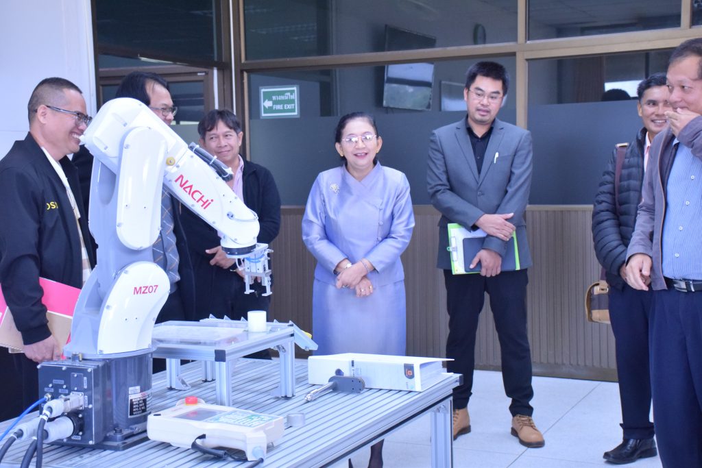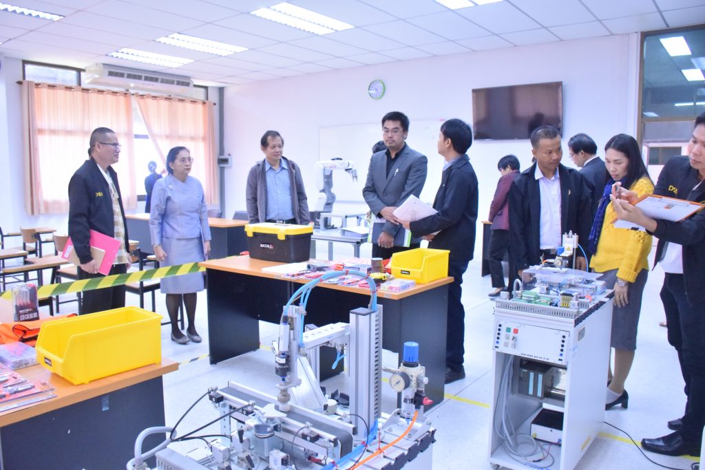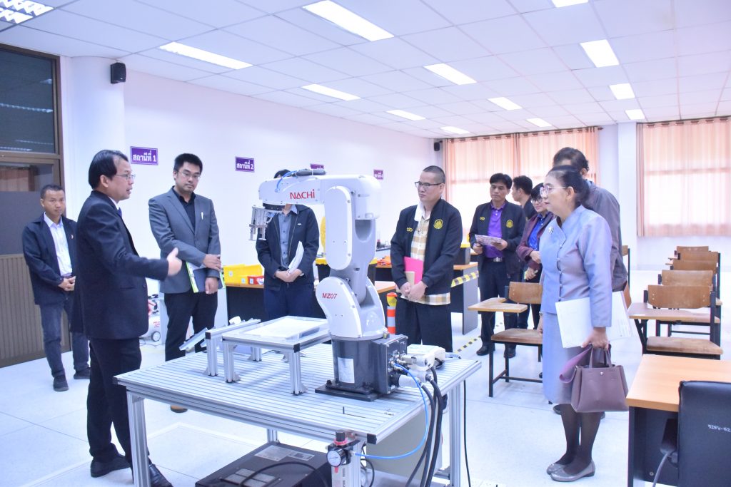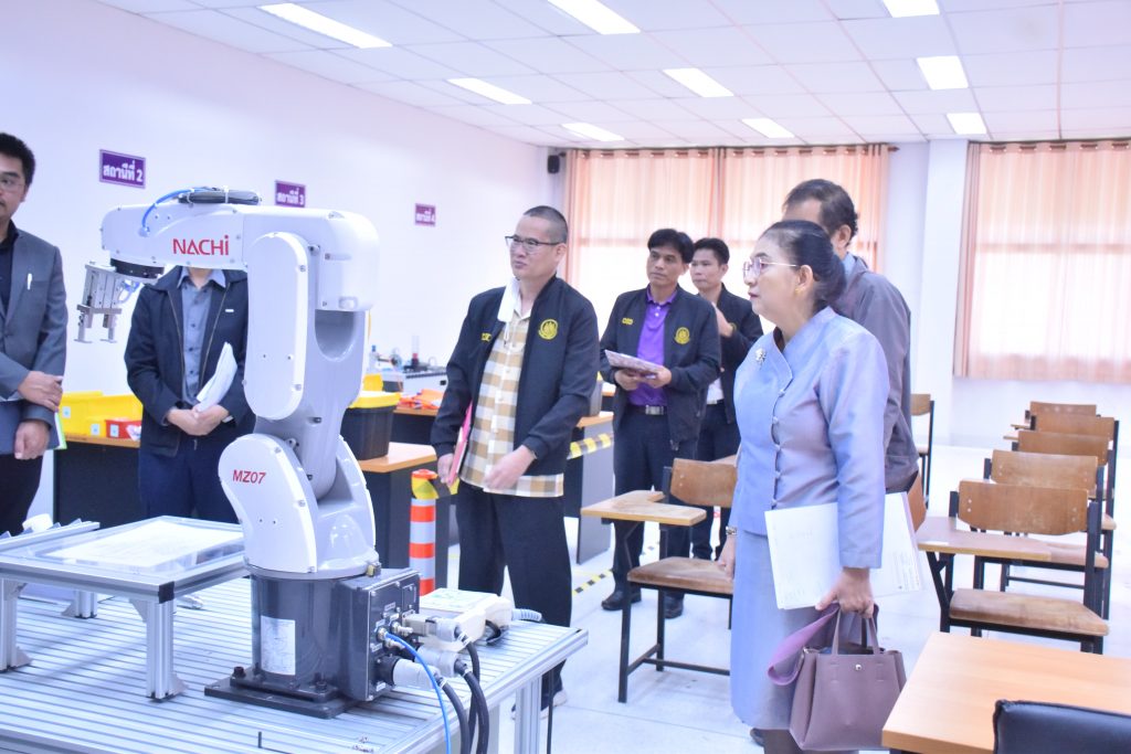 วันที่ 29 ธันวาคม 2566 คณะอุตสาหกรรมและเทคโนโลยี มทร.อีสาน วิทยาเขตสกลนคร นำโดย ผศ.ดร.สุริยา แก้วอาษา คณบดีคณะอุตสาหกรรมและเทคโนโลยี พร้อมด้วย คณะผู้บริหาร คณาจารย์และเจ้าหน้าที่ ร่วมต้อนรับคณะผู้บริหารจาก สำนักงานพัฒนาฝีมือแรงงานสกลนคร นำโดย คุณชนกานต์ บุญราศรี ผู้อำนวยการสำนักงานพัฒนาฝีมือแรงงานสกลนคร คุณยุทธจักร คงคำ นักวิชาการพัฒนาฝีมือแรงงานชำนาญการ พร้อมคณะ ในโอกาสเข้าตรวจสอบความพร้อม ด้านสถานที่ วัสดุ อุปกรณ์ เครื่องมือ และความเหมาะสมในการอนุญาตเป็นผู้ดำเนินการทดสอบมาตรฐานฝีมือแรงงานแห่งชาติ สาขาช่างเมคคาทรอนิกส์และหุ่นยนต์อุตสาหกรรม ระดับ 1 ณ อาคารสำนักงานคณบดีคณะอุตสาหกรรมและเทคโนโลยี