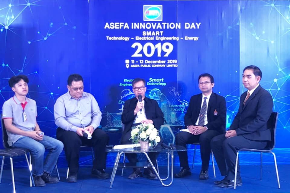 ในโอากสเดียวกันนี้ ผู้ช่วยศาสตราจาร์ ดร.สุริยา แก้วอาษา คณบดีคณะอุตสาหกรรมและเทคโนโลยี ได้นำคณะอาจารย์และนักศึกษาร่วมเสวนาในงาน ASEFA INNOVATION DAY 2019 และเยี่ยมชมนวัตกรรม และท้ายนี้ ขอขอบคุณ คุณไพบูลย์ อังคณากรกุล กรรมการผู้จัดการ เป็นอย่างสูง ที่พร้อมสนับสนุนพันธกิจของคณะอุตสาหกรรมและเทคโนโลยี มทร.อีสาน วิทยาเขตสกลนคร
