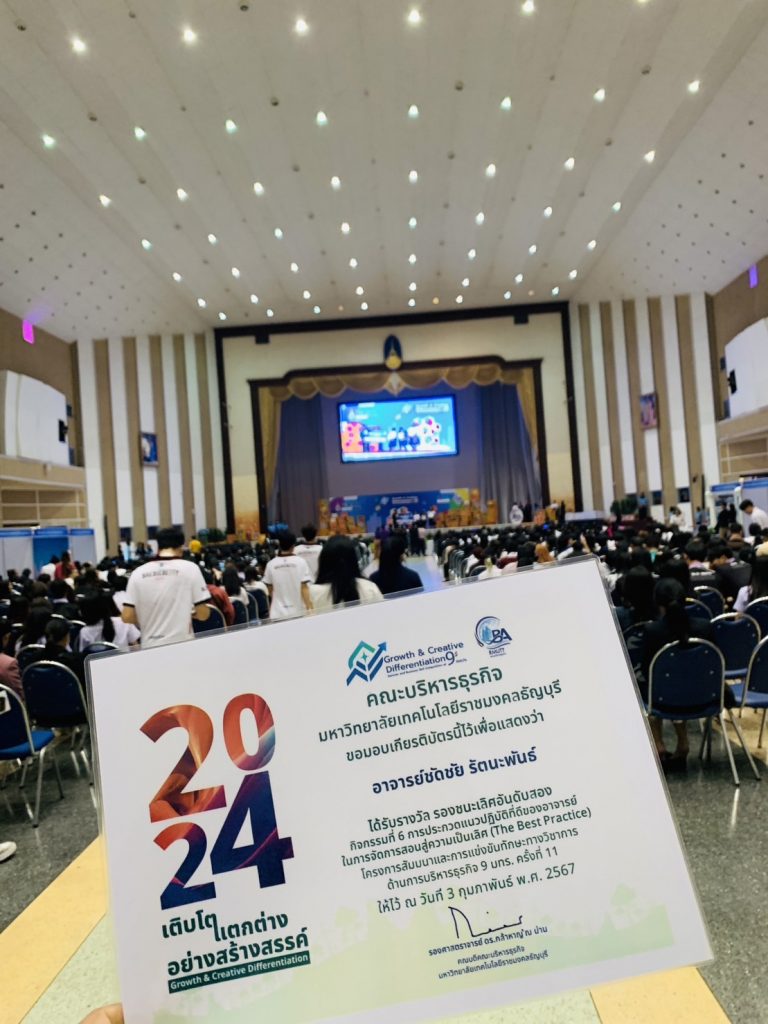 วันที่ 1 – 3 กุมภาพันธ์ 2567 คณาจารย์และนักศึกษา สาขาบริหารธุรกิจ คณะอุตสาหกรรมและเทคโนโลยี มทร.อีสาน วิทยาเขตสกลนคร เข้าร่วมโครงการสัมมนาและแข่งขันทักษะทางวิชาการด้านบริหารธุรกิจ 9 มทร. ณ มหาวิทยาลัยเทคโนโลยีราชมงคลธัญบุรี โดยมีวัตถุประสงค์เพื่อให้นักศึกษาได้แลกเปลี่ยนประสบการณ์ และองค์ความรู้ในศาสตร์สาขาวิชาด้านบริหารธุรกิจ ได้รับประสบการณ์ที่ดี มีแนวทางการดำเนินชีวิต การประกอบอาชีพ การเลือกเส้นทางการศึกษา และยังเป็นเวทีให้นักศึกษาได้แสดงศักยภาพอีกด้วย โดยนางสาวจตุพร ศรีประทุม นักศึกษาสาขาบริหารธุรกิจ คณะอุตสาหกรรมและเทคโนโลยี ได้รับรางวัลรองชนะเลิศอันดับ 2 การประกวดเขียนแผนธุรกิจ (Business Plan Contest) และ อาจารย์ชัดชัย รัตนะพันธ์ อาจารย์สาขาบริหารธุรกิจ ได้รับรางวัลรองชนะเลิศอันดับ 2 การประกวดแนวปฏิบัติที่ดีของอาจารย์ในการจัดการสอนสู่ความเป็นเลิศ (The Best Practice) ในการแข่งขันครั้งนี้ด้วย