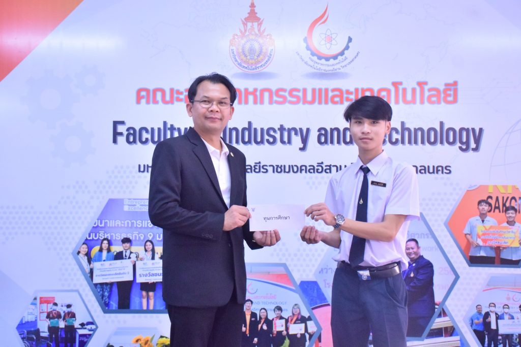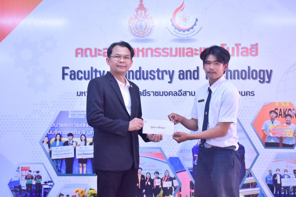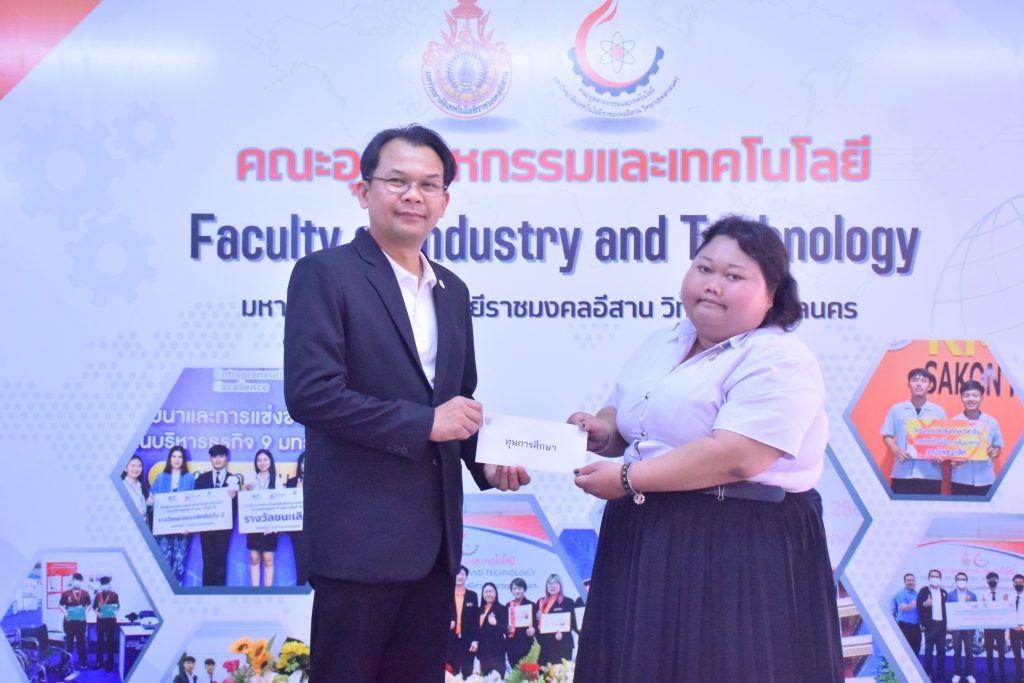 วันที่ 7 กุมภาพันธ์ 2567 คณะอุตสาหกรรมและเทคโนโลยี มทร.อีสาน วิทยาเขตสกลนคร จัดพิธีมอบทุนการศึกษาจากคณาจารย์คณะอุตสาหกรรมและเทคโนโลยี พิธีมอบช่อดอกไม้เแสดงความยินดีกับอาจารย์ที่ได้ดำรงตำแหน่งผู้ช่วยศาสตราจารย์ อาจารย์ที่ได้รับโล่เนื่องในวันคล้ายวันสถาปนามหาวิทยาลัยเทคโนโลยีราชมงคลอีสาน และพิธีมอบดอกไม้แสดงความยินดีกับผู้นำนักศึกษา ประจำปีการศึกษา 2567 ณ คณบดีคณะอุตสาหกรรมและเทคโนโลยี โดยมีวัตถุประสงค์ เพื่อแสดงความยินดี สร้างขวัญกำลังใจ และเป็นการสร้างแรงบันดาลใจให้คณาจารย์และนักศึกษา ในการพัฒนาตนเองต่อไป ในการนี้ ได้รับเกียรติจาก ผศ.ดร.สุริยา แก้วอาษา คณบดีคณะอุตสาหกรรมและเทคโนโลยี ได้ให้เกียรติเป็นประธานมอบทุนการศึกษา และมอบดอกไม้แสดงความยินดีกับอาจารย์และนักศึกษา