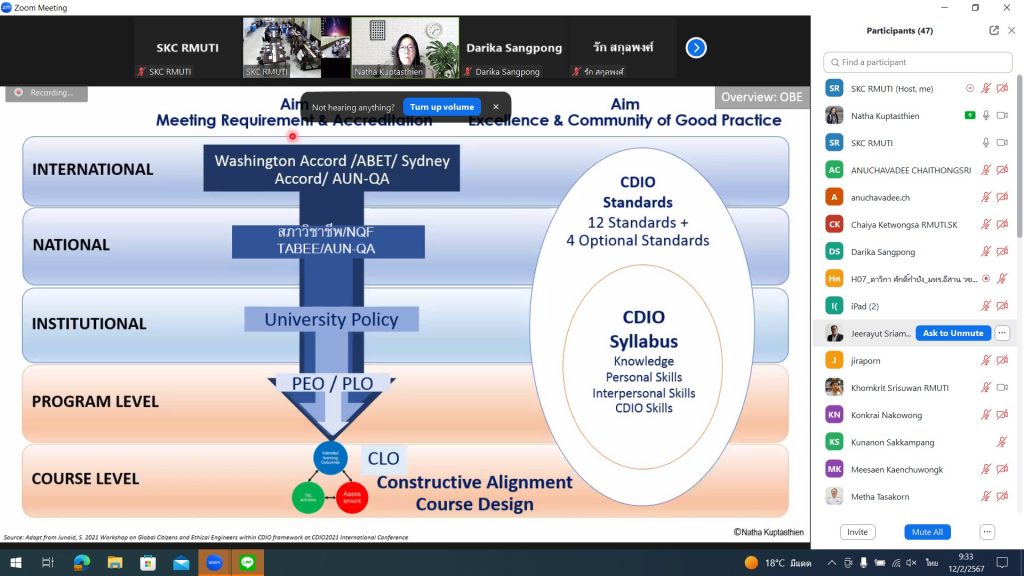 วันที่ 12 กุมภาพันธ์ 2567 คณะอุตสาหกรรมและเทคโนโลยี จัดอบรมเชิงปฏิบัติการปรับปรุงหลักสูตร ตามแนวทางการจัดการศึกษาที่มุ่งเน้นผลลัพธ์ (Outcome-Based Education : OBE) ในรูปแบบผสมผสาน (Hybrid Meeting) ณ ห้องเรียนออนไลน์อัจฉริยะ อาคารสำนักงานคณบดีคณะอุตสาหกรรมและเทคโนโลยี เพื่อให้อาจารย์ผู้รับผิดชอบหลักสูตรเข้าใจหลักการปรับปรุงหลักสูตร พ.ศ. 2568 ตามแนวทางการจัดการศึกษาที่มุ่งเน้นผลลัพธ์ (OBE) การจัดทำผลลัพธ์การเรียนรู้ระดับหลักสูตร (PLOs) ผลลัพธ์การเรียนรู้ระดับชั้นปี (YLOs) และผลลัพธ์การเรียนรู้ระดับรายวิชา (CLOs) ให้สอดคล้องกับมาตรฐานคุณวุฒิระดับอุดมศึกษา โดยได้รับเกียรติจาก รศ. ดร.ณฐา คุปตัษเฐียร สังกัดคณะวิศวกรรมศาสตร์ มหาวิทยาลัยเทคโนโลยีราชมงคลธัญบุรี เป็นวิทยากรในการอบรมครั้งนี้