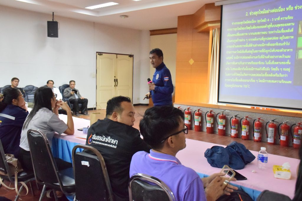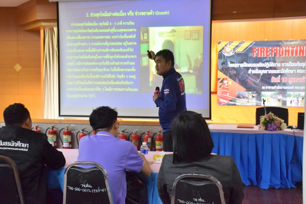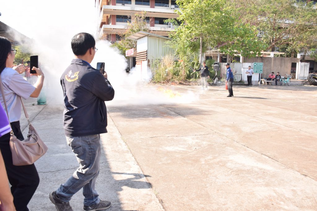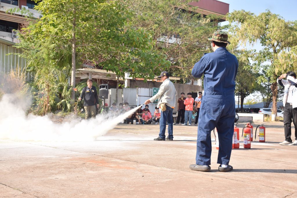วันที่ 16 กุมภาพันธ์ 2567 คณะอุตสาหกรรมและเทคโนโลยี มทร.อีสาน วิทยาเขตสกลนคร จัดโครงการฝึกอบรมเชิงปฏิบัติการ การป้องกันอุบัติภัย การระงับอัคคีภัยและอพยพหนีไฟ สำหรับบุคลากรและนักศึกษา คณะอุตสาหกรรมและเทคโนโลยี ณ อาคารสำนักงานคณบดีคณะอุตสาหกรรมและเทคโนโลยี โดยมีวัตถุประสงค์เพื่อให้บุคลากรและนักศึกษาคณะอุตสาหกรรมและเทคโนโลยี มีความรู้ความเข้าใจ เกี่ยวกับอุบัติภัย ขั้นตอนการป้องกัน การปฎิบัติตนขณะเกิดเหตุการณ์ต่างๆ การเตรียมความพร้อมในการป้องกันและลดความเสี่ยงต่ออุบัติภัย สร้างความตระหนักถึงอันตรายที่เกิดจากอัคคีภัย สามารถปฏิบัติตามแผนระงับอัคคีภัย และการอพยพหนีไฟได้อย่างถูกต้อง และมีประสิทธิภาพ โดยได้รับเกียรติจาก คุณกฤษฎา ดาบพลอ่อน และคุณกิติพงศ์ วงษ์รักษ์ เจ้าพนักงานป้องกันและบรรเทาสาธารณภัย เป็นวิทยากร ในการนี้ ผศ.ดร.สุริยา แก้วอาษา คณบดีคณะอุตสาหกรรมและเทคโนโลยี ให้เกียรติเป็นประธานในพิธีเปิดโครงการ โดยมีผู้เข้าร่วมโครงการ จำนวน 130 คน