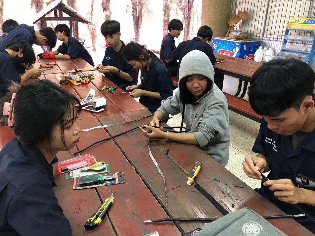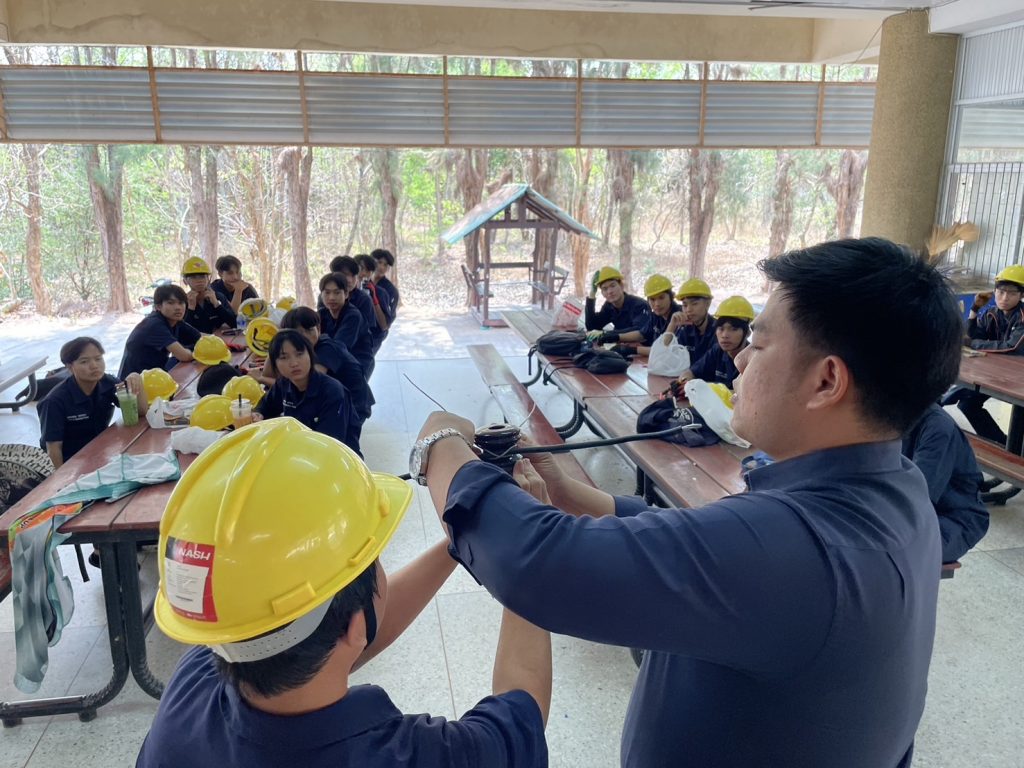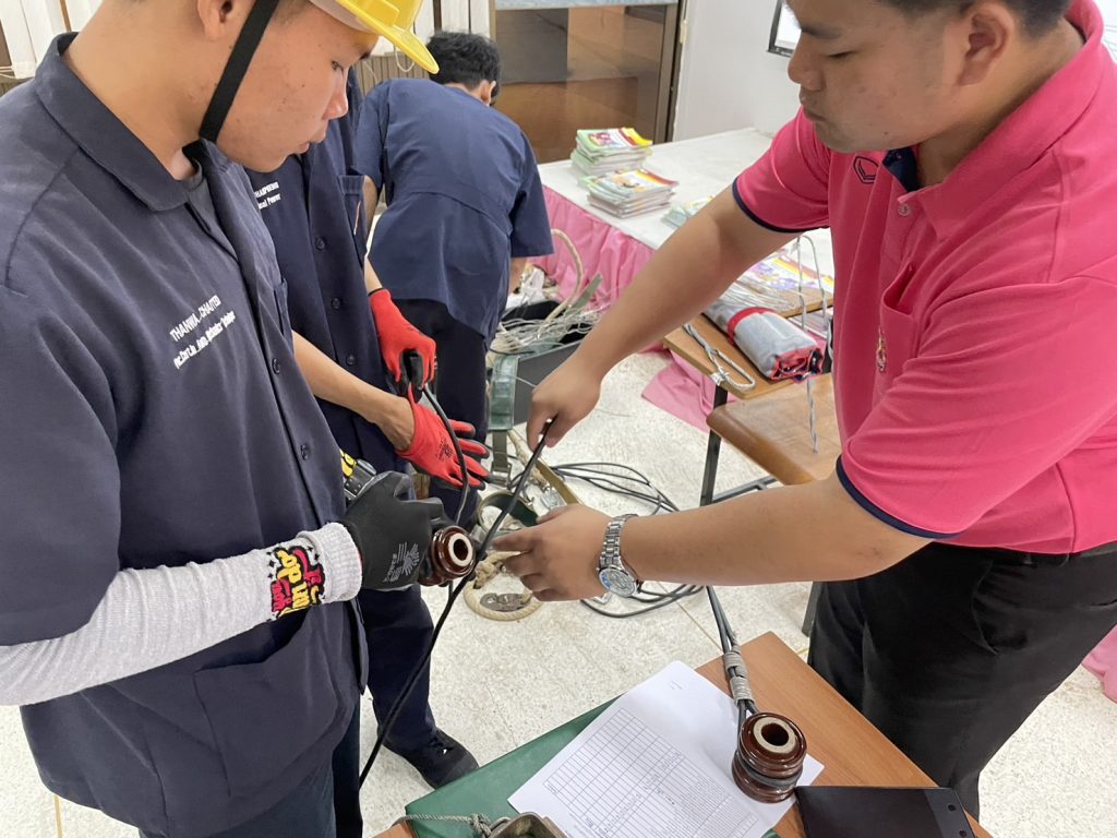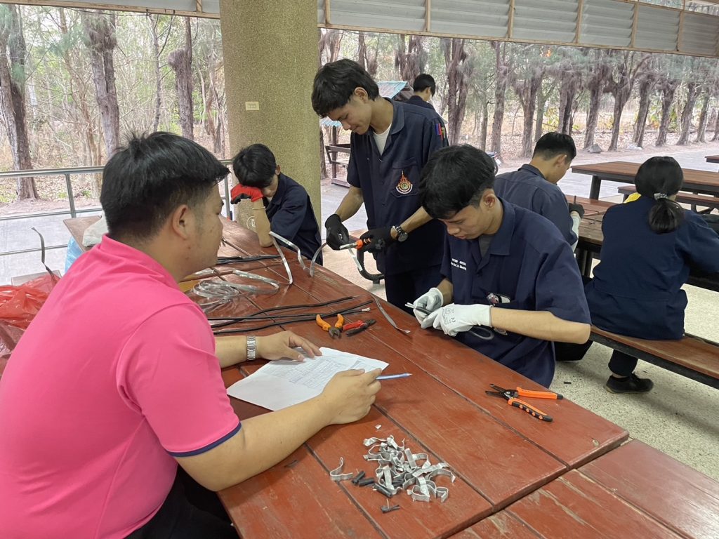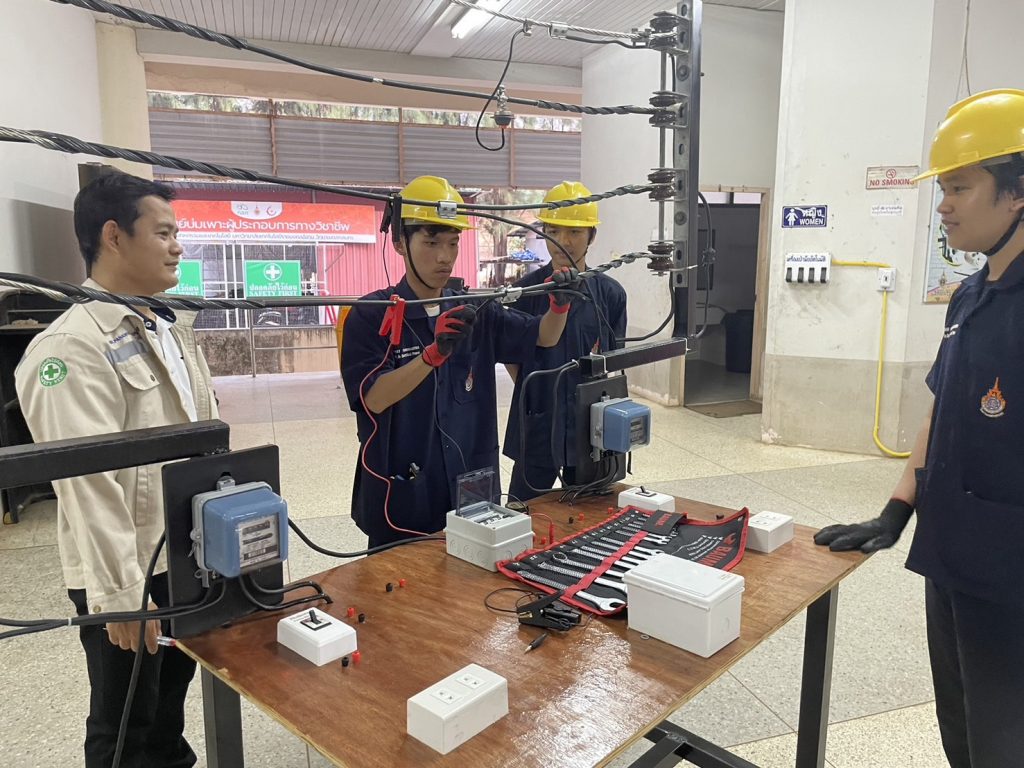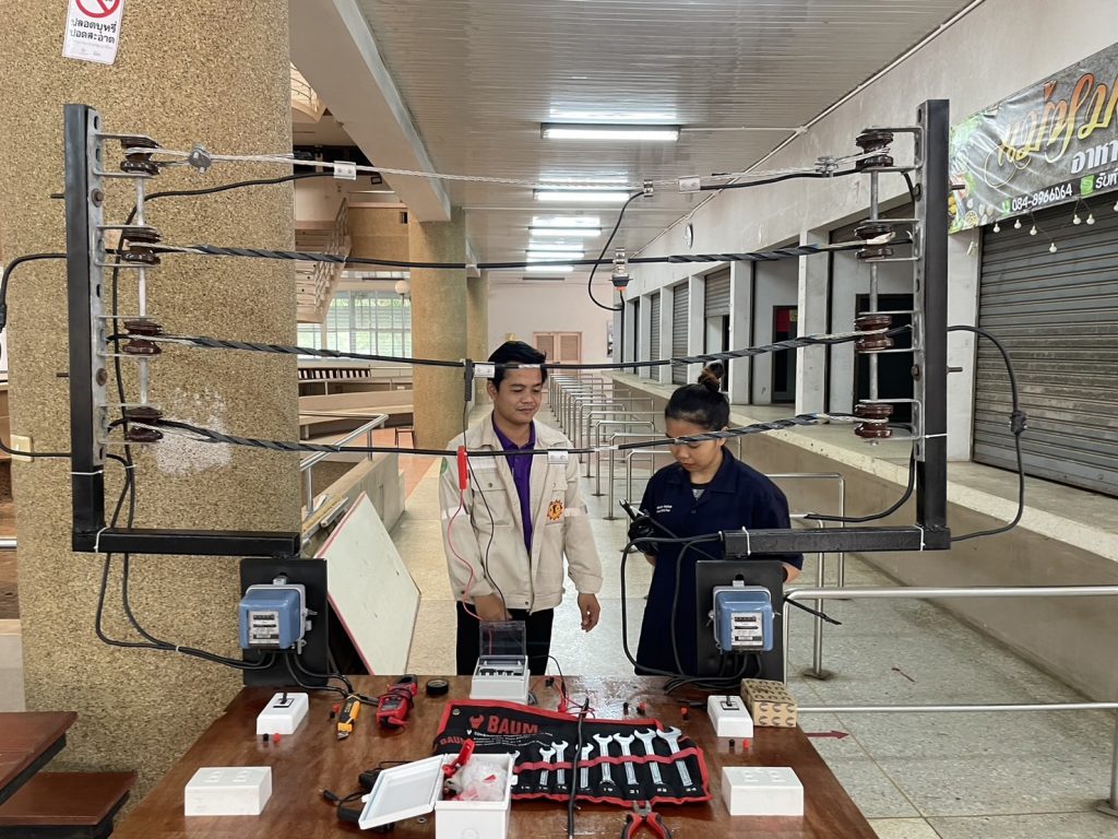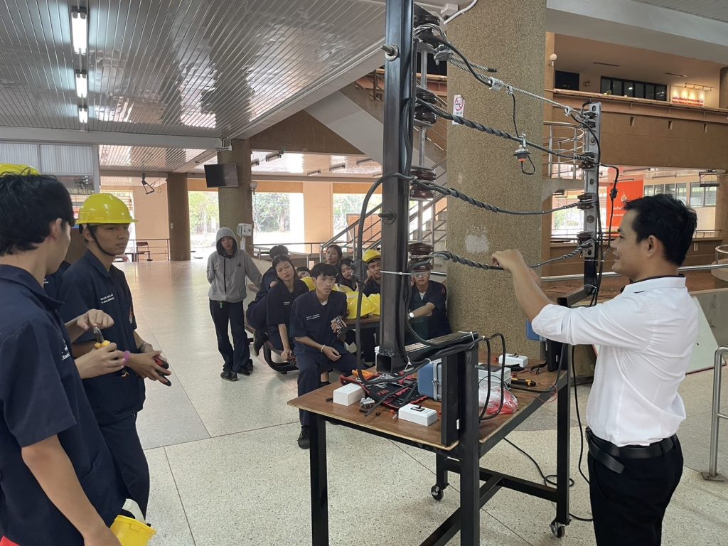 วันที่ 24 – 25 กุมภาพันธ์ 2567 คณะอุตสาหกรรมและเทคโนโลยี มทร.อีสาน วิทยาเขตสกลนคร จัดโครงการส่งเสริมทักษะไฟฟ้า (ภาคปฏิบัติ) เพื่อความเข้มแข็งทางวิชาชีพ ให้กับนักศึกษาทุนนวัตกรรมสายอาชีพชั้นสูง รุ่นที่ 4 สาขาวิชาช่างไฟฟ้ากำลัง ณ โรงเรียนสาธิตเตรียมวิศวกรรมและเทคโนโลยี มทร.อีสาน วิทยาเขตสกลนคร เพื่อให้นักศึกษามีความรู้ ความเข้าใจพื้นฐานวิชาชีพช่างไฟฟ้า ในการติดตั้งไฟฟ้านอกอาคาร และสามารถนำความรู้ไปต่อยอดในการประกอบอาชีพในอนาคตได้ โดยได้รับเกียรติจาก อาจารย์ธเนษฐ แสนรัตน์ และ อาจารย์วีระพล วงศ์กอ อาจารย์ประจำแผนกวิชาช่างไฟฟ้ากำลัง จากวิทยาลัยเทคนิคบึงกาฬ เป็นวิทยากร ในการนี้ ผศ.ดร.สัณหวัจน์ ทองแดง รองคณบดีฝ่ายวิชาการ และวิจัย ให้เกียรติเป็นประธานในพิธีเปิดโครงการ