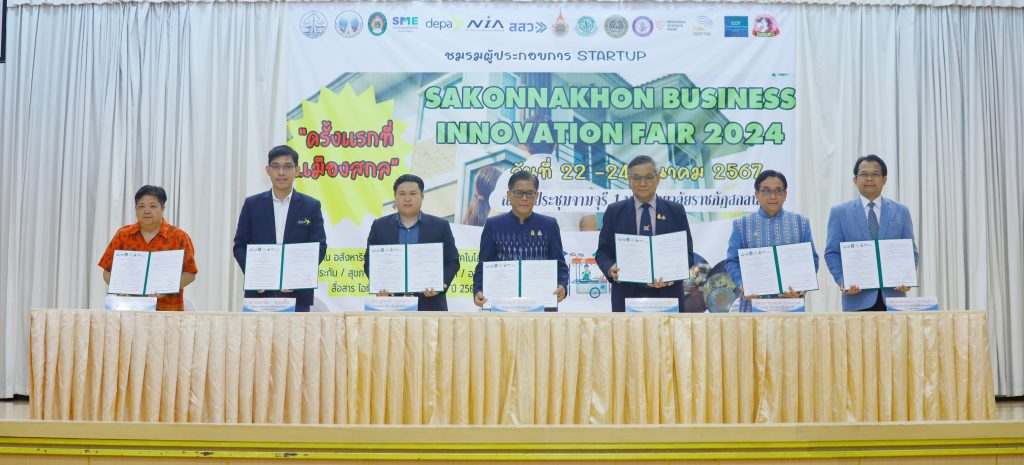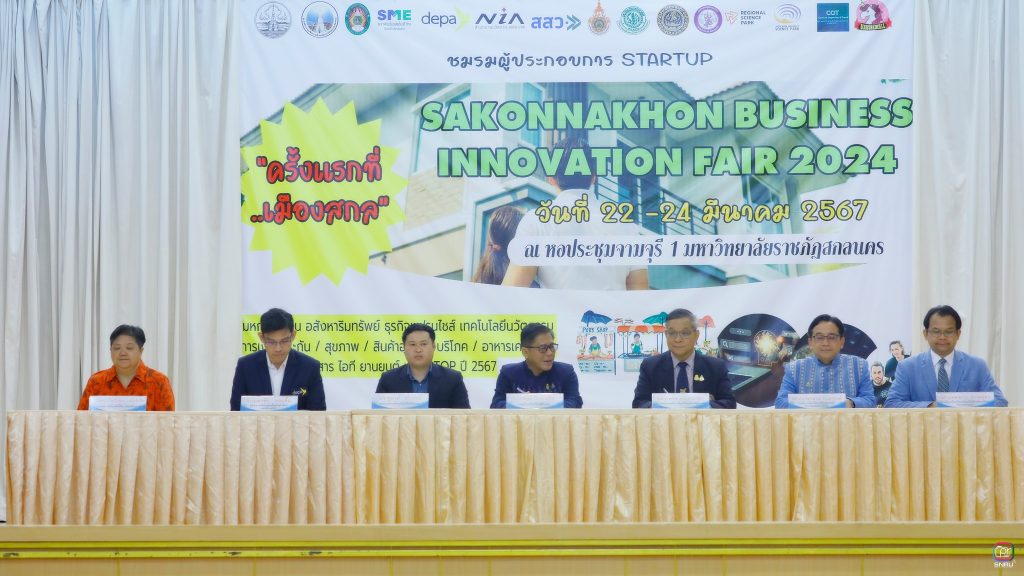 วันที่ 22 มีนาคม 2567 ผศ. น.สพ. ดร.ชเวง สารคล่อง รองอธิการบดีประจำวิทยาเขตสกลนคร มอบหมายให้ ผศ.ดร.สุริยา แก้วอาษา คณบดีคณะอุตสาหกรรมและเทคโนโลยี เข้าร่วมพิธีเปิดงาน มหกรรมบ้าน อสังหาริมทรัพย์ ธุรกิจแฟรนไชส์ สินเชื่อ-การเงิน สุขภาพ กลุ่มประกัน และงานนวัตกรรม SAKONNAKHON BUSINESS & INNOVATION FAIR 2024 ซึ่งจัดขึ้นในวันที่22.–.24 มีนาคม 2567 ณ หอประชุมจามจุรี 1 มหาวิทยาลัยราชภัฏสกลนคร โดย นายชยุต วงศ์วณิช รองผู้ว่าราชการจังหวัดสกลนคร เป็นประธานกล่าวเปิดงาน จากนั้นเป็นการลงนามบันทึกความเข้าใจว่าด้วยการร่วมพัฒนาส่งเสริมการพัฒนาเมืองอัจฉริยะ (Smart City) ของจังหวัดสกลนคร ร่วมกัน 7 หน่วยงาน ได้แก่ จังหวัดสกลนคร องค์การบริหารส่วนจังหวัดสกลนคร ม.ราชภัฏสกลนคร ม.เกษตรศาสตร์ฯ ม.เทคโนโลยีราชมงคลอีสาน วิทยาเขตสกลนคร สมาพันธ์ SME ไทย จ.สกลนคร และสำนักงานส่งเสริมเศรษฐกิจดิจิทัล จังหวัดอุบลราชธานี DEPA ซึ่งบรรยากาศภายในงาน ประกอบด้วย การเสวนาอบรม การแข่งขันแผนธุรกิจโดยใช้นวัตกรรมประยุกต์ โดยคณะอุตสาหกรรมและเทคโนโลยีได้ร่วมจัดบูธแสดงผลงานนวัตกรรมสร้างชุมชนเมืองอัจฉริยะ Smart City และมีผู้ประกอบการร่วมออกบูธกว่า 30 หน่วยงาน