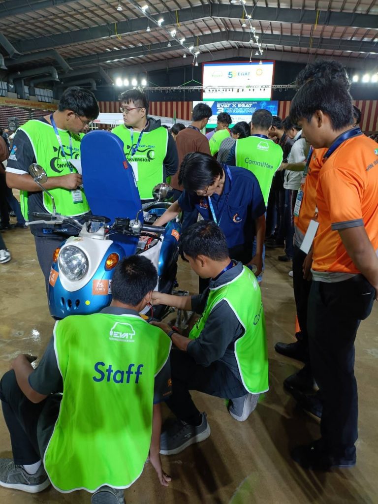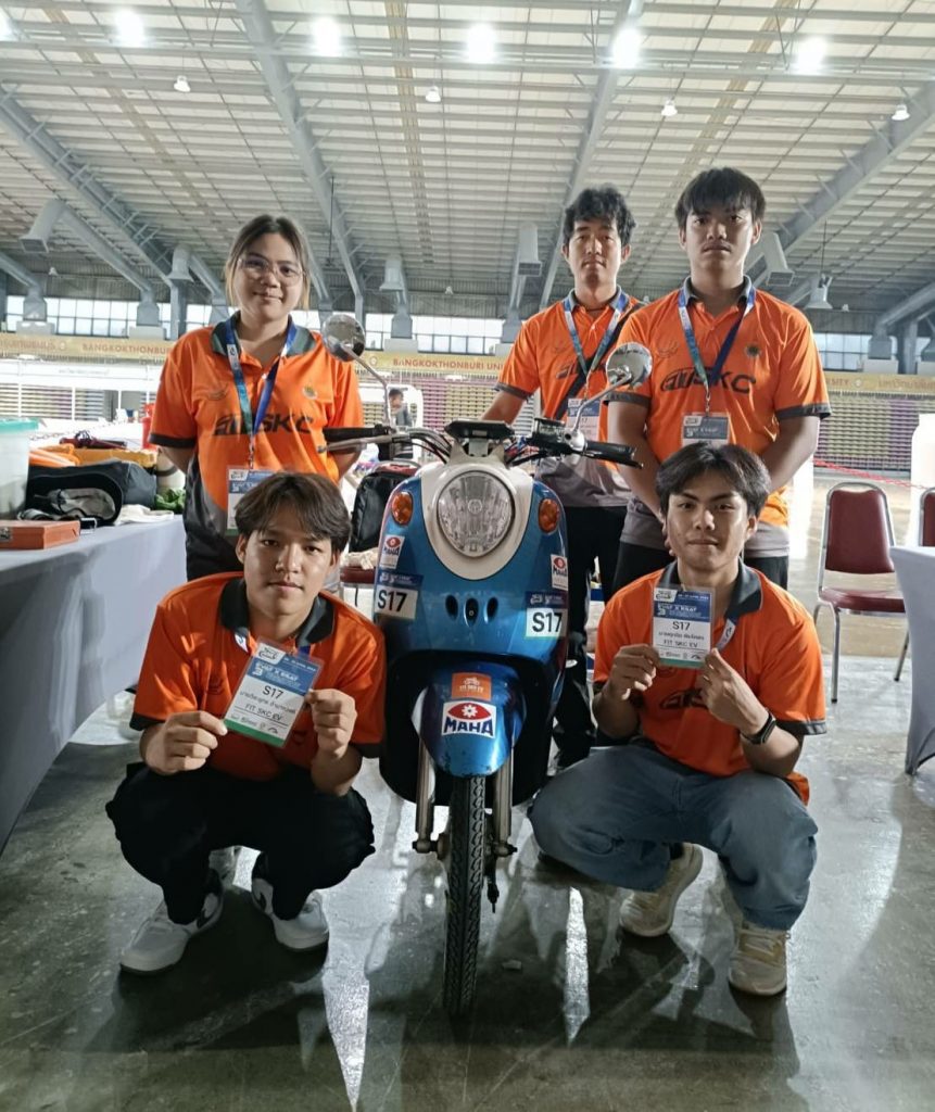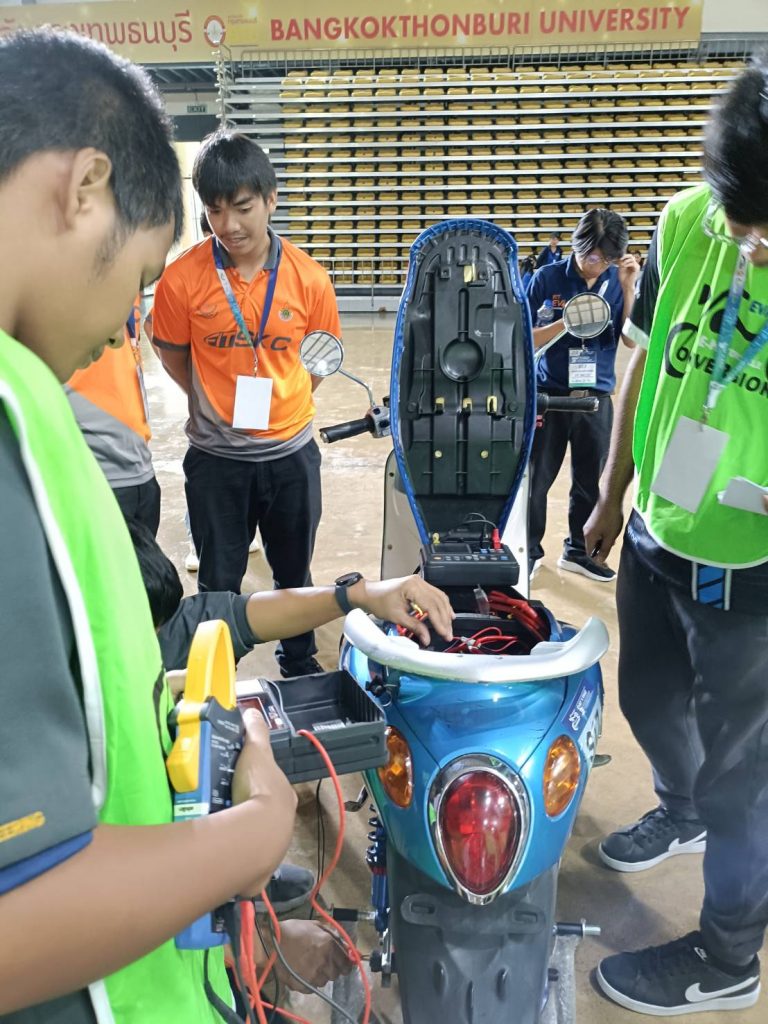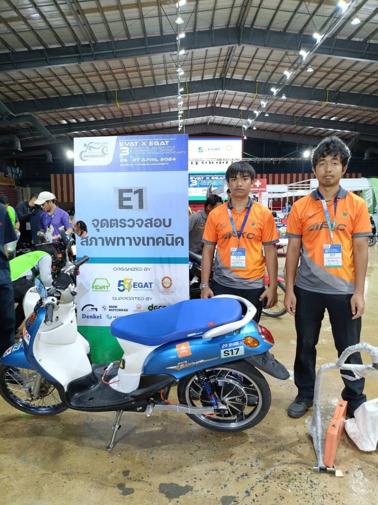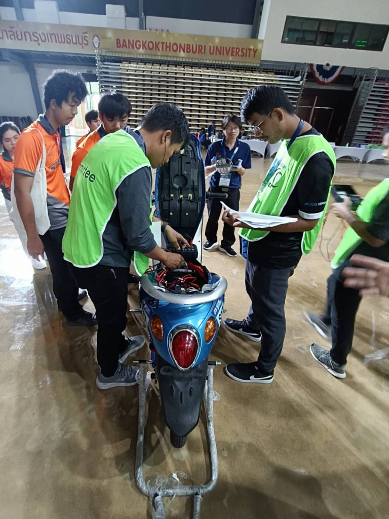 วันที่ 26 – 27 เมษายน 2567 นักศึกษาทีม FIT SKC EV คณะอุตสาหกรรมและเทคโนโลยี มทร.อีสาน วิทยาเขตสกลนคร เข้าร่วม”การแข่งขันรถจักรยานยนต์ไฟฟ้าดัดแปลงเพื่อธุรกิจแห่งอนาคต ครั้งที่ 3″ ประจำปี 2567 ณ มหาวิทยาวิทยาลัยกรุงเทพธนบุรี กรุงเทพฯ โดยมีวัตถุประสงค์เพื่อเป็นเวทีให้นักศึกษา ได้แสดงความสามารถ เสนอแนวคิดและนวัตกรรมในการพัฒนารถจักรยานยนต์ไฟฟ้าดัดแปลงให้เหมาะสมแก่การใช้งานในประเทศไทย สนับสนุนการดัดแปลงรถจักรยานยนต์ที่ใช้เชื้อเพลิงฟอสซิลให้เป็นรถจักรยานยนต์ไฟฟ้า ซึ่งรถจักรยานยนต์ไฟฟ้าที่พัฒนาขึ้น ได้ผ่านการทดสอบสภาพทางเทคนิค ทดสอบความเป็นฉนวน UNR 136 ทดสอบน้ำ และทดสอบวิ่งได้ที่ระยะทาง 80 km/ชาร์จ โดยมีนักศึกษาและคณาจารย์ผู้ควบคุมทีมเข้าร่วมการแข่งขันจำนวน 11 คน