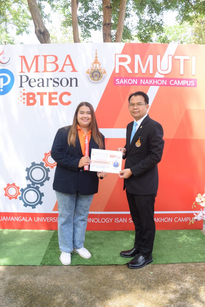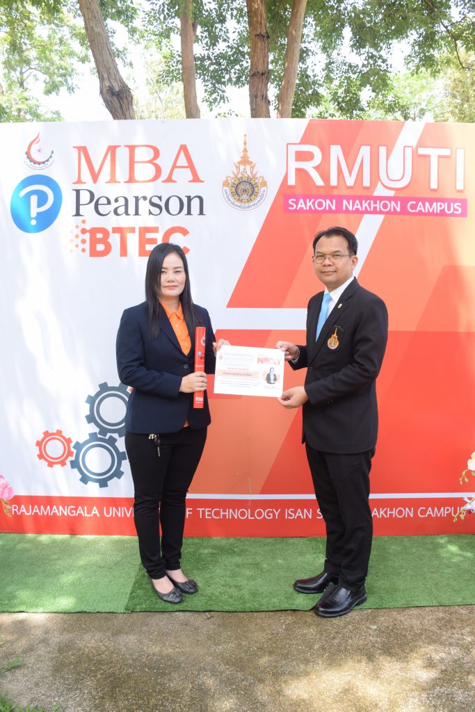 วันที่ 15 มิถุนายน 2567 คณะอุตสาหกรรมและเทคโนโลยี มทร.อีสาน วิทยาเขตสกลนคร จัดพิธีมอบใบประกาศ Pearson BTEC Level 4 Certificate in Management and Leadership จากประเทศอังกฤษเพื่อเป็นการสร้างขวัญกำลังใจ และแสดงความยินดีกับนักศึกษา หลักสูตรบริหารธุรกิจมหาบัณฑิต สาขาวิชาบริหารธุรกิจ (MBA) รุ่นที่ 4 ปีการศึกษา 2566 ที่ผ่านการรับรองการตรวจประเมินคุณภาพการศึกษาภายนอกตามมาตรฐานสากลในหลักสูตร Pearson BTEC Level 4 Certificate in Management and Leadership จากสถาบัน Pearson Education ประเทศอังกฤษ ในการนี้ ผศ.ดร.สุริยา แก้วอาษา คณบดีคณะอุตสาหกรรมและเทคโนโลยี ให้เกียรติเป็นประธานมอบใบประกาศในครั้งนี้