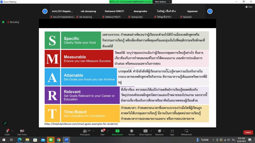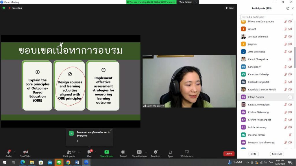 วันที่ 26 มิถุนายน 2567 คณะอุตสาหกรรมและเทคโนโลยี มทร.อีสาน วิทยาเขตสกลนคร จัดโครงการอบรมสัมมนาเชิงปฏิบัติการ ด้านการวัดประเมินผลการเรียนรู้ตามแนวทาง OBE ในรูปแบบผสมผสาน (Hybrid Meeting) ผ่านระบบสื่ออิเล็กทรอนิกส์ (Zoom Meeting) ณ ห้องประชุมสำนักงานคณบดี ชั้น 2 อาคารสำนักงานคณบดีคณะอุตสาหกรรมและเทคโนโลยี โดยมีวัตถุประสงค์เพื่อให้สอดคล้องกับหลักสูตรปริญญาที่เป็นไปตามเกณฑ์มาตรฐานหลักสูตรระดับอุดมศึกษา พ.ศ.2565 หลักสูตรต่ำกว่าปริญญาที่เป็นไปตามเกณฑ์มาตรฐานคุณวุฒิอาชีวศึกษา พ.ศ.2567 และสอดรับกับเกณฑ์การประกันคุณภาพหลักสูตรที่มหาวิทยาลัยกำหนด สามารถนำความรู้มาปรับใช้เป็นแนวทางในการจัดทำรายละเอียดของรายวิช และการปรับปรุงแก้ไขรายละเอียดของรายวิชาโดยได้รับเกียรติจาก ผศ. ดร.มนตา ตุลย์เมธาการ ภาควิชาการวัดผลและวิจัยการศึกษา คณะศึกษาศาสตร์ มหาวิทยาลัยศรีนครินทรวิโรฒ เป็นวิทยากร ในการนี้ ผศ. ดร.สุริยา แก้วอาษา คณบดีคณะอุตสาหกรรมและเทคโนโลยี ให้เกียรติเป็นประธานในพิธีเปิดโครงการ
