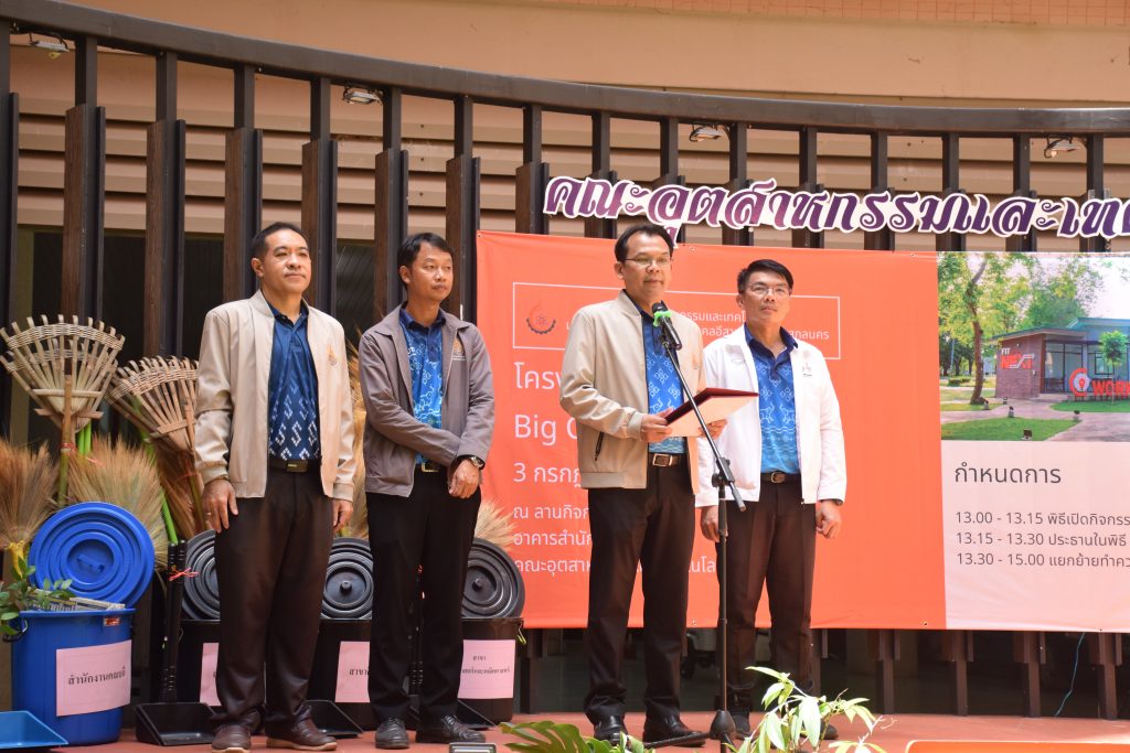 วันที่ 7 กรกฎาคม 2566 คณะอุตสาหกรรมและเทคโนโลยี มทร.อีสาน วิทยาเขตสกลนคร จัดกิจกรรม Big Cleaning Day คณะอุตสาหกรรมและเทคโนโลยี ณ บริเวณภายในอาคาร ห้องเรียน ห้องปฏิบัติการและบริเวณโดยรอบอาคารเรียน คณะอุตสาหกรรมและเทคโนโลยี เพื่อรักษาความสะอาด อาคารเรียน ห้องเรียน ห้องปฏิบัติการ ปรับปรุงภูมิทัศน์ให้สวยงามและเป็นระเบียบ สร้างความสามัคคีให้กับบุคลากรนักศึกษานอกจากนี้ยังช่วยเสริมสร้างวินัยรักความสะอาดให้นักศึกษาอีกด้วย ในการนี้ ผศ.ดร.สุริยา แก้วอาษา คณบดีคณะอุตสาหกรรมและเทคโนโลยี ให้เกียรติเป็นประธานในพิธี พร้อมทั้งมอบอุปกรณ์การทำความสะอาดให้กับตัวแทนสาขา โดยมีคณะผู้บริหาร คณาจารย์ เจ้าหน้าที่ และนักศึกษาทุกชั้นปี เข้าร่วมกิจกรรมในครั้งนี้โดยพร้อมเพรียงกัน