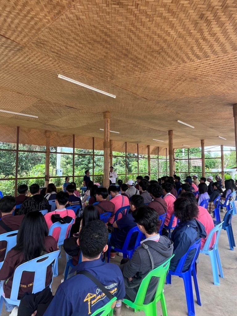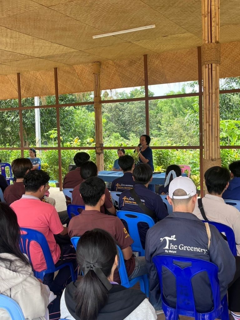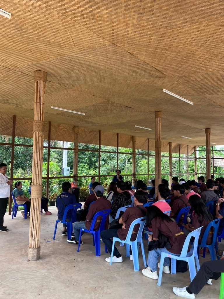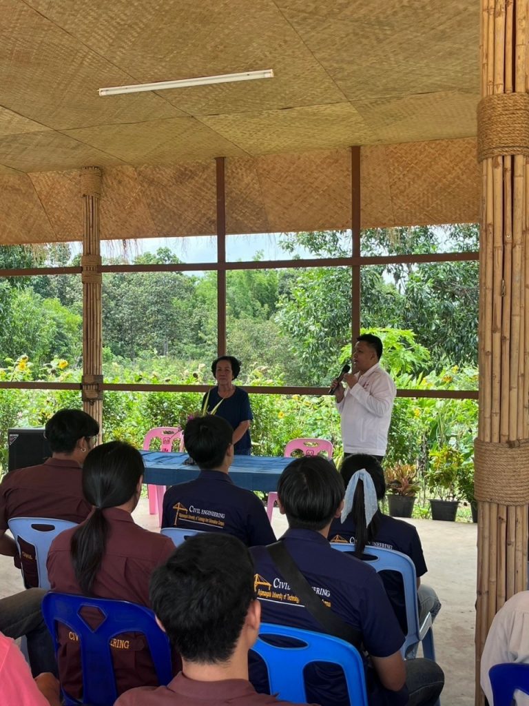 วันที่ 9 กรกฎาคม 2567 สาขาศิลปศาสตร์ คณะอุตสาหกรรมและเทคโนโลยี นำโดย ผศ. ดร.ทรงยุทธ ต้นวัน อาจารย์ประจำสาขาศิลปศาสตร์ จัดกิจกรรมส่งเสริมเรียนรู้นวัตกรรมและวิถีชุมชน ณ วิชชาลัยดอนกอย อำเภอพรรณานิคม จังหวัดสกลนคร เพื่อให้นักศึกษาได้เรียนรู้และเข้าใจวิถีชีวิตชุมชน ผลิตภัณฑ์ชุมชน การมีส่วนร่วมของคนในชุมชน การสร้างสรรค์ผลงานของชุมชน การบูรณาการความรู้เพื่อสิ่งแวดล้อมของชุมชน ช่วยฝึกทักษะการปฏิบัติงานแบบมีส่วนร่วมกับชุมชนให้แก่นักศึกษา ตลอดจนเรียนรู้แนวคิดต่างๆของชุมชน โดยมีนักศึกษาสาขาวิชาวิศวกรรมโยธา และนักศึกษาสาขาวิชาการจัดการการท่องเที่ยวเข้าร่วมกิจกรรมในครั้งนี้