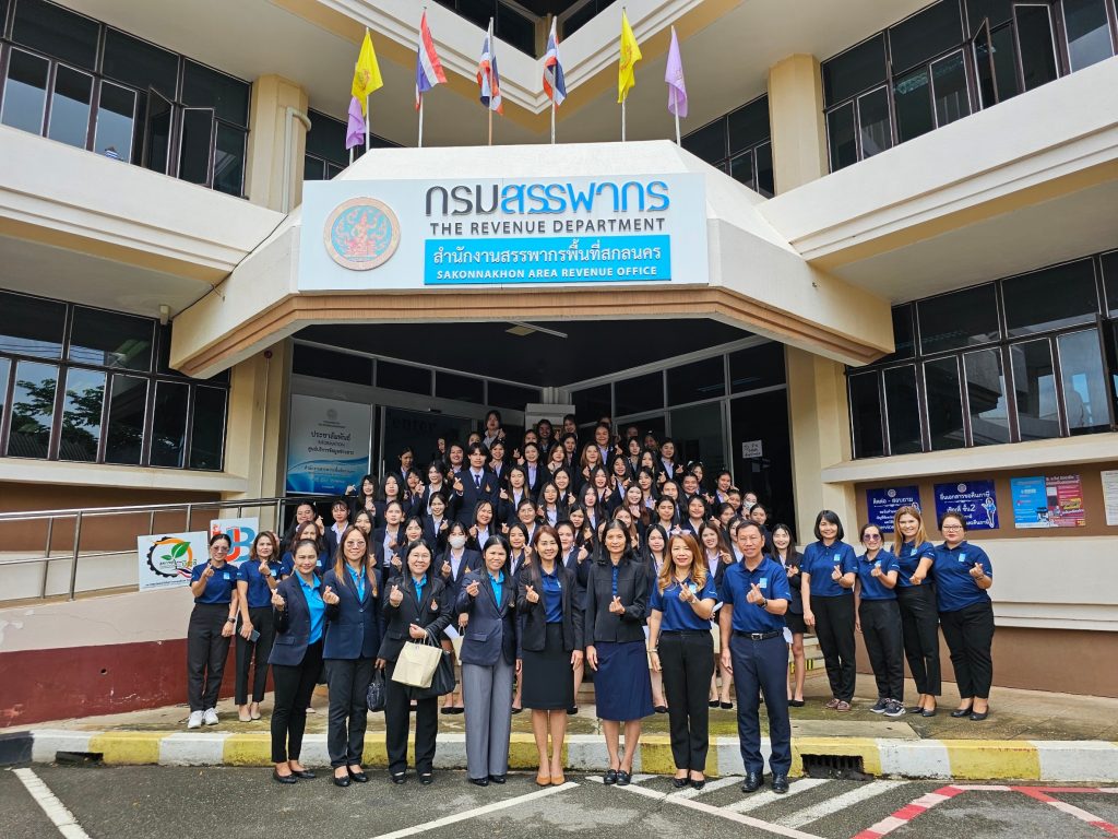 วันที่ 20 สิงหาคม 2567 คณาจารย์และนักศึกษาโปรแกรมวิชาการบัญชี สาขาบริหารธุรกิจ คณะอุตสาหกรรมและเทคโนโลยี มหาวิทยาลัยเทคโนโลยีราชมงคลอีสาน วิทยาเขตสกลนคร นำโดย ผศ. ดร.เพชรไพรริน อุปปิง พร้อมคณาจารย์และนักศึกษาจำนวน 72 คน เข้าศึกษาดูงาน ณ สรรพากรพื้นที่สกลนคร อำเภอเมือง จังหวัดสกลนคร เพื่อให้นักศึกษาสามารถนำความรู้และประสบการณ์ที่ได้รับไปประยุกต์ใช้ในการทำงานทางด้านภาษีในอนาคต โดยได้รับเกียรติจาก คุณวิลาวัลย์ เชยชม สรรพากรพื้นที่สกลนคร พร้อมผู้บริหารและบุคลากรร่วมให้การต้อนรับ โดยมีการบรรยายพิเศษ เรื่อง Update ภาษีเงินได้บุคคลธรรมดา ภาษีเงินได้นิติบุคคล ภาษีมูลค่าเพิ่ม โดย คุณทิพาพร ขวัญมา นักตรวจสอบภาษีชำนาญการ คุณพรรณี รัตนะ นักตรวจสอบภาษีชำนาญการและบรรยายพิเศษ เรื่อง TA และการเตรียมความพร้อมเข้าทำงานในหน่วยงานสรรพากร โดยคุณชัยยุทธ ราชนา นักวิชาการสรรพากรชำนาญการพิเศษ นอกจากนี้ยังได้ศึกษาดูงานภารกิจของสรรพากรพื้นที่สกลนคร 5 ส่วนงาน ได้แก่ ส่วนแนะนำและตรวจสอบภาษีอากร ส่วนวางแผนและประเมินผล ส่วนกรรมวิธีและคืนภาษี ส่วนบริหารงานทั่วไป และส่วนกฎหมายและเร่งรัดภาษีอากรค้าง