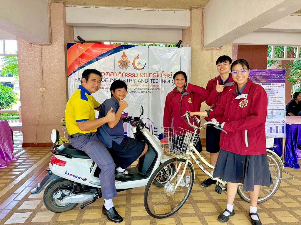 วันที่ 29 สิงหาคม 2567 คณะอุตสาหกรรมและเทคโนโลยี มหาวิทยาลัยเทคโนโลยีราชมงคลอีสาน วิทยาเขตสกลนคร เข้าร่วมจัดนิทรรศการสิ่งประดิษฐ์และนวัตกรรม ในกิจกรรมเปิดบ้านวิทยาศาสตร์เนื่องในสัปดาห์วันวิทยาศาสตร์ ประจำปี 2567 ณ โรงเรียนเตรียมอุดมศึกษา ภาคตะวันออกเฉียงเหนือ อำเภอสว่างแดนดิน จังหวัดสกลนคร เพื่อเป็นการแนะแนวการศึกษาต่อ การประชาสัมพันธ์ข้อมูลนวัตกรรมด้านการจัดการเรียนการสอน หลักสูตรที่เปิดสอนให้เป็นที่รู้จักและเป็นที่ยอมรับมากยิ่งขึ้น โดยได้นำผลงานนวัตกรรมที่ได้รับรางวัลชนะเลิศในการประกวดสิ่งประดิษฐ์คนรุ่นใหม่ (Project Day 2024) ไปจัดแสดงนิทรรศการเพื่อถ่ายทอดความรู้ให้กับคุณครูและนักเรียนที่สนใจ ซึ่งประกอบด้วยผลงาน TECHNGLOGY HELP CAT SLAVES และผลงานการพยากรณ์สภาพอากาศผ่านระบบการเรียนรู้ของเครื่องและข้อมูลจากเครื่องวัดสภาพอากาศ นอกจากยังได้นำยานยนต์ไฟฟ้าและชุดอุปกรณ์แพ็คแบตเตอรี่ ไปให้นักเรียนได้ร่วมกิจกรรมทดลองปฎิบัติอีกด้วย