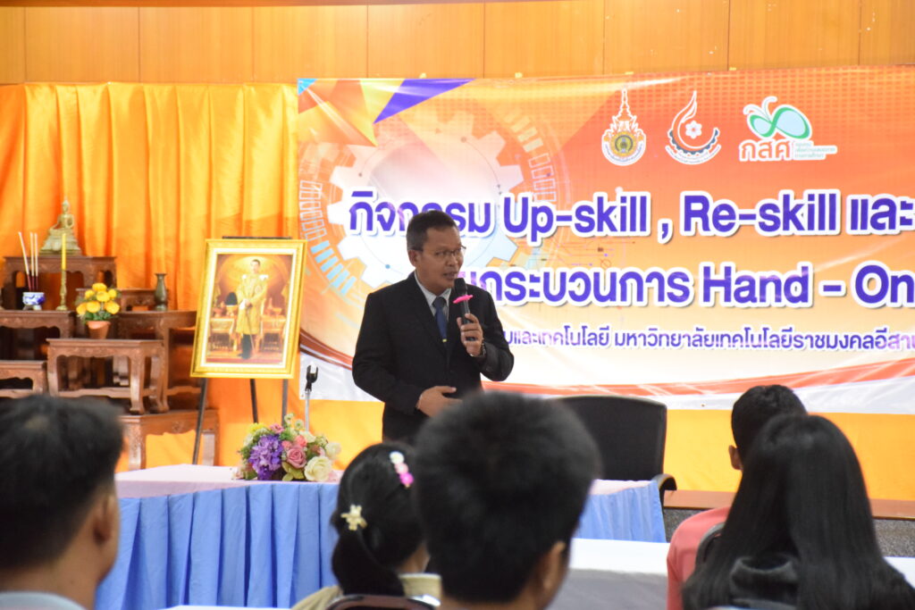 วันที่ 18-19 กันยายน 2567 คณะอุตสาหกรรมและเทคโนโลยี มหาวิทยาลัยเทคโนโลยีราชมงคลอีสาน วิทยาเขตสกลนคร จัดกิจกรรม Up-skill Re-skill และ New-skill ด้วยกระบวนการ Hands – On Model ณ ห้องประชุมค้ำคูณ 4 ชั้น 5 อาคารสำนักงานคณบดีคณะอุตสาหกรรมและเทคโนโลยี เพื่อส่งเสริมให้นักศึกษาทุนนวัตกรรมสายอาชีพชั้นสูง กองทุนเพื่อความเสมอภาคทางการศึกษา (กสศ.) ได้รับการพัฒนาศักยภาพในด้านมาตรฐานอาชีพด้วยการ Up-skill Re-skill ด้วย Hands – On Model มีความรู้และทักษะที่สูงขึ้นสามารถนำทักษะไปใช้งานได้จริง มีสมรรถนะตรงตามความต้องการของสถานประกอบการ ช่วยยกระดับทักษะฝีมือแรงงาน ให้มีคุณสมบัติตรงตามความต้องการของตลาดแรงงานในปัจจุบัน โดยได้รับเกียรติจาก คุณมิตต์ กุลอนุสถาพร คุณสันติภาพ สุขสวัสดิ์ จากบริษัท มัณฑาซิสเท็ม จำกัด คุณเจนวัฒน์ ภักดีกิจ จาก บริษัท ไวเด้น เทรดดิ้ง จำกัด และคุณธัญญา บุญรองเรือง จากบริษัท กู๊ด อินดิเกรชั่น จำกัด เป็นวิทยากร ในการนี้ ผศ. น.สพ.ดร.ชเวง สารคล่อง รองอธิการบดีประจำวิทยาเขตสกลนคร ให้เกียรติเป็นประธานในพิธีเปิดงาน