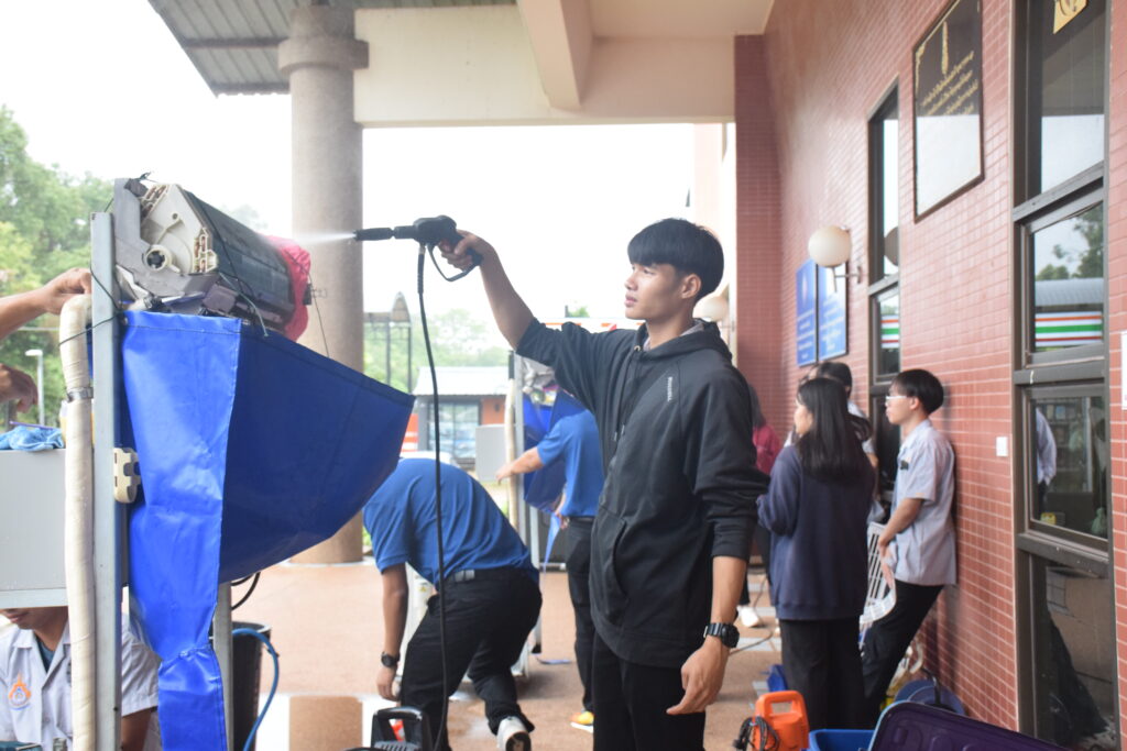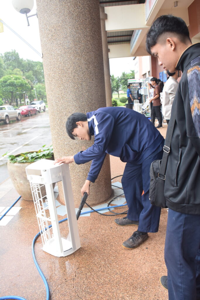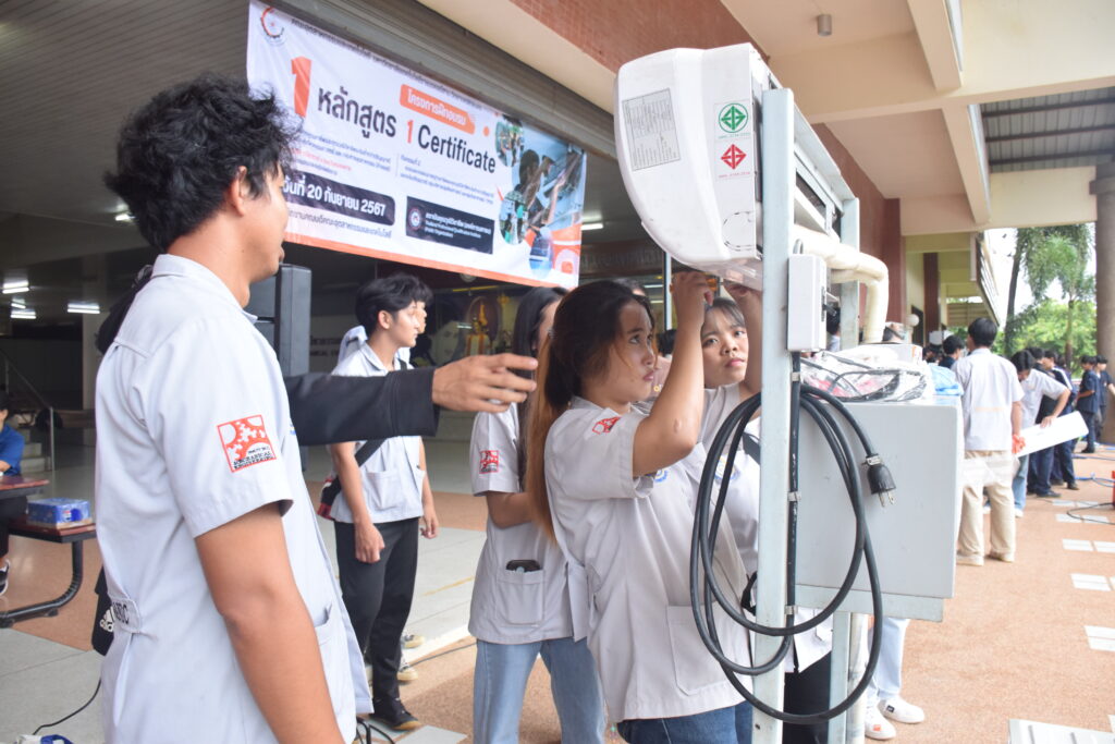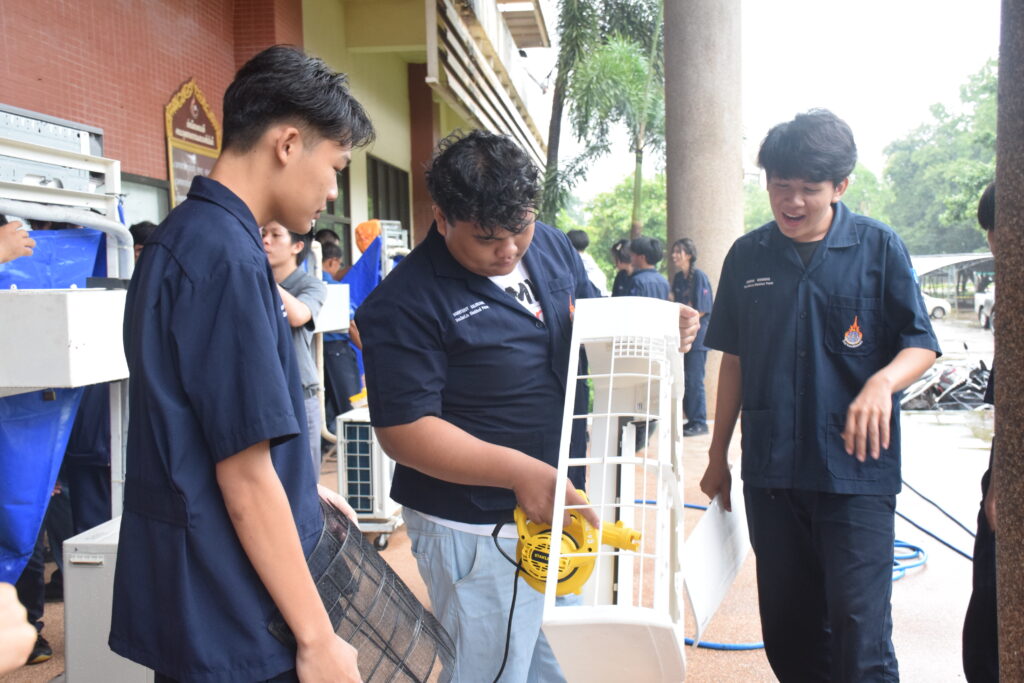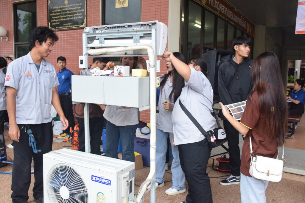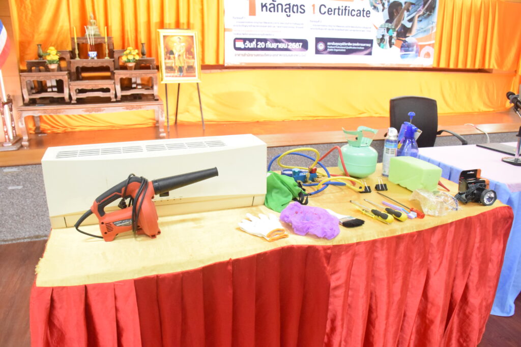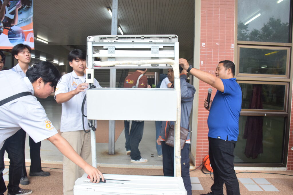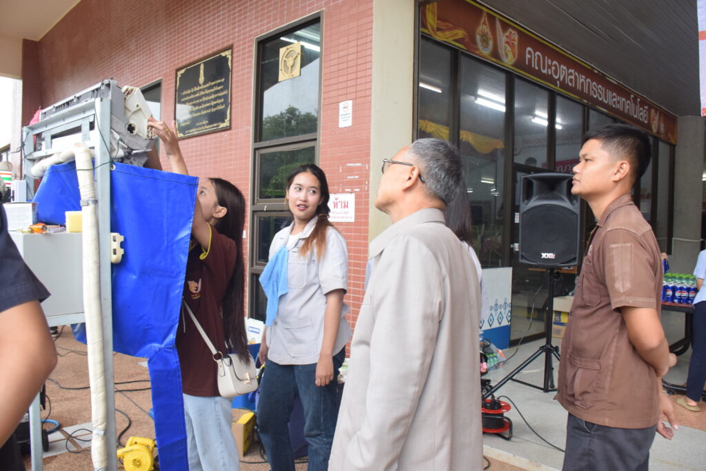 วันที่ 20 กันยายน 2567 คณะอุตสาหกรรมและเทคโนโลยี มหาวิทยาลัยเทคโนโลยีราชมงคลอีสาน วิทยาเขตสกลนคร จัดโครงการ 1 หลักสูตร 1 Certificate กิจกรรมที่ 1 อบรมและทดสอบมาตรฐานอาชีพและคุณวุฒิวิชาชีพระดับต่ำกว่าปริญญาตรี และระดับปริญญาตรี กลุ่มวิศวกรรมศาสตร์ และกลุ่มช่างอุตสาหกรรม (การล้างเครื่องปรับอากาศ) เพื่อให้นักศึกษามีความรู้และทักษะเกี่ยวกับการใช้เครื่องมือ มีความพร้อมในการเข้ารับการทดสอบมาตรฐานฝีมือแรงงานแห่งชาติ มีความรู้หลักการใช้และบำรุงรักษาเครื่องปรับอากาศในบ้านได้อย่างถูกต้องและปลอดภัย สามารถนำความรู้ไปใช้ในการปฏิบัติงานและการประกอบอาชีพในอนาคตได้ โดยมีการบรรยาย เรื่องสถานการณ์พลังงาน เกณฑ์มาตรฐานประสิทธิภาพพลังงานของบ้านอยู่อาศัยกับเทคโนโลยีประหยัดพลังงาน และกิจกรรม Workshop การล้างเครื่องปรับอากาศด้วยตนเอง โดยได้รับเกียรติจากทีมเจ้าหน้าที่จากศูนย์บริการวิชาการที่ 4 (จังหวัดหนองคาย) เป็นวิทยากร ในการนี้ ผศ. ดร.สัณหวัจน์ ทองแดง รองคณบดีฝ่ายวิชาการและวิจัย ให้เกียรติเป็นประธานในพิธีเปิดโครงการ
