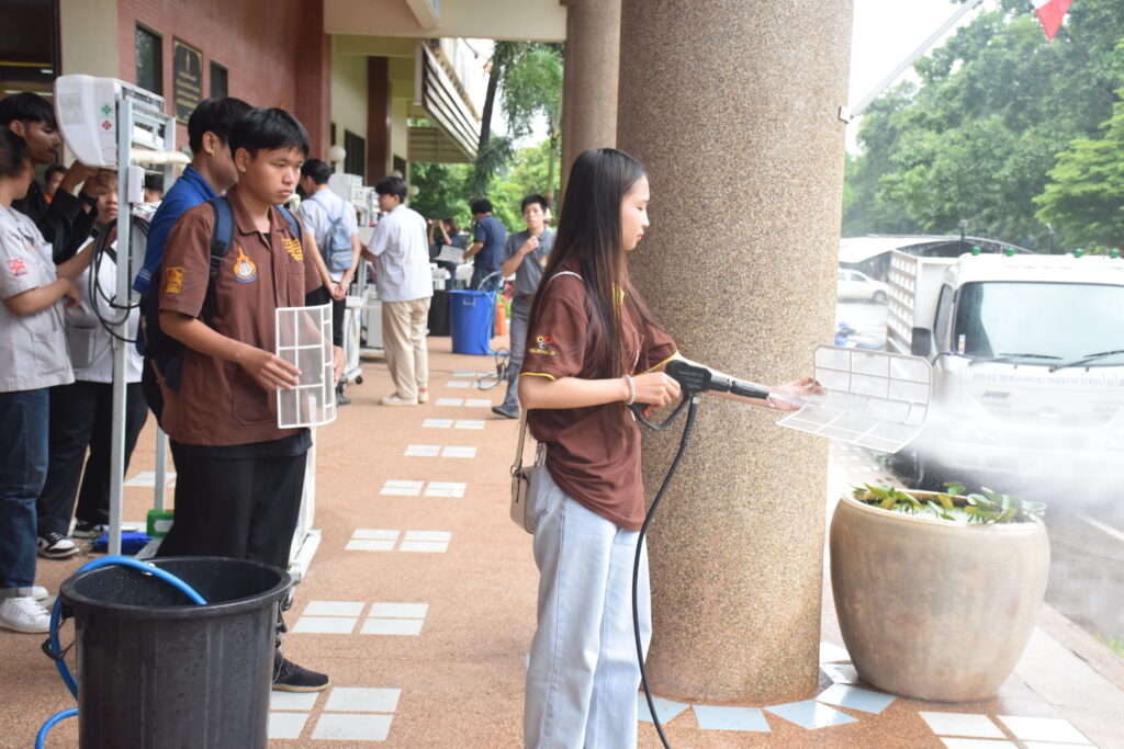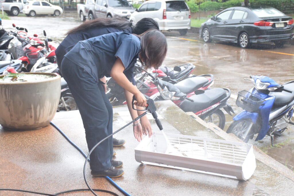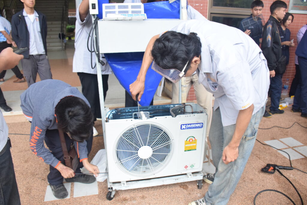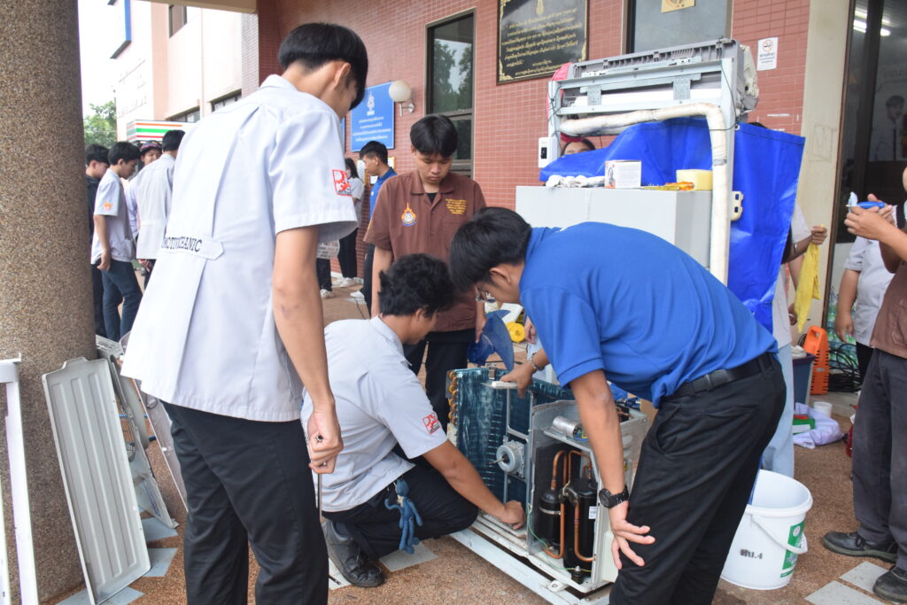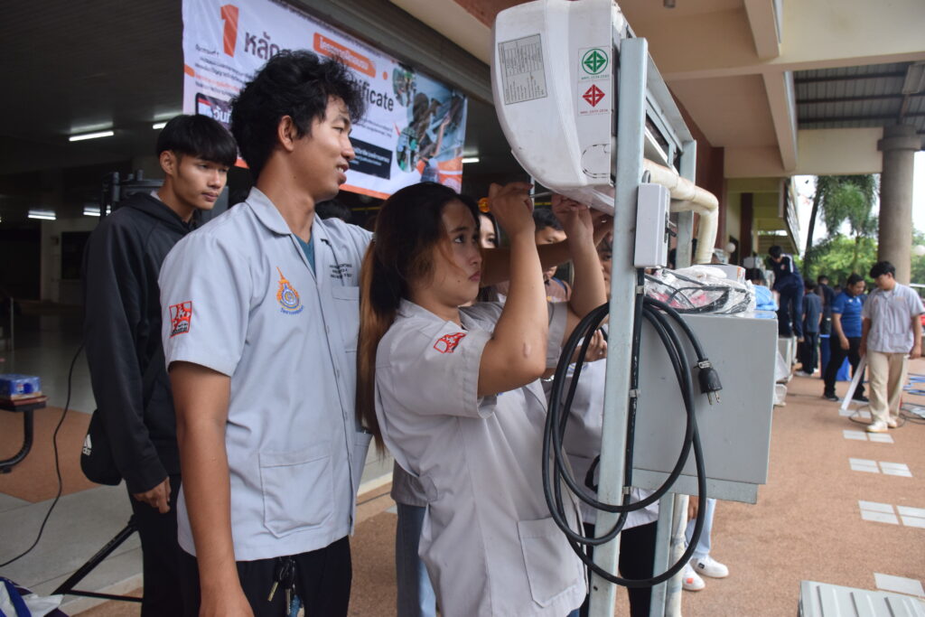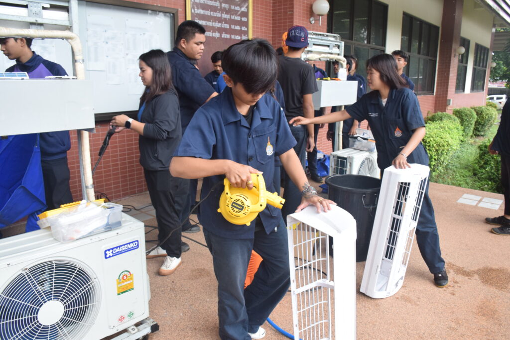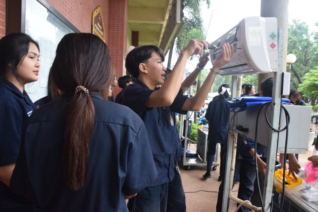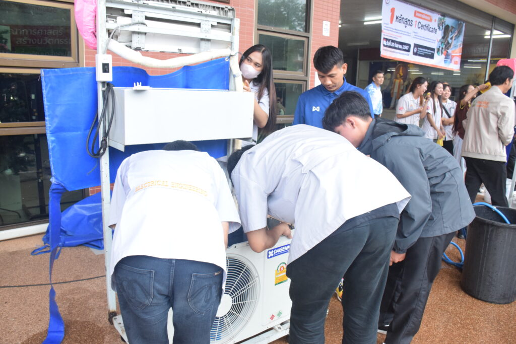 วันที่ 20 กันยายน 2567 คณะอุตสาหกรรมและเทคโนโลยี มหาวิทยาลัยเทคโนโลยีราชมงคลอีสาน วิทยาเขตสกลนคร จัดโครงการ 1 หลักสูตร 1 Certificate กิจกรรมที่ 1 อบรมและทดสอบมาตรฐานอาชีพและคุณวุฒิวิชาชีพระดับต่ำกว่าปริญญาตรี และระดับปริญญาตรี กลุ่มวิศวกรรมศาสตร์ และกลุ่มช่างอุตสาหกรรม (การล้างเครื่องปรับอากาศ) เพื่อให้นักศึกษามีความรู้และทักษะเกี่ยวกับการใช้เครื่องมือ มีความพร้อมในการเข้ารับการทดสอบมาตรฐานฝีมือแรงงานแห่งชาติ มีความรู้หลักการใช้และบำรุงรักษาเครื่องปรับอากาศในบ้านได้อย่างถูกต้องและปลอดภัย สามารถนำความรู้ไปใช้ในการปฏิบัติงานและการประกอบอาชีพในอนาคตได้ โดยมีการบรรยาย เรื่องสถานการณ์พลังงาน เกณฑ์มาตรฐานประสิทธิภาพพลังงานของบ้านอยู่อาศัยกับเทคโนโลยีประหยัดพลังงาน และกิจกรรม Workshop การล้างเครื่องปรับอากาศด้วยตนเอง โดยได้รับเกียรติจากทีมเจ้าหน้าที่จากศูนย์บริการวิชาการที่ 4 (จังหวัดหนองคาย) เป็นวิทยากร ในการนี้ ผศ. ดร.สัณหวัจน์ ทองแดง รองคณบดีฝ่ายวิชาการและวิจัย ให้เกียรติเป็นประธานในพิธีเปิดโครงการ