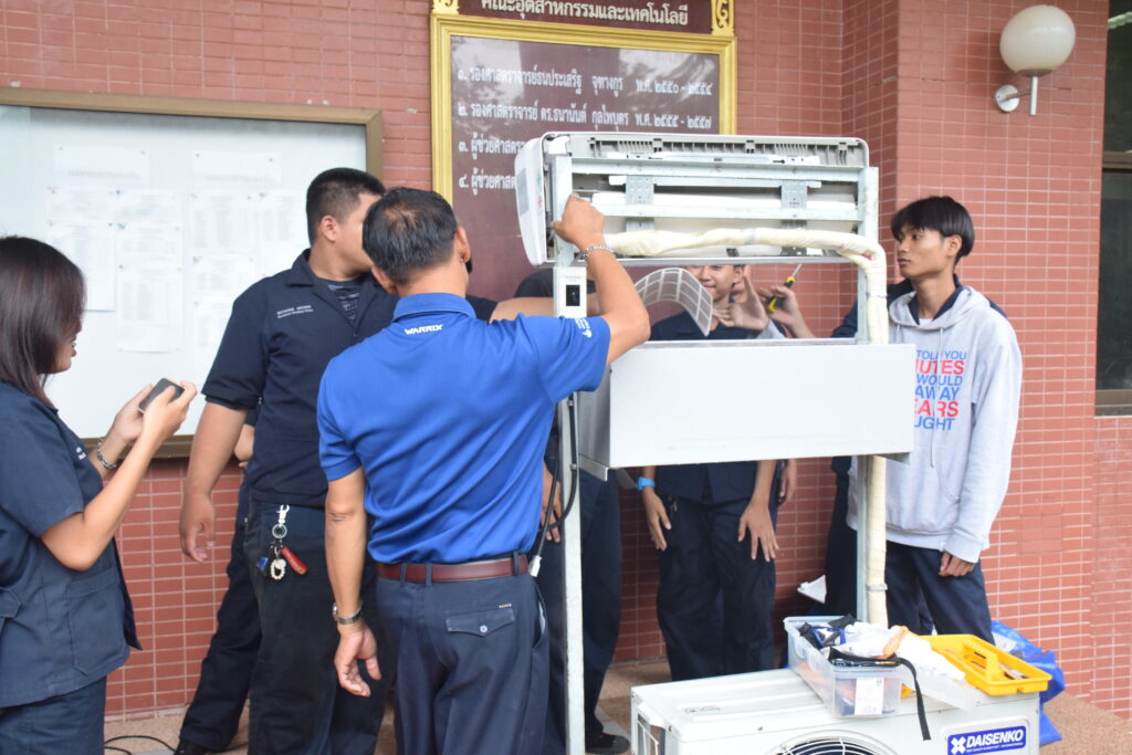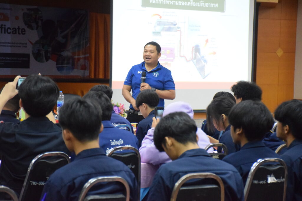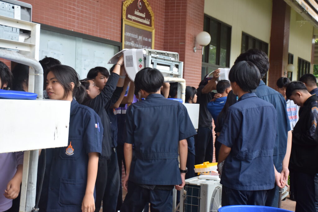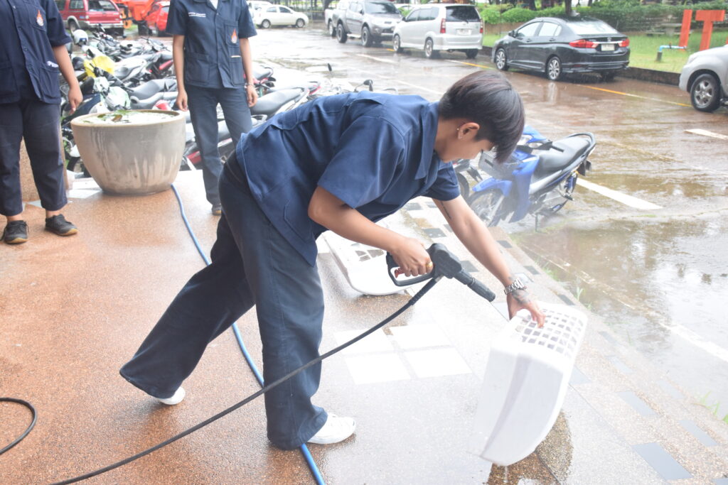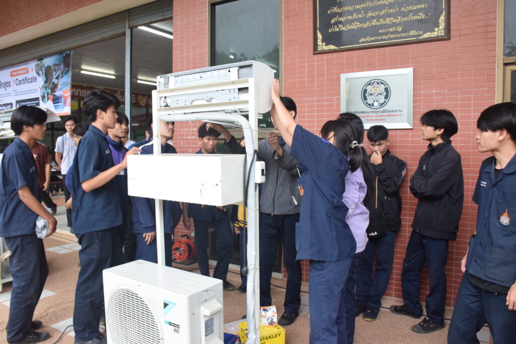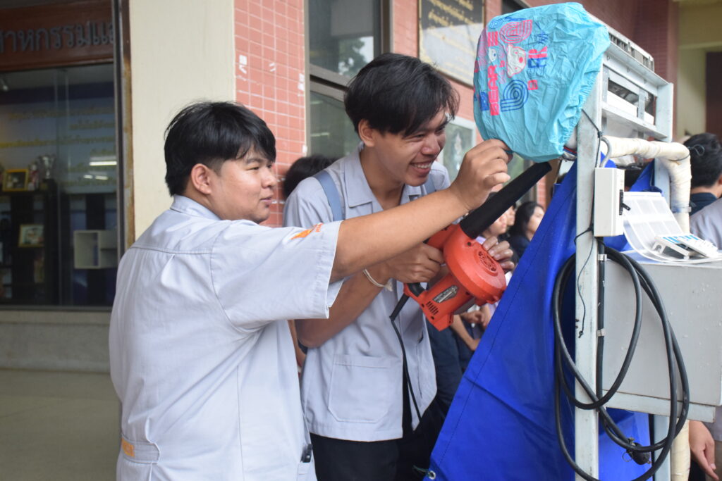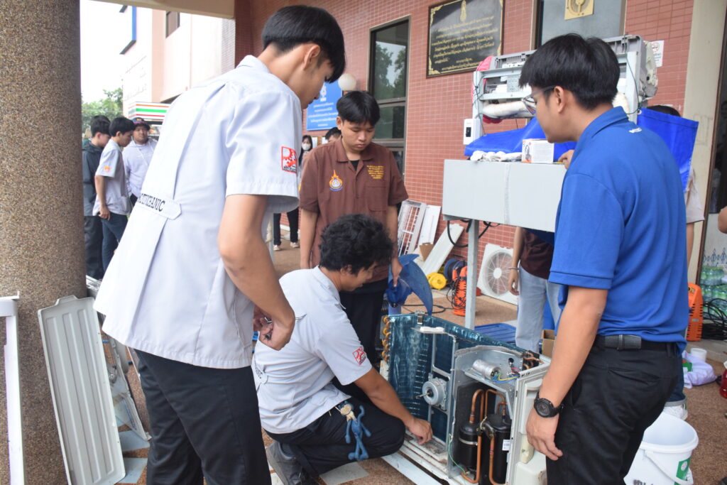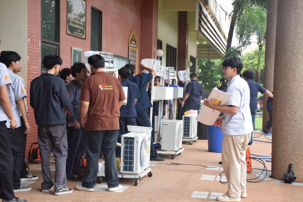 วันที่ 20 กันยายน 2567 คณะอุตสาหกรรมและเทคโนโลยี มหาวิทยาลัยเทคโนโลยีราชมงคลอีสาน วิทยาเขตสกลนคร จัดโครงการ 1 หลักสูตร 1 Certificate กิจกรรมที่ 1 อบรมและทดสอบมาตรฐานอาชีพและคุณวุฒิวิชาชีพระดับต่ำกว่าปริญญาตรี และระดับปริญญาตรี กลุ่มวิศวกรรมศาสตร์ และกลุ่มช่างอุตสาหกรรม (การล้างเครื่องปรับอากาศ) เพื่อให้นักศึกษามีความรู้และทักษะเกี่ยวกับการใช้เครื่องมือ มีความพร้อมในการเข้ารับการทดสอบมาตรฐานฝีมือแรงงานแห่งชาติ มีความรู้หลักการใช้และบำรุงรักษาเครื่องปรับอากาศในบ้านได้อย่างถูกต้องและปลอดภัย สามารถนำความรู้ไปใช้ในการปฏิบัติงานและการประกอบอาชีพในอนาคตได้ โดยมีการบรรยาย เรื่องสถานการณ์พลังงาน เกณฑ์มาตรฐานประสิทธิภาพพลังงานของบ้านอยู่อาศัยกับเทคโนโลยีประหยัดพลังงาน และกิจกรรม Workshop การล้างเครื่องปรับอากาศด้วยตนเอง โดยได้รับเกียรติจากทีมเจ้าหน้าที่จากศูนย์บริการวิชาการที่ 4 (จังหวัดหนองคาย) เป็นวิทยากร ในการนี้ ผศ. ดร.สัณหวัจน์ ทองแดง รองคณบดีฝ่ายวิชาการและวิจัย ให้เกียรติเป็นประธานในพิธีเปิดโครงการ