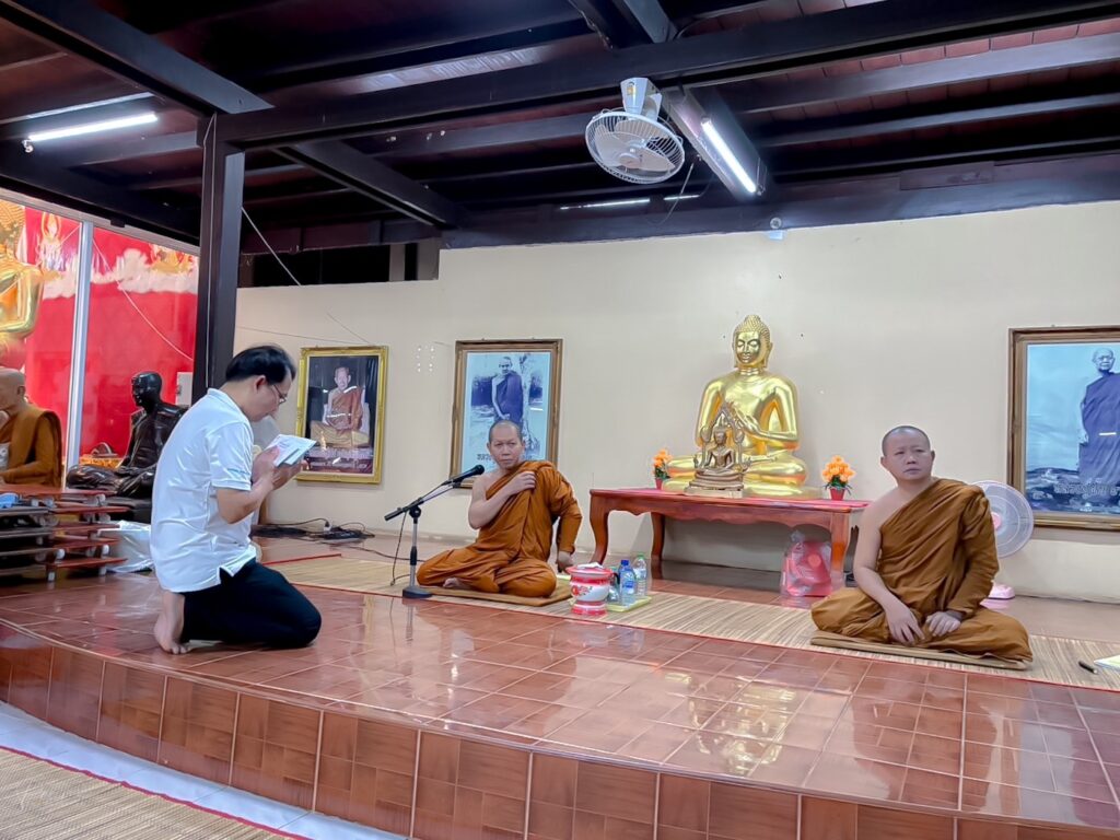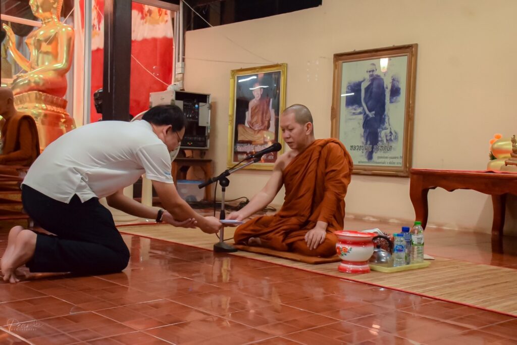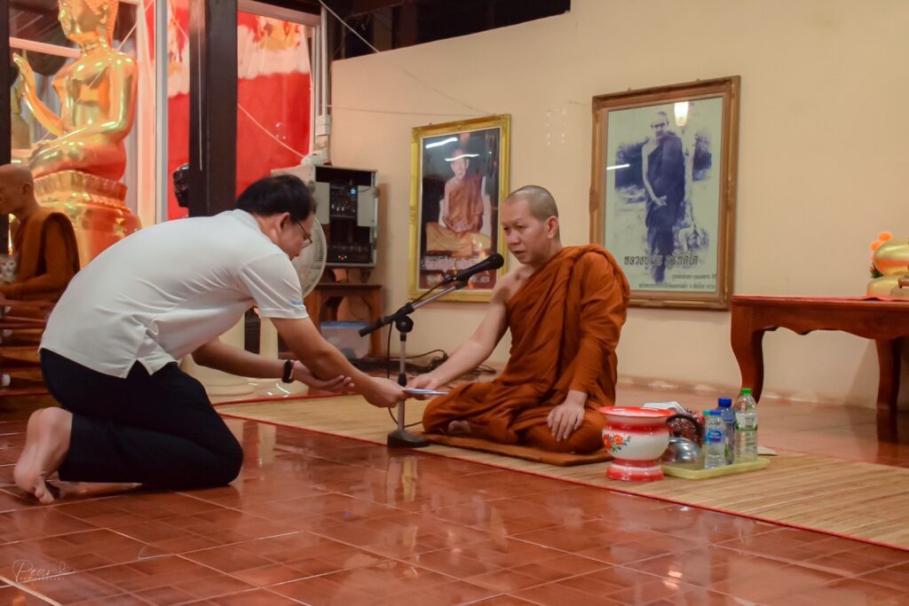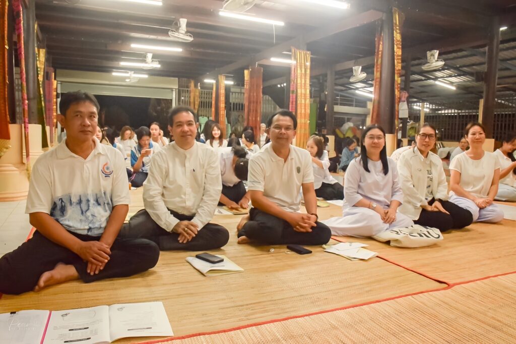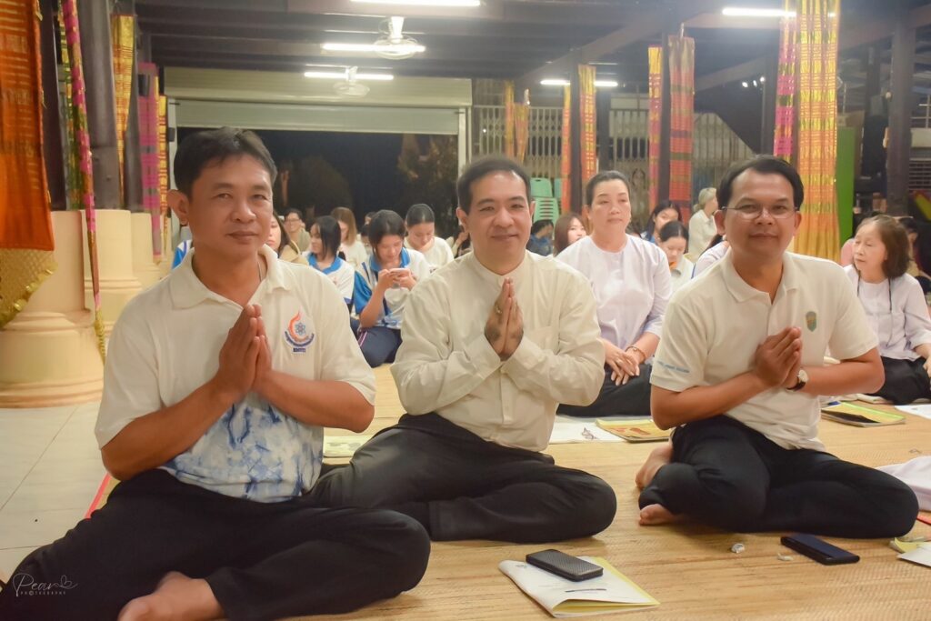 วันที่ 25 กันยายน 2566 สาขาศิลปศาสตร์ คณะอุตสาหกรรมและเทคโนโลยี จัดกิจกรรมสวดมนต์ทุกวันพระ ณ วัดศรีจำปาชนบท อำเภอพังโคน จังหวัดสกลนคร เพื่อเฉลิมพระเกียรติถวายพระพรชัยมงคลแด่ พระบาทสมเด็จพระเจ้าอยู่หัว เนื่องในโอกาสมหามงคลเฉลิมพระชนมพรรษา 6 รอบ 72 พรรษา อีกทั้งยังช่วยปลูกฝังคุณธรรม จริยธรรมที่ดีงาม ให้บุคลากรและนักศึกษา สร้างภูมิคุ้มกันทางด้านจิตใจ รู้จักหลักธรรมคำสอนของพระพุทธศาสนา สามารถนำหลักธรรมคำสอนไปกล่อมเกลาจิตใจ ประพฤติปฏิบัติขัดเกลานิสัยให้เป็นบุคคลที่ดีของสังคมต่อไป ในการนี้ ผศ. ดร.สุริยา แก้วอาษา คณบดีคณะอุตสาหกรรมและเทคโนโลยี ได้เข้าร่วมสวดมนต์ และถวายปัจจัยแก่เจ้าอาวาสวัดศรีจำปาชนบท เพื่อช่วยทำนุบำรุงศาสนา โดยมีคณาจารย์ เจ้าหน้าที่และนักศึกษาเข้าร่วมกิจกรรมโดยพร้อมเพรียงกัน