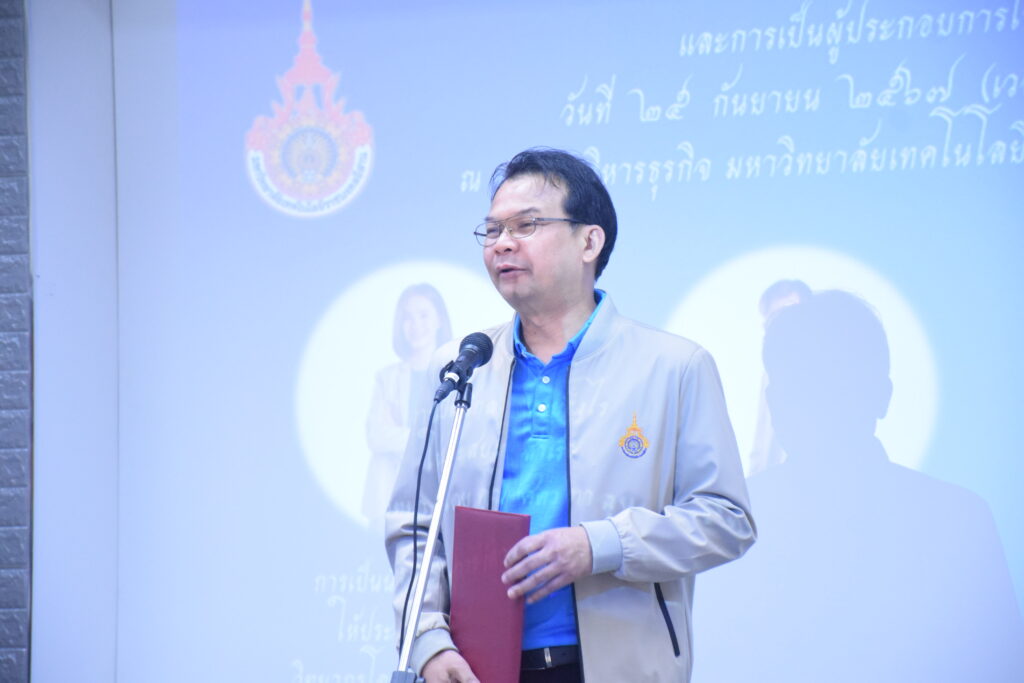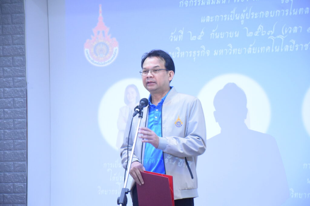 วันที่ 25 กันยายน 2566 สาขาบริหารธุรกิจ คณะอุตสาหกรรมและเทคโนโลยี จัดกิจกรรมสัมมนา เส้นทางสู่ความสำเร็จของนักลงทุนและการเป็นผู้ประกอบการในตลาดออนไลน์ ณ ลานกิจกรรม อาคารสาขาบริหารธุรกิจ คณะอุตสาหกรรมและเทคโนโลยี เพื่อให้นักศึกษามีความรู้ในการเป็นผู้ประกอบการในยุคดิจทัล การนำเทคโนโลยีและนวัตกรรมใหม่ๆ มาใช้ในการพัฒนาธุรกิจ พัฒนาทักษะการแก้ปัญหาการจัดการธุรกิจ การสร้างเครือข่าย และการใช้เครื่องมือดิจิทัลในการทำงาน และได้รับประสบการณ์ โดยตรงจากผู้ประกอบการที่ประสบความสำเร็จ ช่วยสร้างแรงบันดาลใจในการประกอบธุรกิจในอนาคต ในการนี้ ผศ. ดร.สุริยา แก้วอาษา คณบดีคณะอุตสาหกรรมและเทคโนโลยี ให้เกียรติเป็นประธานในพิธีเปิดโครงการ