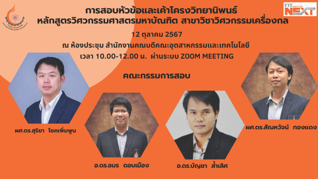 วันที่ 12 ตุลาคม 2567 สาขาวิศวกรรมเครื่องกล คณะอุตสาหกรรมและเทคโนโลยี มหาวิทยาลัยเทคโนโลยีราชมงคลอีสาน วิทยาเขตสกลนคร ดำเนินการสอบป้องกันวิทยานิพนธ์ หัวข้อ “การพัฒนาเตาเผาถ่านไม้ไผ่ไร้ควันประสิทธิภาพสูง ด้วยเทคนิคเพิ่มพื้นผิวรับความร้อนและติดตั้งแผ่นกั้นการไหล” หลักสูตรวิศวกรรมศาสตรมหาบัณฑิต สาขาวิชาวิศวกรรมเครื่องกล ณ ห้องประชุมสำนักงานคณบดี คณะอุตสาหกรรมและเทคโนโลยี เพื่อประเมินความรู้เชิงลึกที่ใช้ในการจัดทำวิทยานิพนธ์ และเทคนิคที่ใช้ในการแก้ปัญหางานวิจัย โดยได้รับเกียรติจาก ผศ. ดร.สุริยา โชคเพิ่มพูน จากสาขาวิศวกรรมเครื่องกลและการผลิต มหาวิทยาลัยเกษตรศาสตร์ วิทยาเขตเฉลิมพระเกียรติ จังหวัดสกลนคร และคณาจารย์สาขาวิศวกรรมเครื่องกล คณะอุตสาหกรรมและเทคโนโลยี เป็นคณะกรรมการสอบป้องกันวิทยานิพนธ์ในครั้งนี้