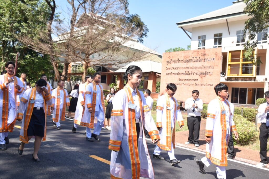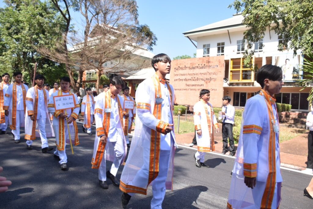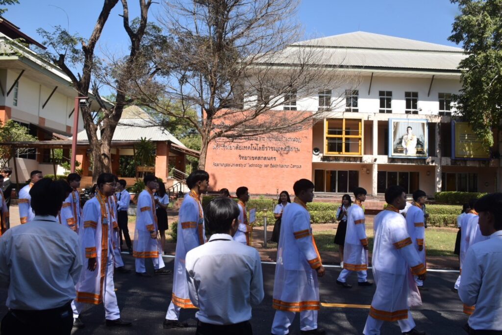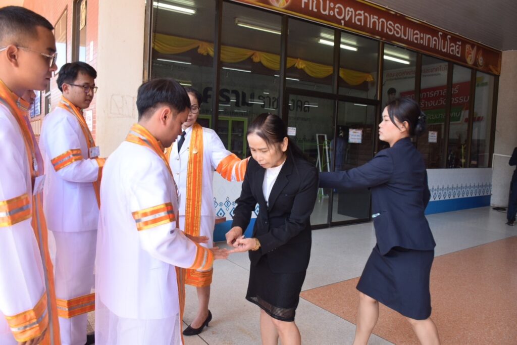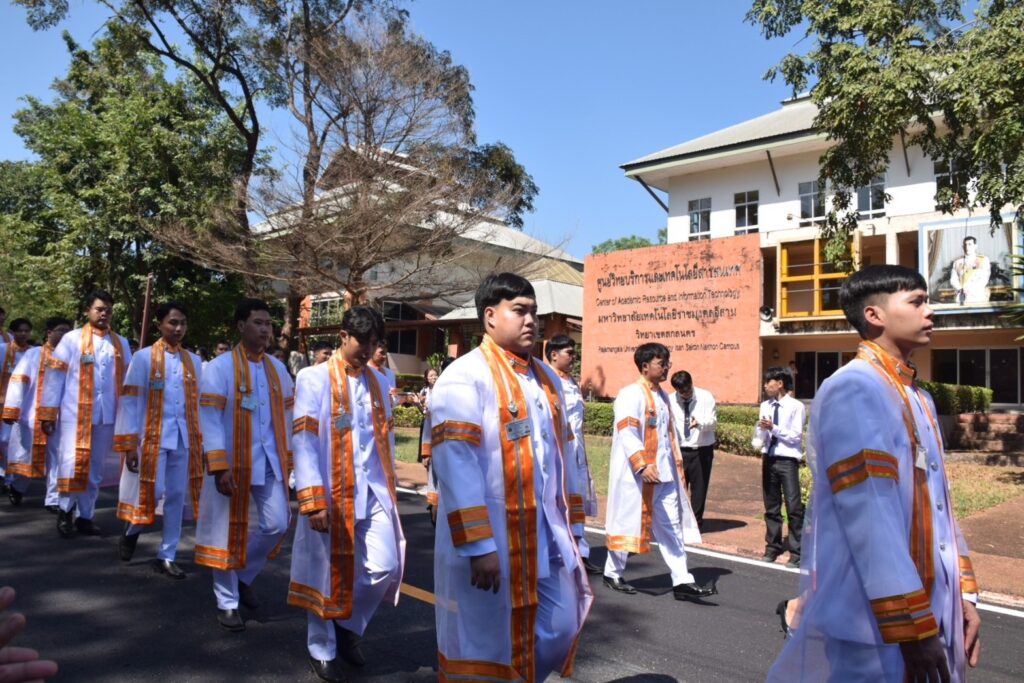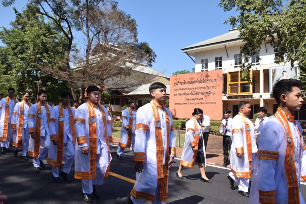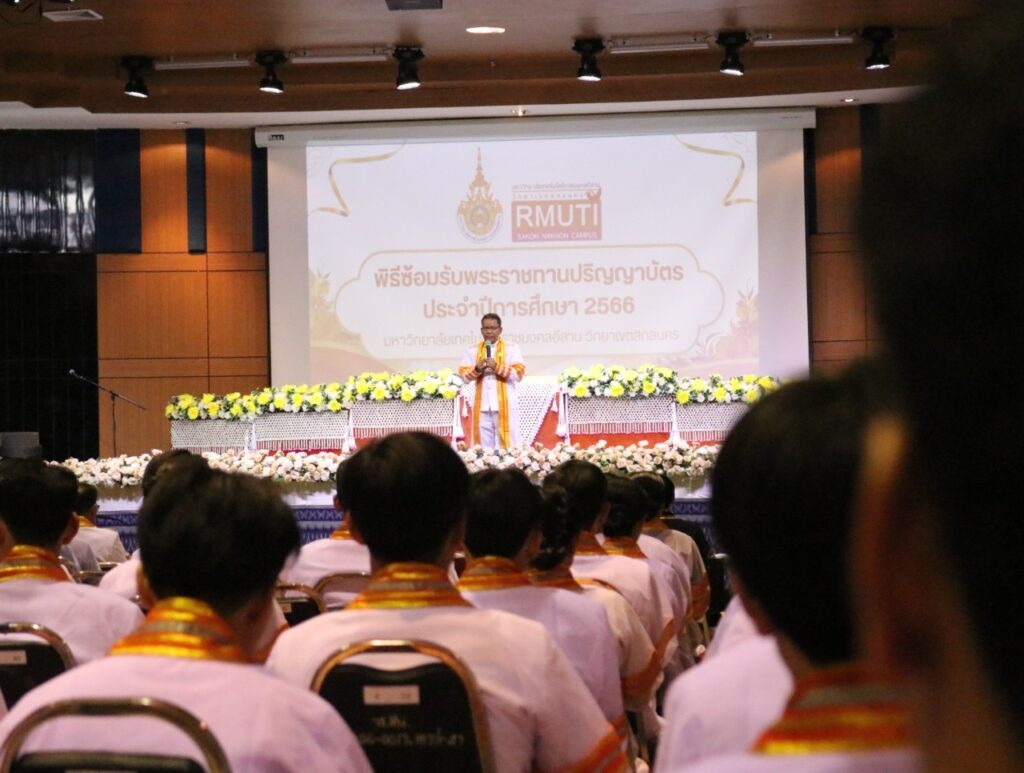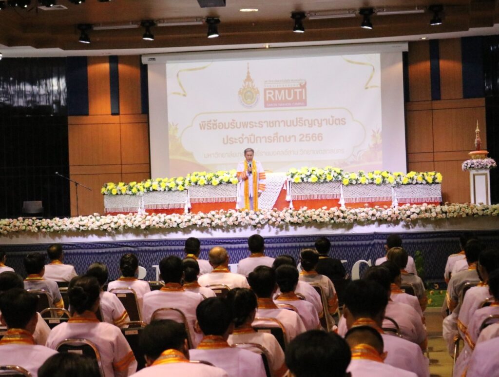 วันที่ 9 – 10 พฤศจิกายน 2567 คณะอุตสาหกรรมและเทคโนโลยี นำโดย ผศ. ดร.สุริยา แก้วอาษา พร้อมด้วยคณะผู้บริหาร คณาจารย์ เจ้าหน้าที่ และนักศึกษา เข้าร่วมพิธีฝึกซ้อมพระราชทานปริญญาบัตรแก่ผู้สำเร็จการศึกษา และแสดงความยินดีกับบัณฑิตและมหาบัณฑิต ที่จะเข้ารับพระราชทานปริญญาบัตร ครั้งที่ 38 ประจำปีการศึกษา 2566 ในวันศุกร์ที่ 15 พฤศจิกายน 2567 ณ หอประชุมเฉลิมพระเกียรติ ในโอกาสฉลองพระชนมายุ 5 รอบ 2 เมษายน 2567 ศูนย์การศึกษาหนองระเวียง มหาวิทยาลัยเทคโนโลยีราชมงคลอีสาน นครราชสีมา โดยมี ผศ. น.สพ.ดร.ชเวง สารคล่อง รองอธิการบดีประจำวิทยาเขตสกลนคร เป็นประธานกล่าวให้โอวาทและกล่าวแสดงความยินดีกับบัณฑิตใหม่ ณ ห้องประชุมราชมงคล อาคารเรียนรวม มหาวิทยาลัยเทคโนโลยีราชมงคลอีสาน วิทยาเขตสกลนคร