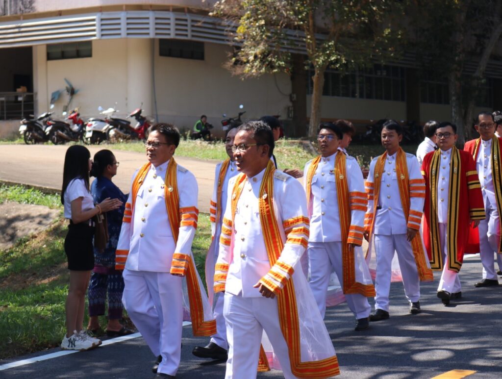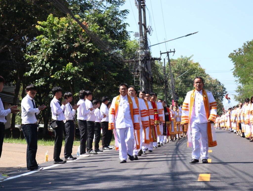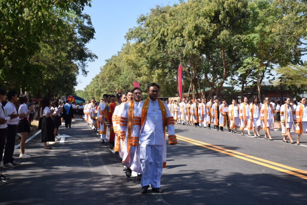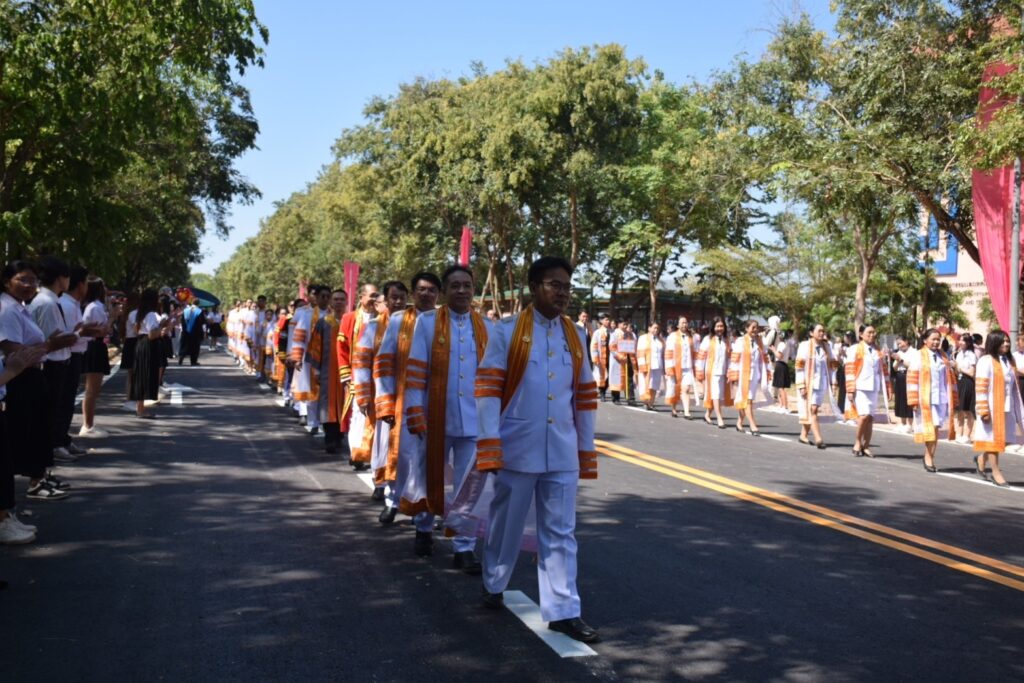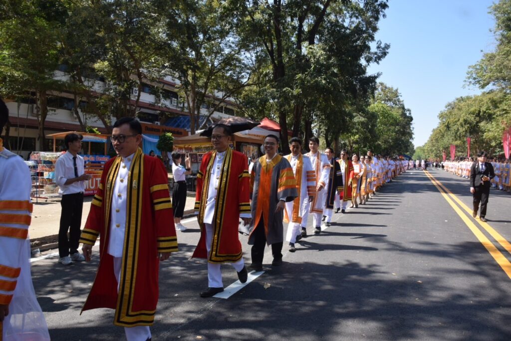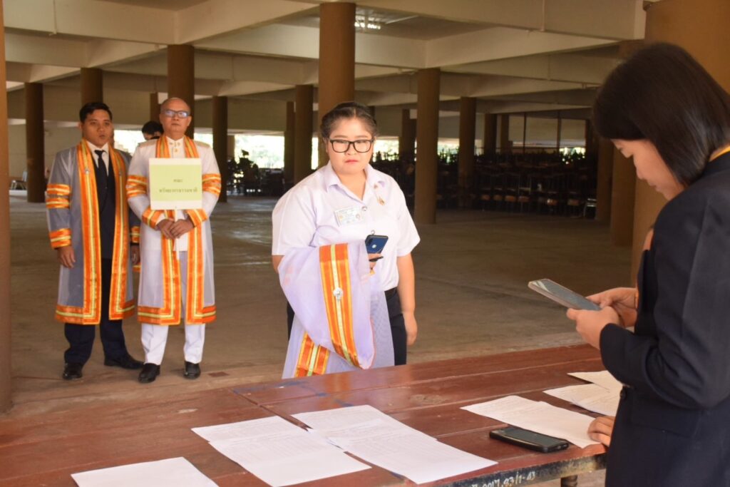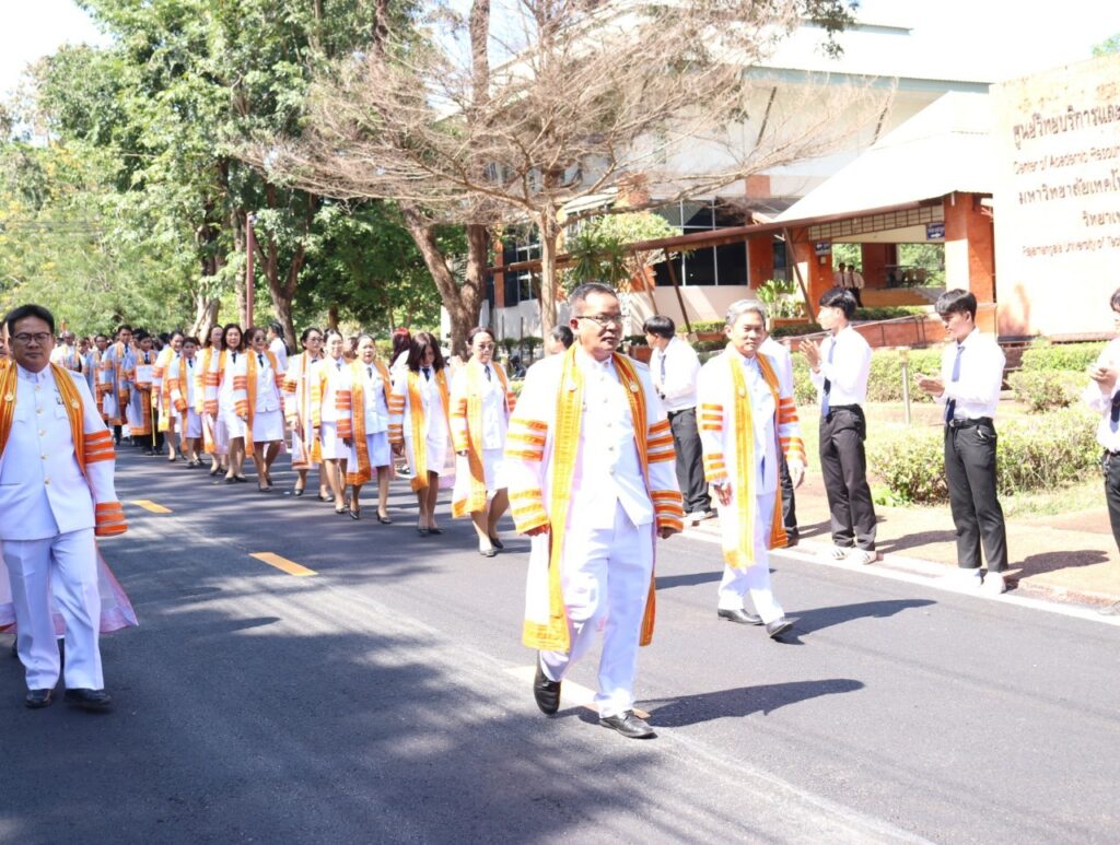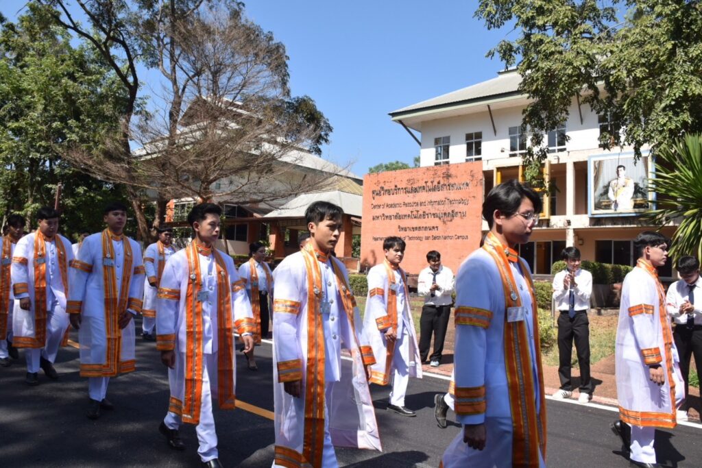 วันที่ 9 – 10 พฤศจิกายน 2567 คณะอุตสาหกรรมและเทคโนโลยี นำโดย ผศ. ดร.สุริยา แก้วอาษา พร้อมด้วยคณะผู้บริหาร คณาจารย์ เจ้าหน้าที่ และนักศึกษา เข้าร่วมพิธีฝึกซ้อมพระราชทานปริญญาบัตรแก่ผู้สำเร็จการศึกษา และแสดงความยินดีกับบัณฑิตและมหาบัณฑิต ที่จะเข้ารับพระราชทานปริญญาบัตร ครั้งที่ 38 ประจำปีการศึกษา 2566 ในวันศุกร์ที่ 15 พฤศจิกายน 2567 ณ หอประชุมเฉลิมพระเกียรติ ในโอกาสฉลองพระชนมายุ 5 รอบ 2 เมษายน 2567 ศูนย์การศึกษาหนองระเวียง มหาวิทยาลัยเทคโนโลยีราชมงคลอีสาน นครราชสีมา โดยมี ผศ. น.สพ.ดร.ชเวง สารคล่อง รองอธิการบดีประจำวิทยาเขตสกลนคร เป็นประธานกล่าวให้โอวาทและกล่าวแสดงความยินดีกับบัณฑิตใหม่ ณ ห้องประชุมราชมงคล อาคารเรียนรวม มหาวิทยาลัยเทคโนโลยีราชมงคลอีสาน วิทยาเขตสกลนคร