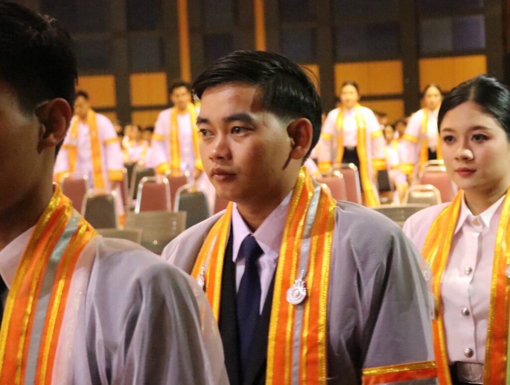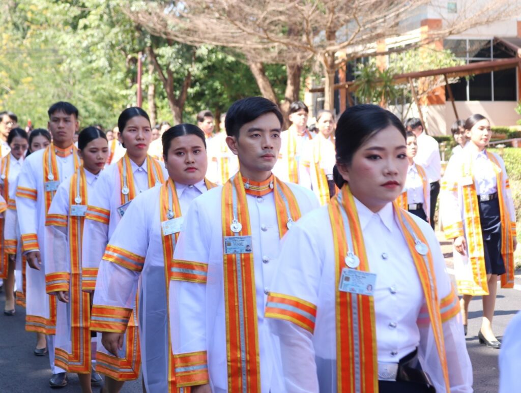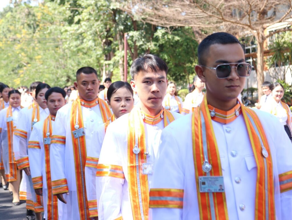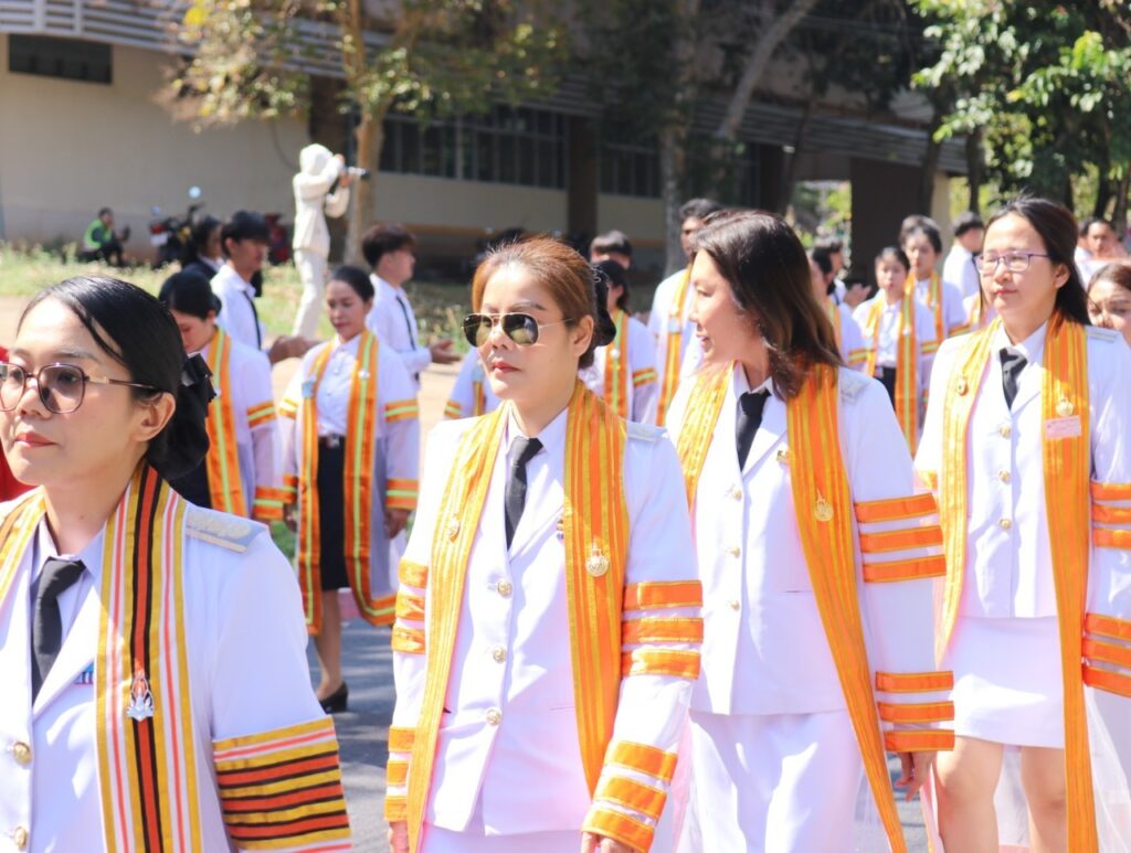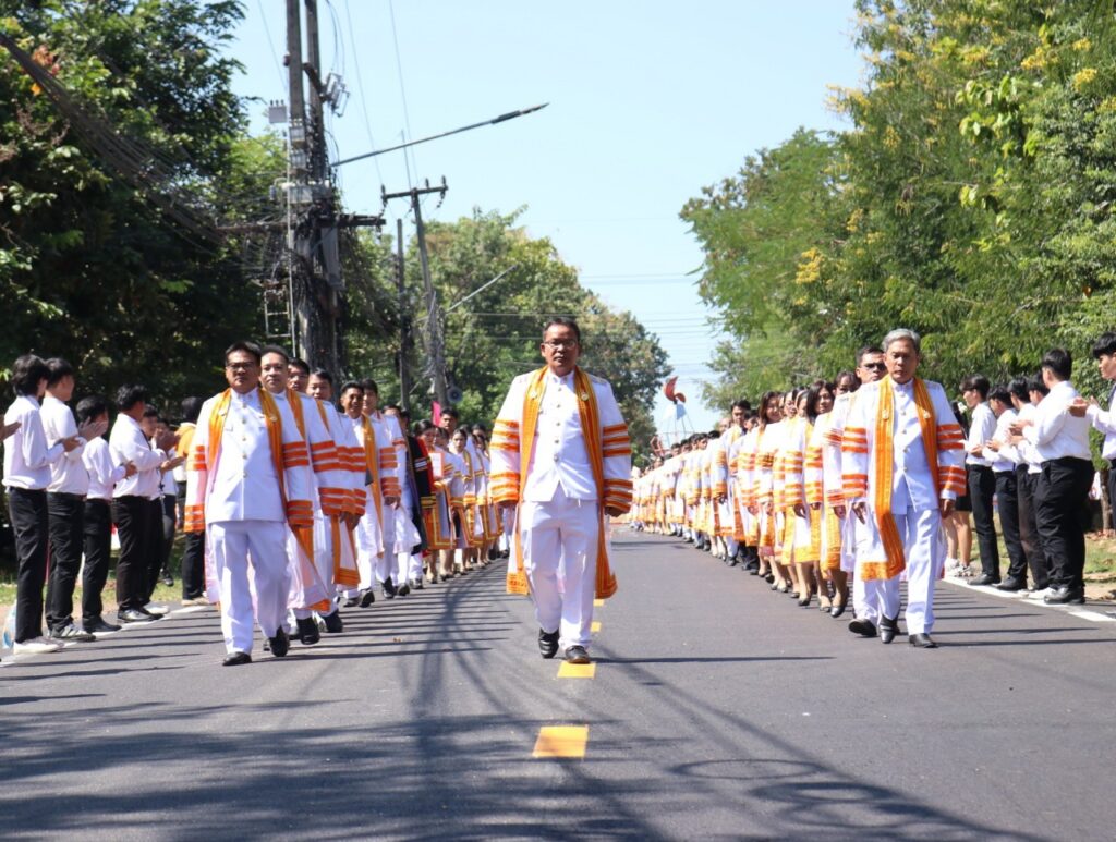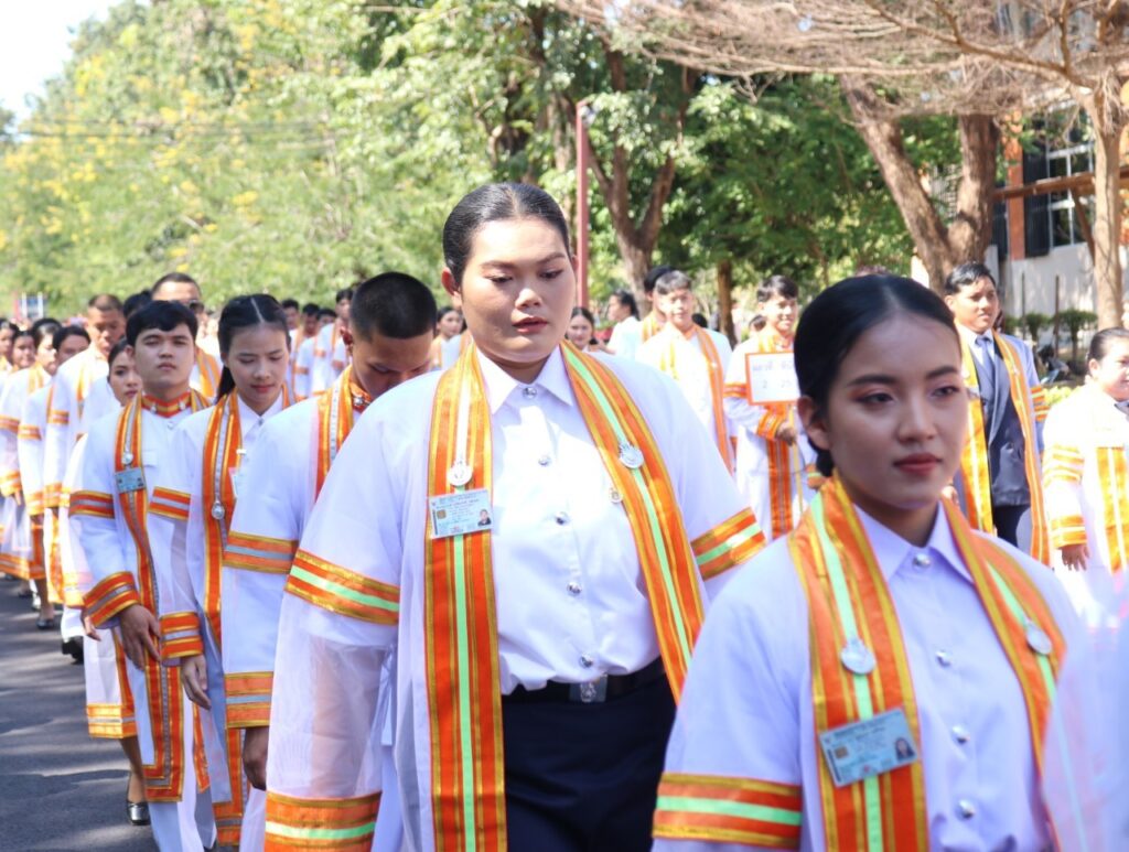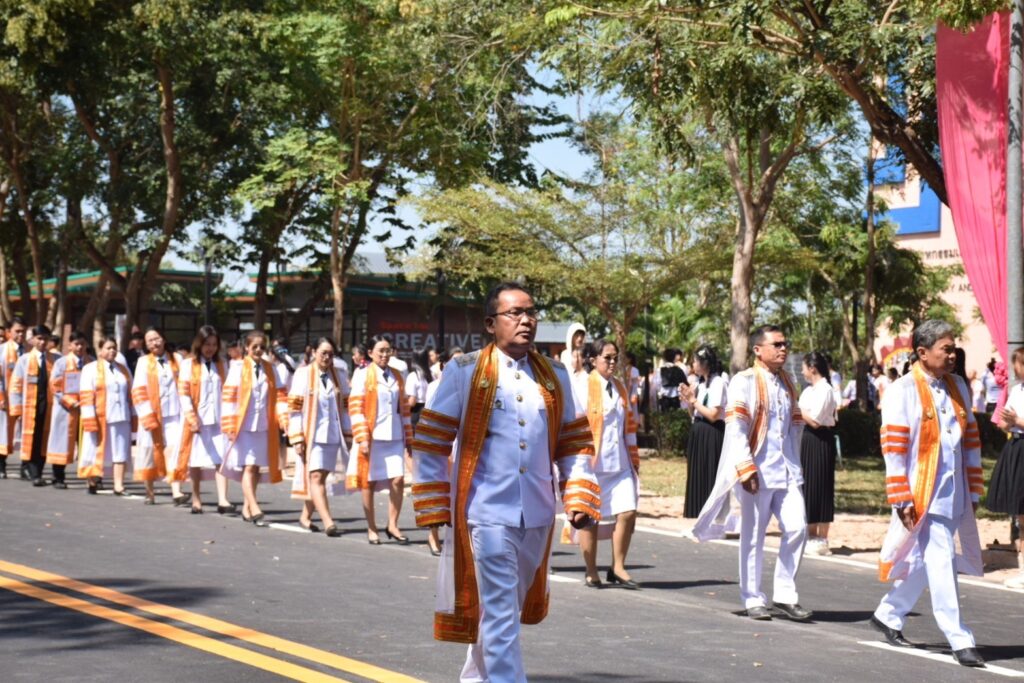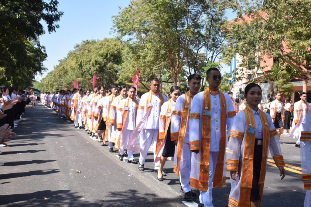 วันที่ 9 – 10 พฤศจิกายน 2567 คณะอุตสาหกรรมและเทคโนโลยี นำโดย ผศ. ดร.สุริยา แก้วอาษา พร้อมด้วยคณะผู้บริหาร คณาจารย์ เจ้าหน้าที่ และนักศึกษา เข้าร่วมพิธีฝึกซ้อมพระราชทานปริญญาบัตรแก่ผู้สำเร็จการศึกษา และแสดงความยินดีกับบัณฑิตและมหาบัณฑิต ที่จะเข้ารับพระราชทานปริญญาบัตร ครั้งที่ 38 ประจำปีการศึกษา 2566 ในวันศุกร์ที่ 15 พฤศจิกายน 2567 ณ หอประชุมเฉลิมพระเกียรติ ในโอกาสฉลองพระชนมายุ 5 รอบ 2 เมษายน 2567 ศูนย์การศึกษาหนองระเวียง มหาวิทยาลัยเทคโนโลยีราชมงคลอีสาน นครราชสีมา โดยมี ผศ. น.สพ.ดร.ชเวง สารคล่อง รองอธิการบดีประจำวิทยาเขตสกลนคร เป็นประธานกล่าวให้โอวาทและกล่าวแสดงความยินดีกับบัณฑิตใหม่ ณ ห้องประชุมราชมงคล อาคารเรียนรวม มหาวิทยาลัยเทคโนโลยีราชมงคลอีสาน วิทยาเขตสกลนคร