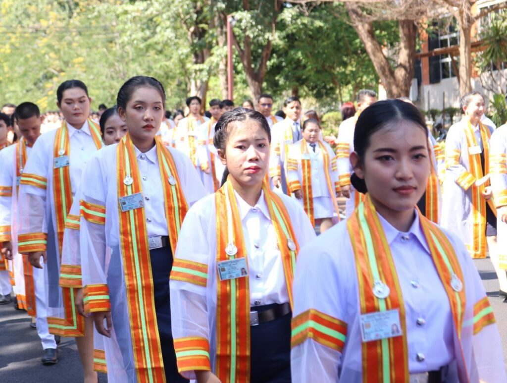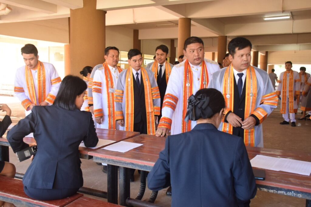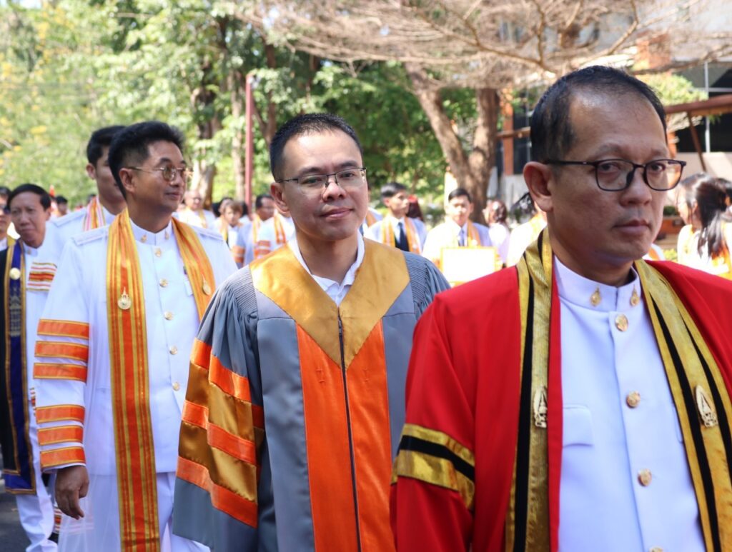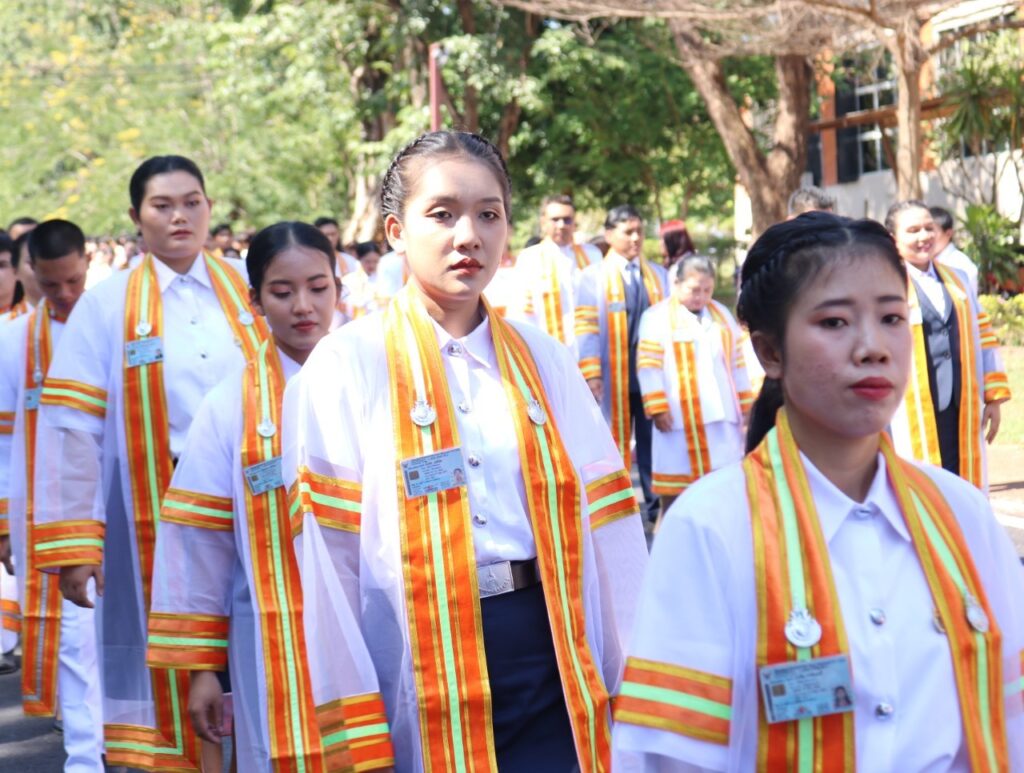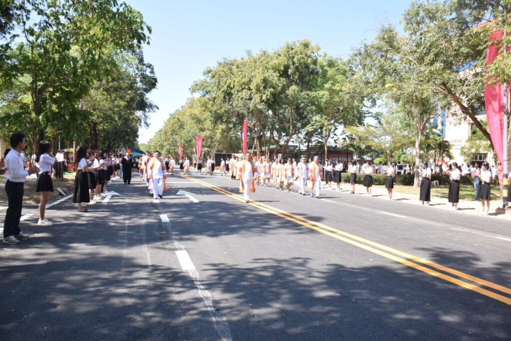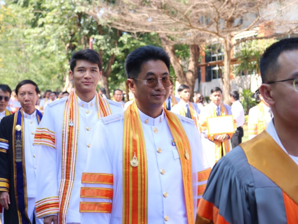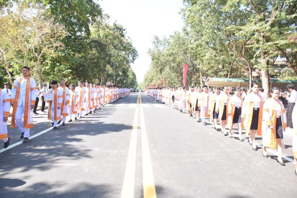 วันที่ 9 – 10 พฤศจิกายน 2567 คณะอุตสาหกรรมและเทคโนโลยี นำโดย ผศ. ดร.สุริยา แก้วอาษา พร้อมด้วยคณะผู้บริหาร คณาจารย์ เจ้าหน้าที่ และนักศึกษา เข้าร่วมพิธีฝึกซ้อมพระราชทานปริญญาบัตรแก่ผู้สำเร็จการศึกษา และแสดงความยินดีกับบัณฑิตและมหาบัณฑิต ที่จะเข้ารับพระราชทานปริญญาบัตร ครั้งที่ 38 ประจำปีการศึกษา 2566 ในวันศุกร์ที่ 15 พฤศจิกายน 2567 ณ หอประชุมเฉลิมพระเกียรติ ในโอกาสฉลองพระชนมายุ 5 รอบ 2 เมษายน 2567 ศูนย์การศึกษาหนองระเวียง มหาวิทยาลัยเทคโนโลยีราชมงคลอีสาน นครราชสีมา โดยมี ผศ. น.สพ.ดร.ชเวง สารคล่อง รองอธิการบดีประจำวิทยาเขตสกลนคร เป็นประธานกล่าวให้โอวาทและกล่าวแสดงความยินดีกับบัณฑิตใหม่ ณ ห้องประชุมราชมงคล อาคารเรียนรวม มหาวิทยาลัยเทคโนโลยีราชมงคลอีสาน วิทยาเขตสกลนคร