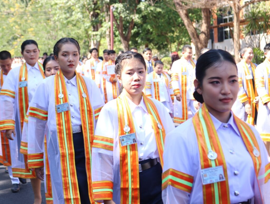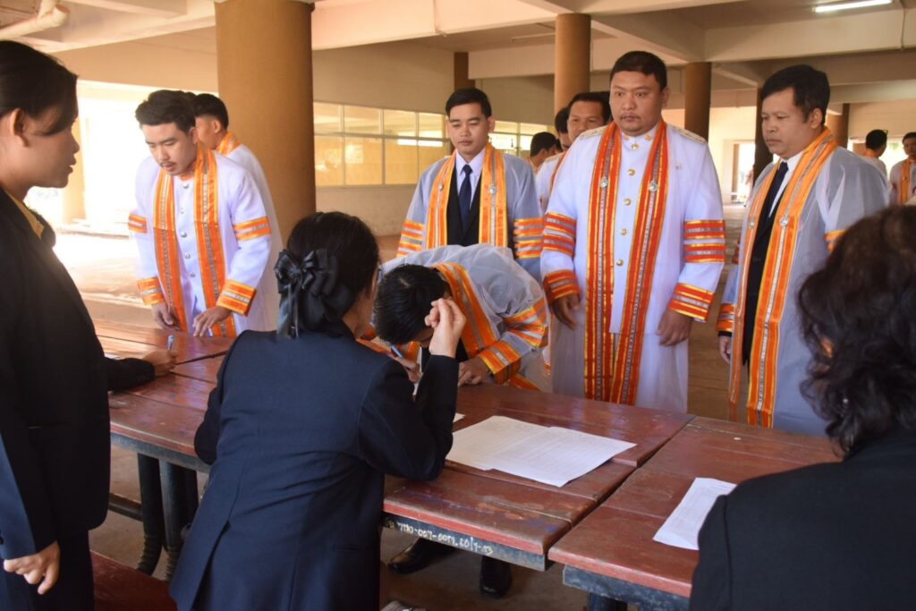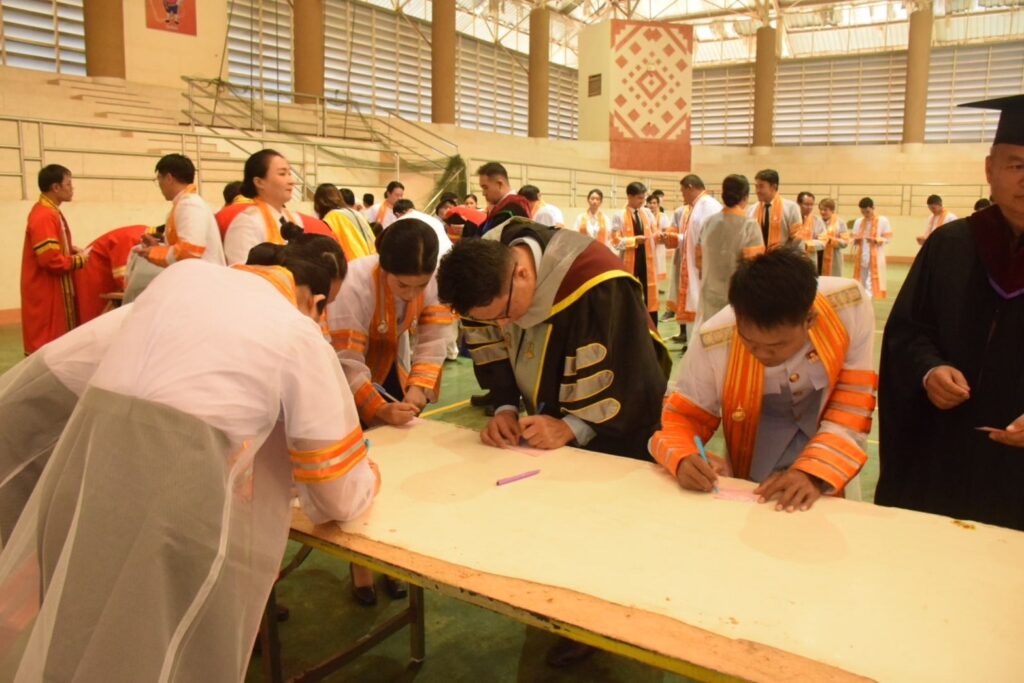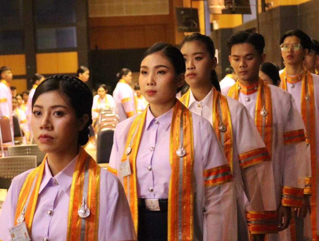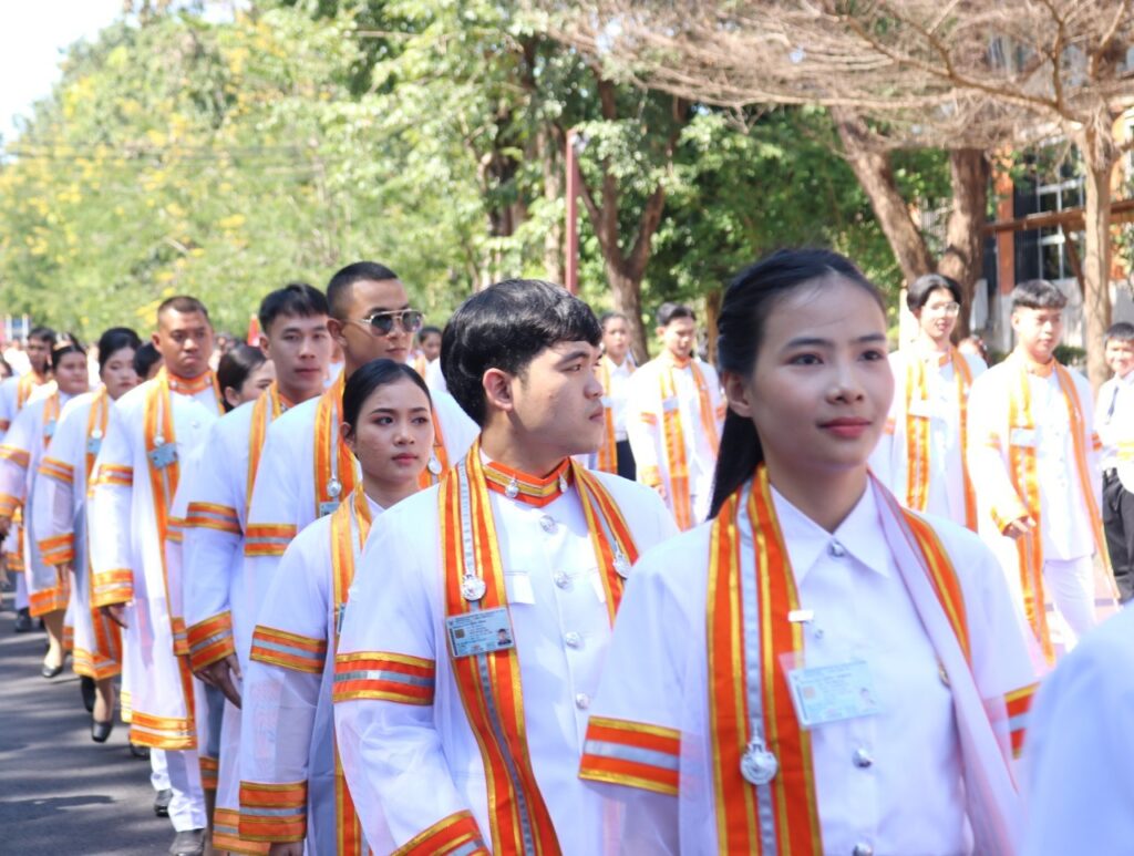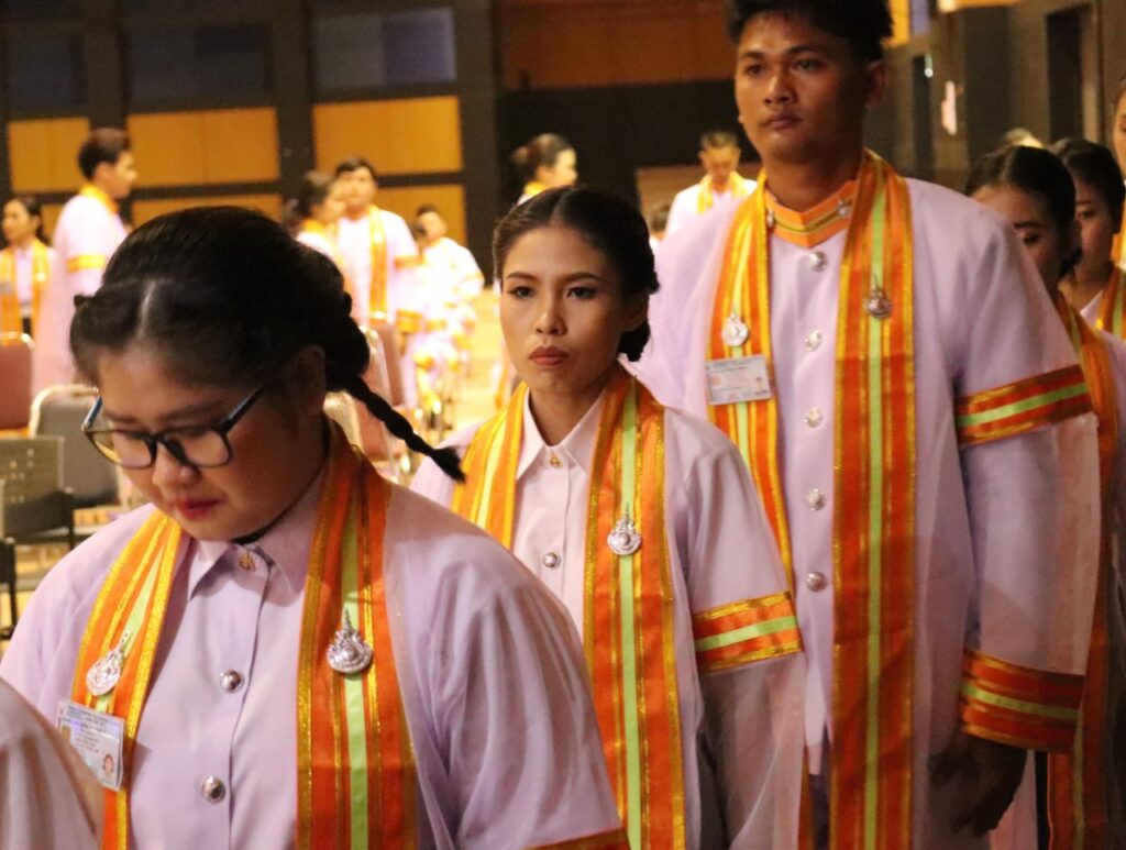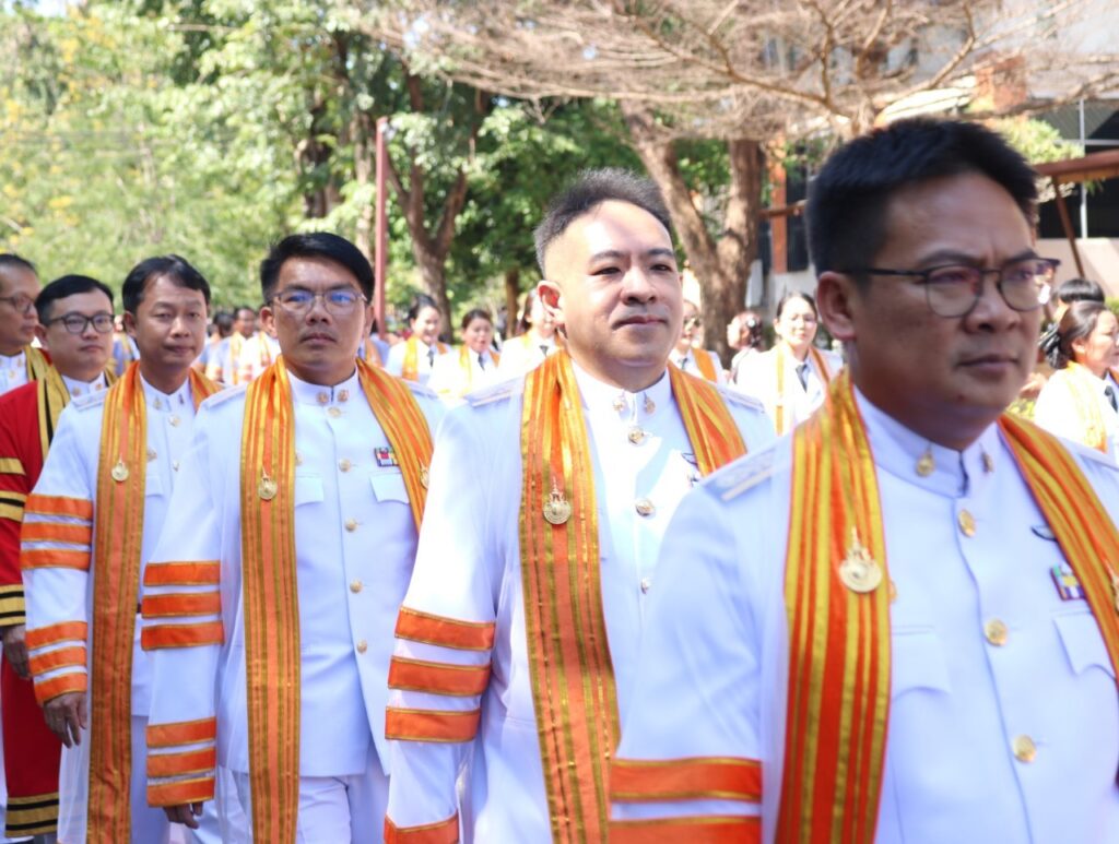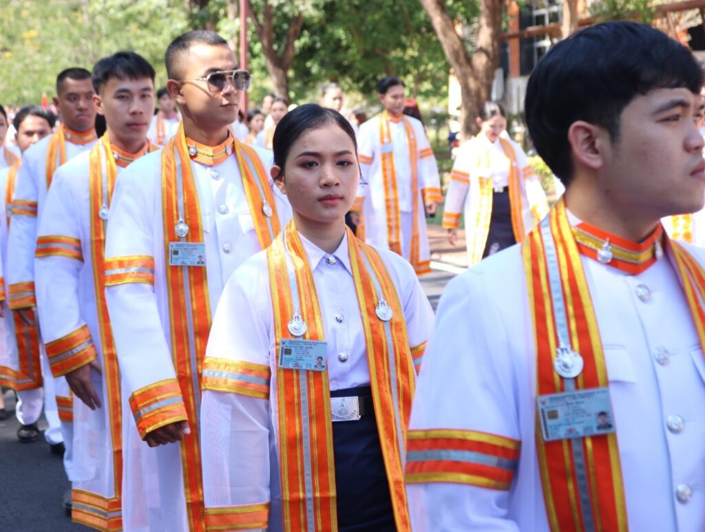 วันที่ 9 – 10 พฤศจิกายน 2567 คณะอุตสาหกรรมและเทคโนโลยี นำโดย ผศ. ดร.สุริยา แก้วอาษา พร้อมด้วยคณะผู้บริหาร คณาจารย์ เจ้าหน้าที่ และนักศึกษา เข้าร่วมพิธีฝึกซ้อมพระราชทานปริญญาบัตรแก่ผู้สำเร็จการศึกษา และแสดงความยินดีกับบัณฑิตและมหาบัณฑิต ที่จะเข้ารับพระราชทานปริญญาบัตร ครั้งที่ 38 ประจำปีการศึกษา 2566 ในวันศุกร์ที่ 15 พฤศจิกายน 2567 ณ หอประชุมเฉลิมพระเกียรติ ในโอกาสฉลองพระชนมายุ 5 รอบ 2 เมษายน 2567 ศูนย์การศึกษาหนองระเวียง มหาวิทยาลัยเทคโนโลยีราชมงคลอีสาน นครราชสีมา โดยมี ผศ. น.สพ.ดร.ชเวง สารคล่อง รองอธิการบดีประจำวิทยาเขตสกลนคร เป็นประธานกล่าวให้โอวาทและกล่าวแสดงความยินดีกับบัณฑิตใหม่ ณ ห้องประชุมราชมงคล อาคารเรียนรวม มหาวิทยาลัยเทคโนโลยีราชมงคลอีสาน วิทยาเขตสกลนคร