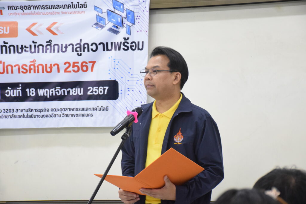 วันที่ 18 พฤศจิกายน 2567 คณะอุตสาหกรรมและเทคโนโลยี จัดกิจกรรมฝึกอบรมการพัฒนาทักษะนักศึกษาสู่ความพร้อมในยุคดิจิทัลประจำปีการศึกษา 2567 ณ ห้อง 3203 อาคารสาขาบริหารธุรกิจ มหาวิทยาลัยเทคโนโลยีราชมงคลอีสาน วิทยาเขตสกลนคร เพื่อพัฒนาทักษะด้านเทคโนโลยี เตรียมความพร้อมสำหรับการทำงานในสังคมยุคดิจิทัล สนับสนุนให้นักศึกษาได้เรียนรู้และพัฒนาตัวเองให้ก้าวทันเทคโนโลยีสมัยใหม่ รวมถึงการคิดวิเคราะห์ และทักษะการสื่อสารที่สอดคล้องกับความต้องการของสังคมและตลาดแรงงานในปัจจุบัน โดยมีนักศึกษาสาขาวิชาเทคนิคคอมพิวเตอร์ และสาขาวิชาระบบสารสนเทศทางคอมพิวเตอร์ เข้าร่วมกิจกรรมจำนวน 50 คน โดยได้รับเกียรติจาก อาจารย์วีระชัย จรบุรมย์ อาจารย์ประจำสาขาวิศวกรรมไฟฟ้า อาจารย์มานิตย์ สานอก อาจารย์ประจำสาขาบริหารธุรกิจ และนายชัยวัฒน์ หมั่นจิตร เป็นวิทยากร ในการนี้ ผศ. ดร.สุริยา แก้วอาษา คณบดีคณะอุตสาหกรรมและเทคโนโลยี ให้เกียรติเป็นประธานในพิธีเปิดกิจกรรมในครั้งนี้