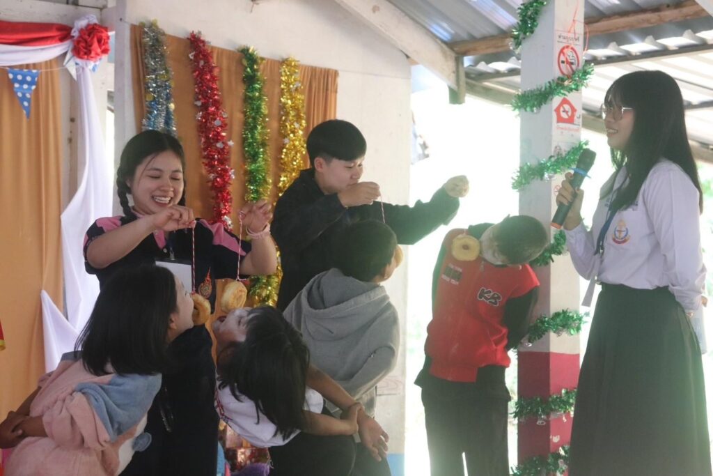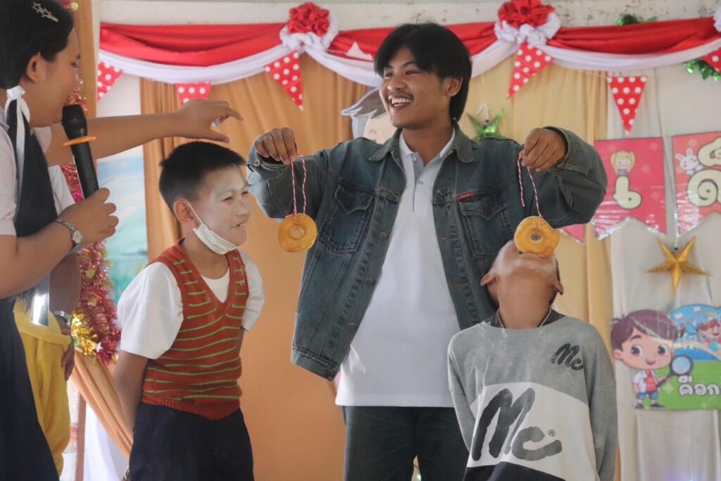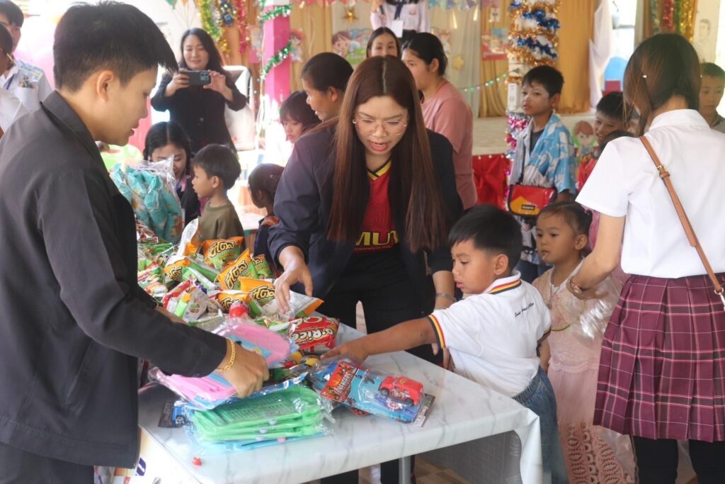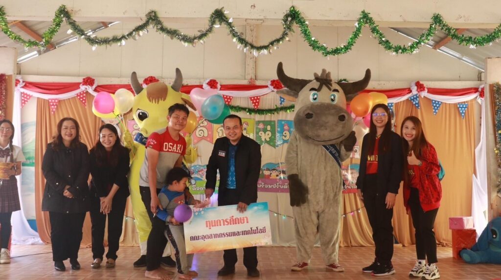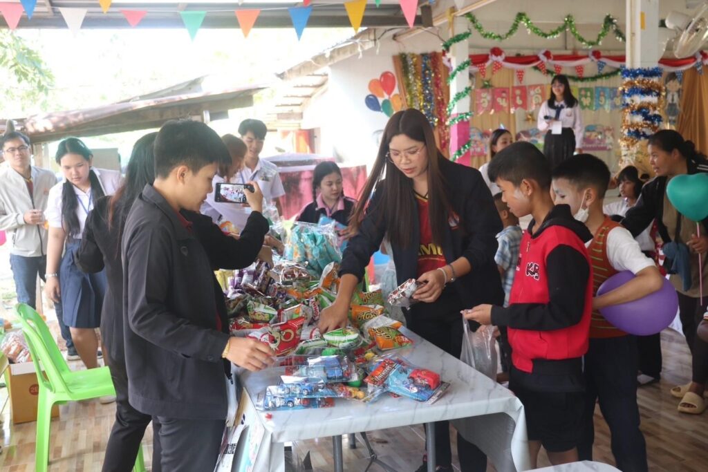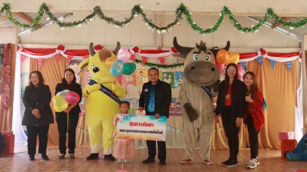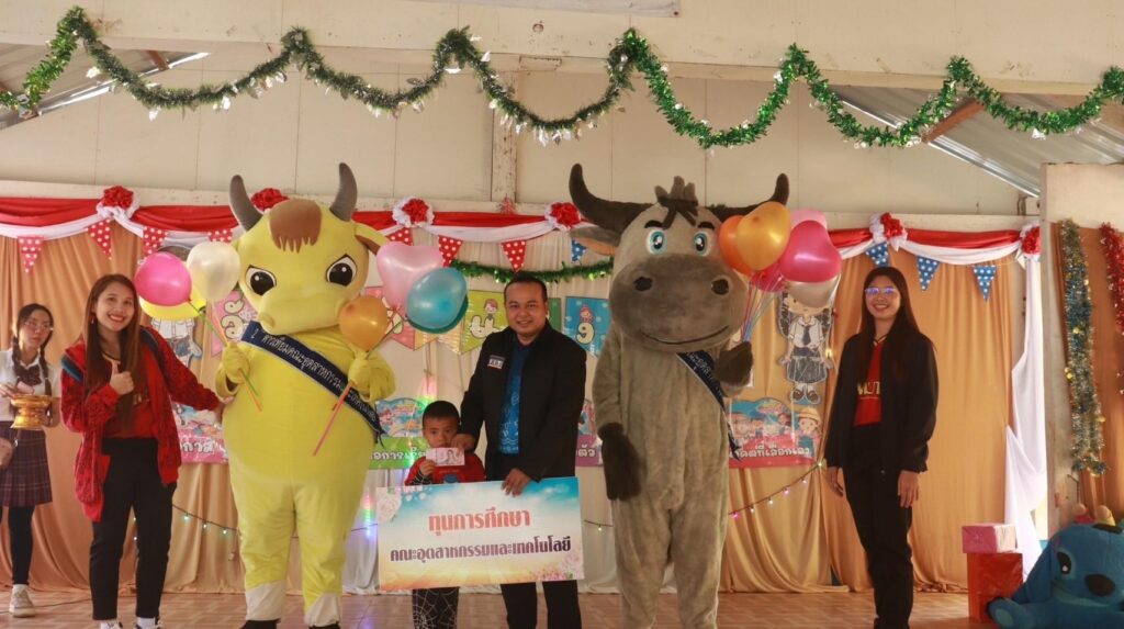 วันที่ 10 มกราคม 2568 สโมสรนักศึกษา คณะอุตสาหกรรมและเทคโนโลยี จัดโครงการวันเด็ก “แบ่งปันไออุ่นรักจากพี่สู่น้อง” ประจำปี 2568 ณ โรงเรียนบ้านดอนม่วยโน้นค้อ ตำบลช้างมิ่ง อำเภอพรรณานิคม จังหวัดสกลนคร โดยมีวัตถุประสงค์เพื่อส่งเสริมความสัมพันธ์ ระหว่างพี่กับน้อง ช่วยให้นักศึกษามีส่วนร่วม ในการพัฒนาเด็กและเยาวชน โดยมีกิจกรรมมอบทุนการศึกษา จำนวน 6 ทุนๆละ 500 บาท เป็นจำนวนเงิน 3,000 บาท โดย อาจารย์ ดร.เรืองชัย ตาแสง ผู้ช่วยคณบดีด้านพัฒนากิจกรรมนักศึกษา เป็นผู้มอบทุนการศึกษาในครั้งนี้ เพื่อเป็นกำลังใจในการปฏิบัติตนเป็นคนดีของสังคมและประเทศชาติต่อไป นอกจากนี้ยังมีกิจกรรมนันทนาการ ให้กับน้องๆนักเรียนด้ร่วมสนุก พร้อมทั้งแจกขนม ไอศครีม และของเล่น เพื่อส่งเสริมการพัฒนาการทางด้านร่างกาย อารมณ์ สังคม และสติปัญญาอีกด้วยโดยได้รับเกียรติจาก นายสราวุฒิ บุญยืน ผู้อำนวยการโรงเรียนบ้านดอนม่วยโน้นค้อ พร้อมด้วยคณะครูและบุคลากร ร่วมให้การต้อนรับ