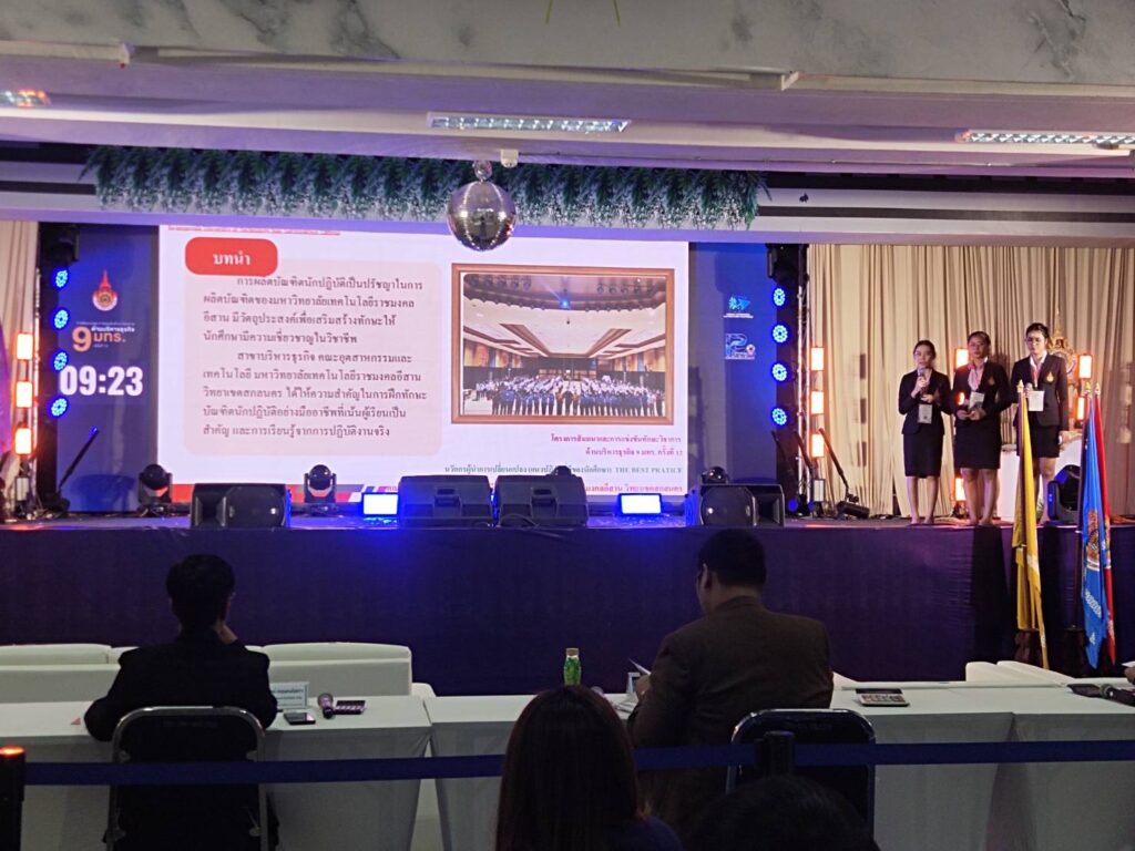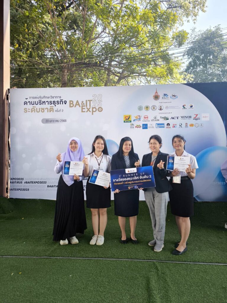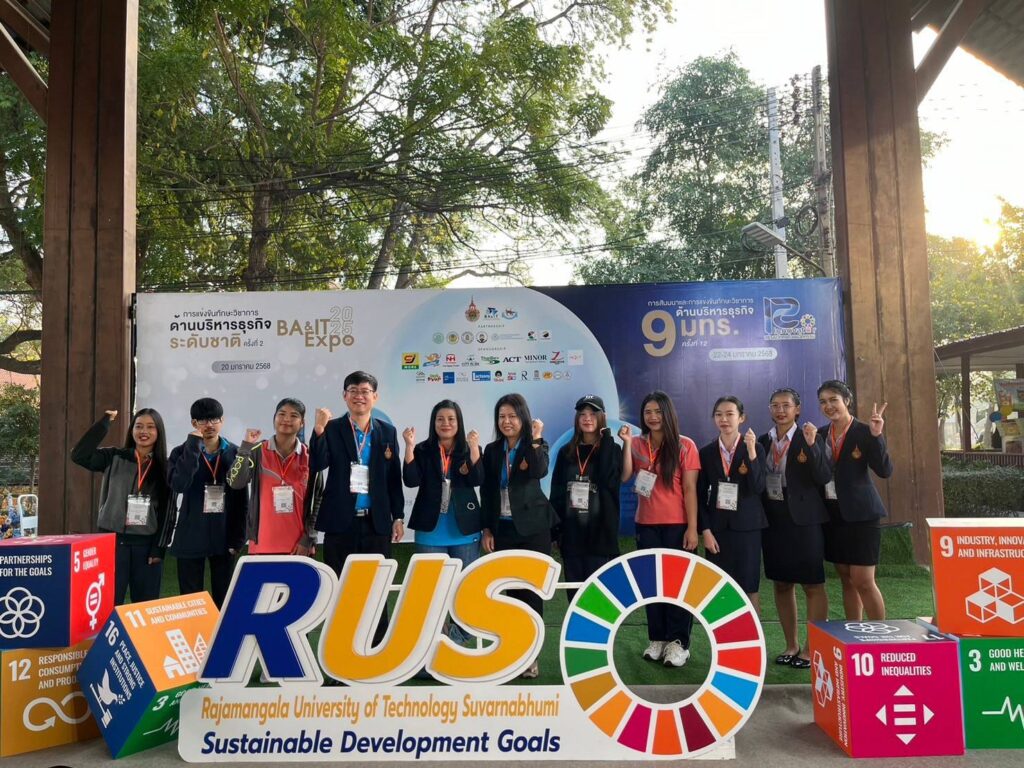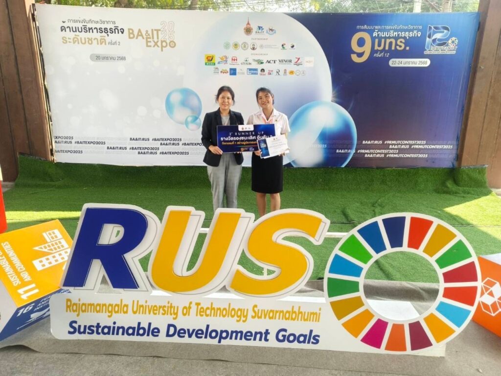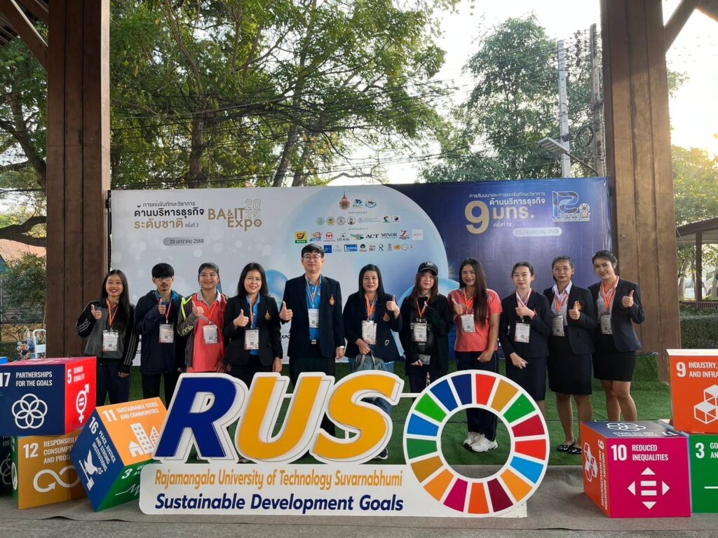 วันที่ 22 – 24 มกราคม 2568 อาจารย์และนักศึกษาสาขาบริหารธุรกิจ คณะอุตสาหกรรมและเทคโนโลยี นำโดย ผศ.ดร.ชารินี ไชยชนะ หัวหน้าสาขาบริหารธุรกิจ ผศ.ดร.จักเรศ เมตตะธำรงค์ และอาจารย์ฐานิตย์ เกษร นำนักศึกษาเข้าร่วมแข่งทักษะวิชาการด้านบริหารธุรกิจ ครั้งที่ 12 ภายใต้แนวคิด “R-Innovator สร้างนวัตกรด้วยนวัตกรรม” ของ 9 มทร. ณ มหาวิทยาลัยเทคโนโลยีราชมงคลสุวรรณภูมิ ศูนย์พระนครศรีอยุธยา วาสุกรี โดยได้เข้าร่วมแข่งขันทักษะ จำนวน 4 กิจกรรม ได้แก่ กิจกรรมที่ 1 สร้างผู้ประกอบการนวัตกรรม กิจกรรมที่ 5 นวัตกรผู้นำการเปลี่ยนแปลง กิจกรรมที่ 6 ต้นแบบอัจฉริยะสร้างนวัตกร และกิจกรรมที่ 9 การแข่งขันทักษะทางบัญชี9 มทร. ชิงถ้วยพระราชทาน โดยศิษย์เก่า MBA รุ่น 1 นางวิชิดา พรหมวงศานนท์ ได้เข้ารับโล่รางวัลเชิดชูเกียรติศิษย์เก่าดีเด่น ในนามตัวแทนศิษย์เก่าจาก มหาวิทยาลัยเทคโนโลยีราชมงคลอีสาน และนางสาวขวัญสุดา พรมบุญ นักศึกษาสาขาบริหารธุรกิจ หลักสูตรบัญชีบัณฑิต ได้รับรางวัลรองชนะเลิศอันดับ 2 ในกิจกรรมที่ 1 สร้างผู้ประกอบการนวัตกรรม ในการประกวดแผนธุรกิจในครั้งนี้ด้วย