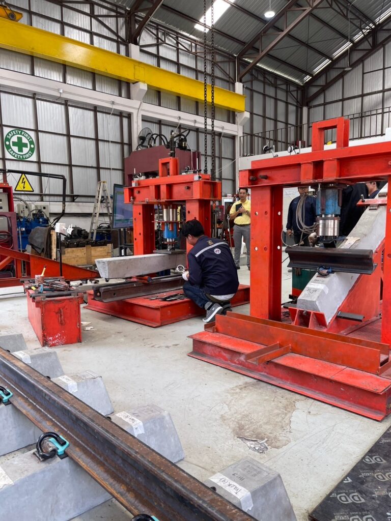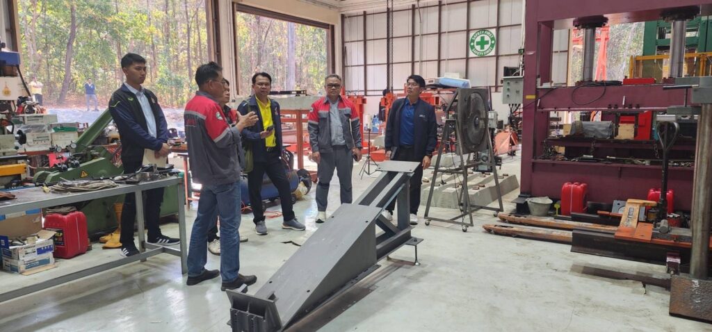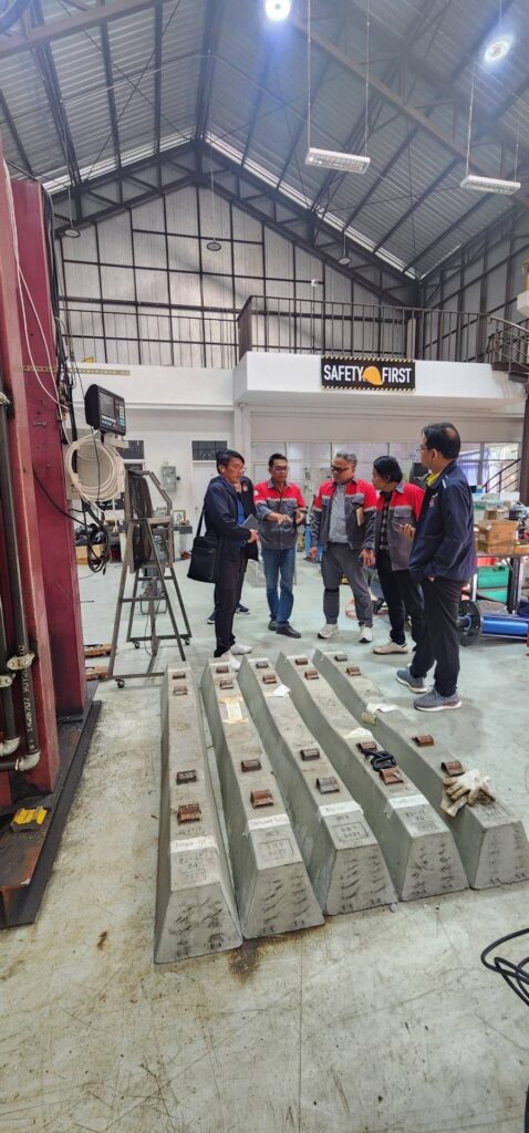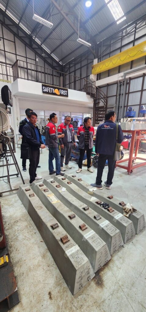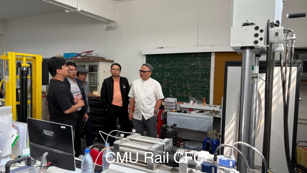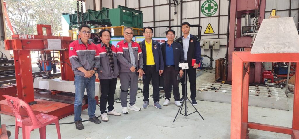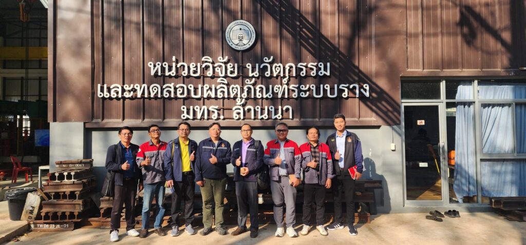 วันที่ 9 – 11 กุมภาพันธ์ 2568 คณะอุตสาหกรรมและเทคโนโลยี มหาวิทยาลัยเทคโนโลยีราชมงคลอีสาน วิทยาเขตสกลนคร นำโดย ผศ. ดร.สุริยา แก้วอาษา คณบดีคณะอุตสาหกรรมและเทคโนโลยี รศ. ดร.ปกรณ์ พัฒนานุโรจน์ หัวหน้าสาขาวิศวกรรมโยธา พร้อมด้วยคณาจารย์และนักศึกษาสาขาวิศวกรรมโยธา เข้าศึกษาดูงานการทดสอบ Pre Production หมอนคอนกรีตอัดแรงสำหรับรองรางรถไฟ ของสัญญา 3 ช่วง เชียงราย – เชียงของ โดย บริษัท รฉัตร เอ็นจิเนียริ่ง คอนซัลแตนท์ จำกัด ซึ่งได้รับการสนับสนุนจากศูนย์วิศวกรรมโยธาและระบบรางขั้นสูง มหาวิทยาลัยเชียงใหม่ ร่วมกับ หน่วยวิจัย นวัตกรรมและทดสอบผลิตภัณฑ์ระบบราง มหาวิทยาลัยเทคโนโลยีราชมงคลล้านนา และได้เข้าศึกษาดูงาน ณ ศูนย์วิศวกรรมโยธาและฐานรากระบบรางขนส่งขั้นสูง มหาวิทยาลัยเชียงใหม่ (CMU-ARCF Center) เพื่อแลกเปลี่ยนความรู้ด้านวิศวกรรมระบบราง โครงสร้างพื้นฐาน และการพัฒนางานวิจัยที่เกี่ยวข้อง ส่งเสริมความร่วมมือระหว่างสถาบันการศึกษา ผลักดันความก้าวหน้าทางวิศวกรรมระบบรางในประเทศไทย
