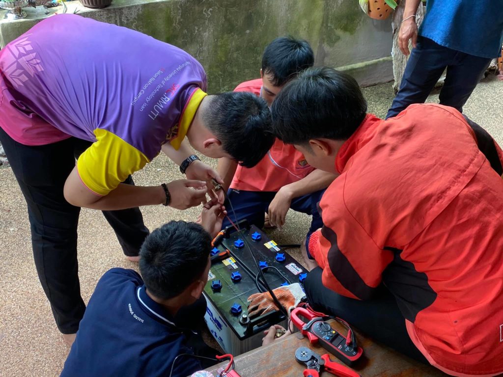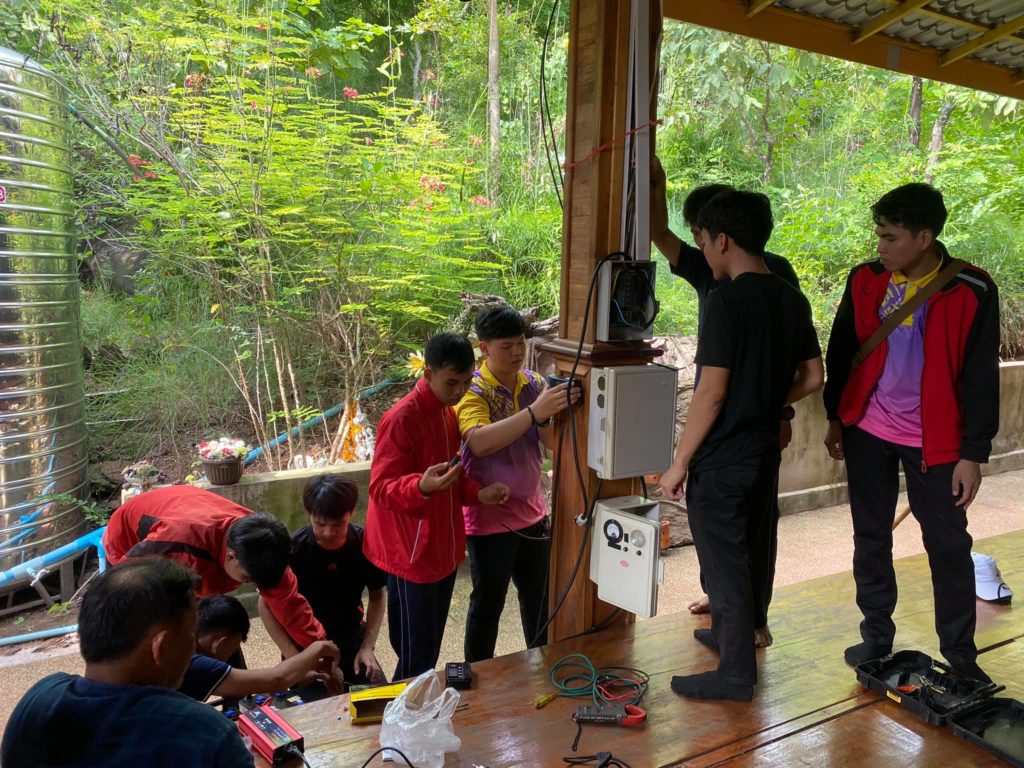 17 กรกฎาคม 2563 บัณฑิตนักปฏิบัติ คณะอุตสาหกรรมและเทคโนโลยี นำโดย ผศ.คมกฤษณ์ ศรีสุวรรณ์ อาจารย์เจษฎา พรหมเกษ และ อาจารย์ภานุมาศ แสนพวง อาจารย์ประจำสาขาวิศวกรรมไฟฟ้า พร้อมด้วยนักศึกษา สาขาวิศวกรรมไฟฟ้า ชั้นปีที่ 2 และ ชั้นปีที่ 3 ประยุกต์ใช้ความรู้ที่ได้จากการเรียนการสอนในห้องเรียน ทำกิจกรรมสาธารณประโยชน์เพื่อสังคม โดยการติดตั้งระบบไฟฟ้าพลังงานแสงอาทิตย์ ณ วัดป่าแสงธรรมขันติโก ตำบลนาใน อำเภอพรรณานิคม จังหวัดสกลนคร