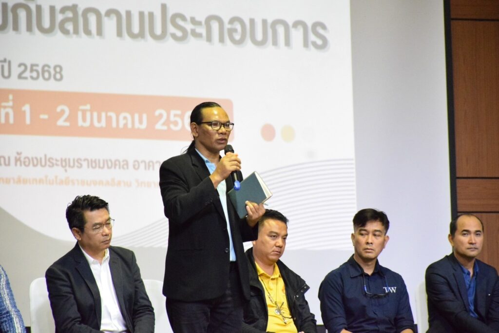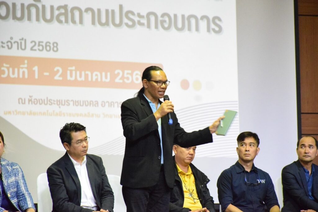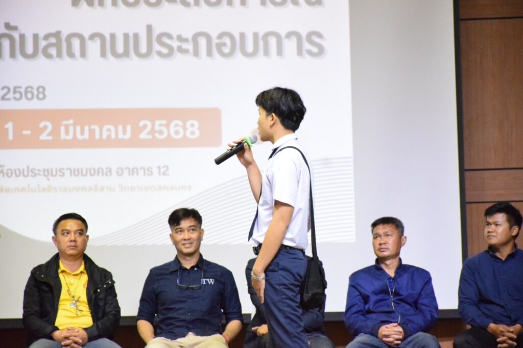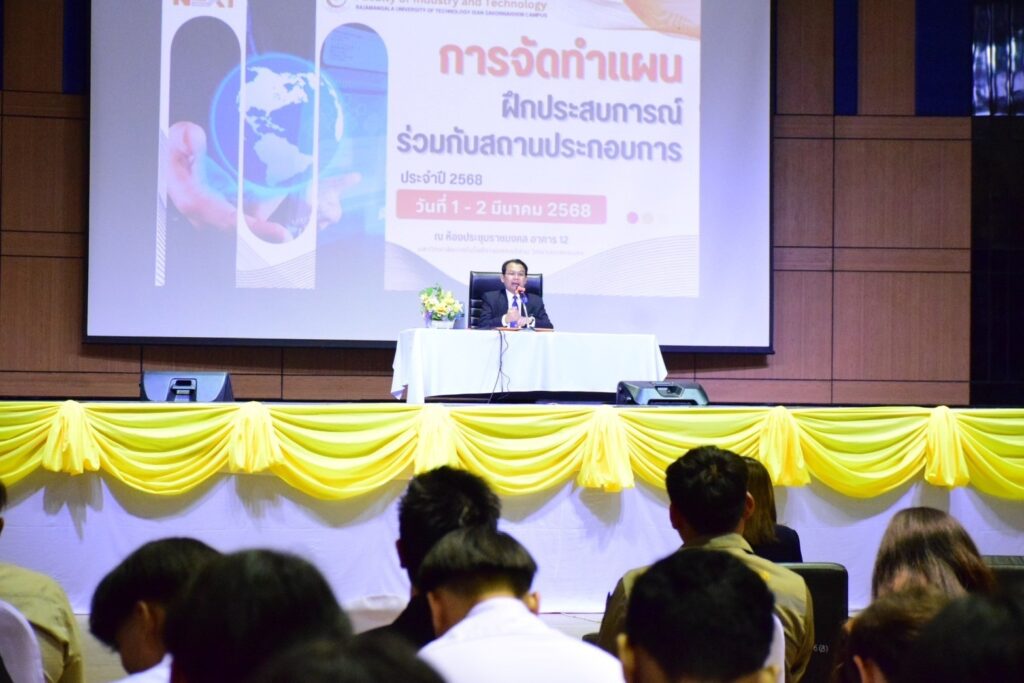 วันที่ 1 – 2 มีนาคม 2568 คณะอุตสาหกรรมและเทคโนโลยี มหาวิทยาลัยเทคโนโลยีราชมงคลอีสาน วิทยาเขตสกลนคร จัดกิจกรรมจัดทำแผนฝึกประสบการณ์ร่วมกับสถานประกอบการ ประจำปี 2568 ณ ห้องประชุมราชมงคล อาคารเรียนรวม (อาคาร 12 ) เพื่อจัดทำแผนฝึกประสบการณ์วิชาชีพร่วมกับสถานประกอบการณ์ให้มีประสิทธิภาพ และสอดคล้องกับความต้องการของสถานประกอบการ โดยมีผู้แทนจากสถานประกอบการจำนวน 20 หน่วยงาน เข้าร่วมการเสวนาแลกเปลี่ยนความรู้และความต้องการของสถานประกอบการ ร่วมกับคณาจารย์ คณะอุตสาหกรรมและเทคโนโลยี เพื่อนำไปพัฒนาแนวทางการจัดทำแผนฝึกประสบการณ์วิชาชีพของนักศึกษา ในการนี้ ผศ. ดร.สุริยา แก้วอาษา คณบดีคณะอุตสาหกรรมและเทคโนโลยี ให้เกียรติเป็นประธานในพิธีเปิดกิจกรรมในครั้งนี้ โดยมีนักศึกษาระดับประกาศนียบัตรวิชาชีพ และระดับประกาศนียบัตรวิชีพชั้นสูง เข้าร่วมกิจกรรมในครั้งนี้จำนวน 250 คน