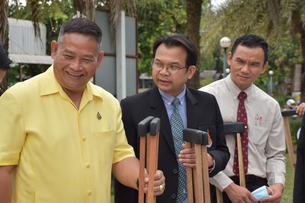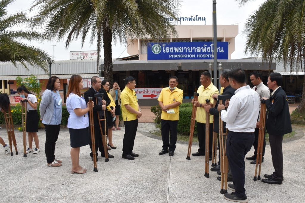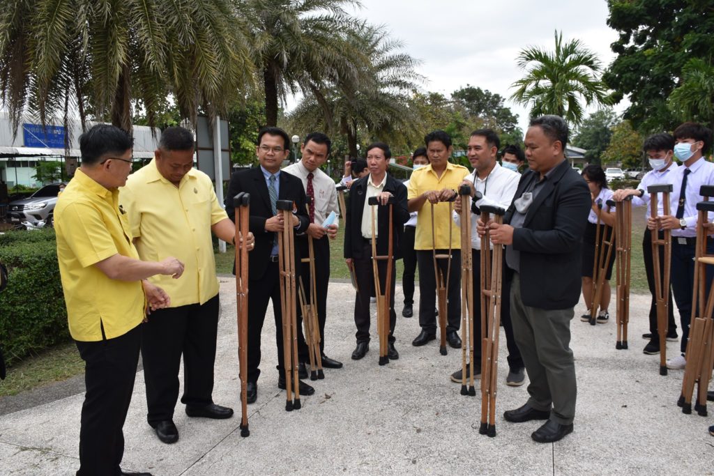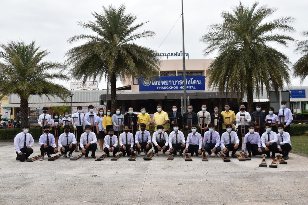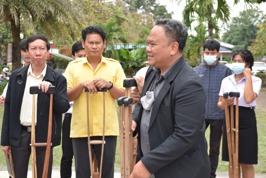 11 พฤศจิกายน 2563 สาขาวิศวกรรมโยธา คณะอุตสาหกรรมและเทคโนโลยี มหาวิทยาลัยเทคโนโลยีราชมงคลอีสาน วิทยาเขตสกลนคร นำโดย รศ.ดร.โฆษิต ศรีภูธร รองอธิการบดีประจำวิทยาเขตสกลนคร ผศ.ดร.สุริยา แก้วอาษา คณบดีคณะอุตสาหกรรมและเทคโนโลยี พร้อมด้วยคณะผู้บริหาร คณาจารย์ นักศึกษาสาขาวิศวกรรมโยธา มอบไม้ค้ำยันช่วยพยุงเดินซึ่งเป็นผลงานของนักศึกษาสาขาวิศวกรรมโยธาให้แก่โรงพยาบาลพังโคน จำนวน 30 คู่ เพื่อใช้ประโยชน์ในทางการแพทย์ ณ โรงพยาบาลพังโคน อำเภอพังโคน จังหวัดสกลนคร ซึ่งได้รับเกียรติจากนายแพทย์วรรณกร เล่าสุอังกูร ผู้อำนวยการโรงพยาบาลพังโคน และจ่าสิบเอกคำนึง พรหมพิมพ์ นายอำเภอพังโคน ให้เกียรติรับมอบในครั้งนี้ โดยมีอาจารย์ผู้ให้คำปรึกษาคือ อาจารย์ ดร.นัฐวุฒิ เหมะธุลิน อาจารย์ผู้รับผิดชอบ และอาจารย์ ดร.โกวิท บุญรอด หัวหน้าสาขาวิศวกรรมโยธา โดยมีวัตถุประสงค์เพื่อการบุรณาการนำงานสร้างสรรค์ที่ได้จากหลักสูตรนำไปใช้ในชุมชน ตลอดจนหน่วยงานต่างๆ และสนับสนุนส่งเสริมให้นักศึกษามีคุณลักษณะบัณฑิตที่พึงประสงค์ เป็นไปตามที่หลักสูตรกำหนด