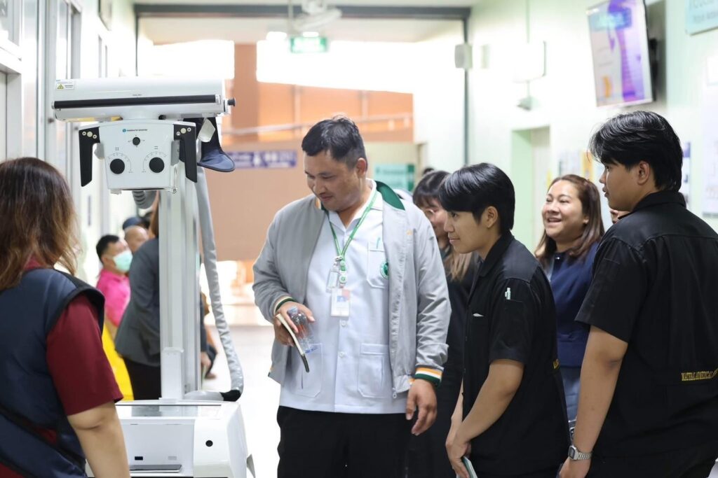 วันที่ 4 มีนาคม 2568 หลักสูตรวัสดุและอุปกรณ์ฟิสิกส์การแพทย์ คณะอุตสาหกรรมและเทคโนโลยี มหาวิทยาลัยเทคโนโลยีราชมงคลอีสาน วิทยาเขตสกลนคร จัดกิจกรรมการส่งเสริมความเป็นเลิศด้านทักษะการเรียนรู้ด้านอุปกรณ์การรักษาทางการแพทย์ สําหรับนักศึกษาหลักสูตรวัสดุและอุปกรณ์ฟิสิกส์การแพทย์ โดยเข้าศึกษาดูงานด้านครุภัณฑ์ทางการแพทย์ ณ โรงพยาบาลวานรนิวาส ตำบลคอนสวรรค์ อำเภอวานรนิวาส จังหวัดสกลนคร เพื่อให้นักศึกษามีความรู้ความเข้าใจในการใช้งานของอุปกรณ์ทางการแพทย์ในการรักษาโรคของแผนกงานต่างๆ ได้แก่ แผนกงานห้องผ่าตัดและศัลยกรรม แผนกงานหัวใจและหลอดเลือด แผนกงานวิสัญญี แผนกงานอุบัติเหตุและฉุกเฉิน แผนกงานกายภาพบําบัด และแผนกจักษุวิทยา โดยได้รับเกียรติจากคณะผู้บริหารและบุคลากรโรงพยาบาลวานรนิวาส ร่วมให้การต้อนรับ