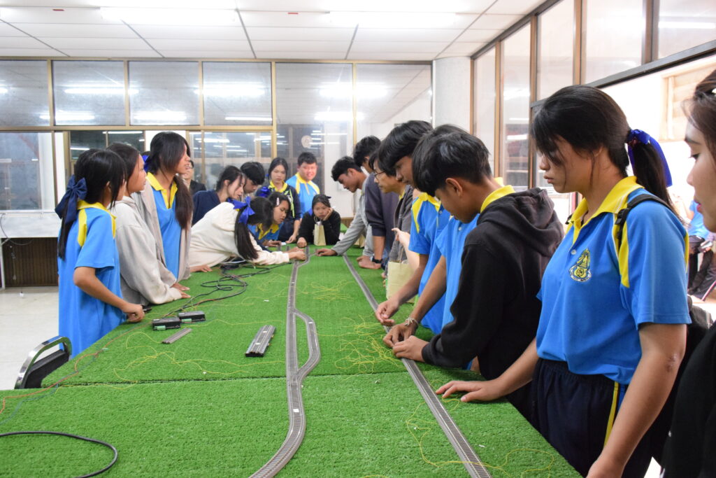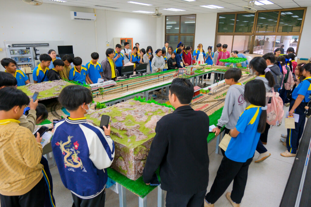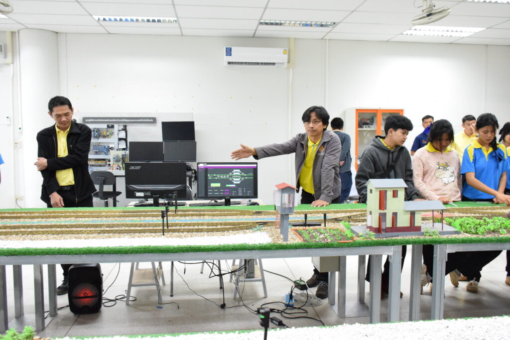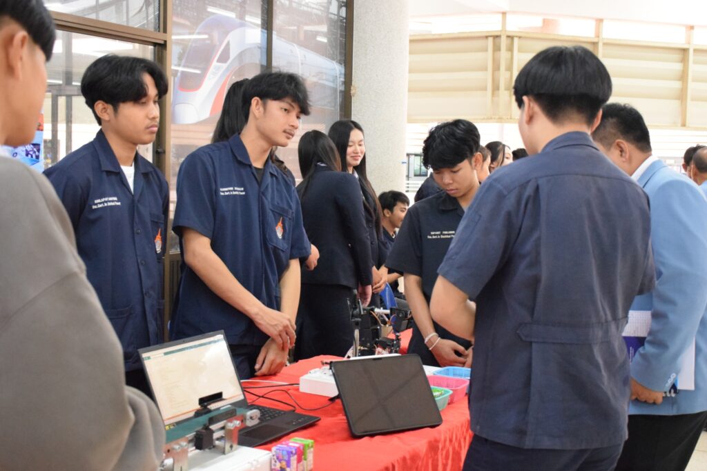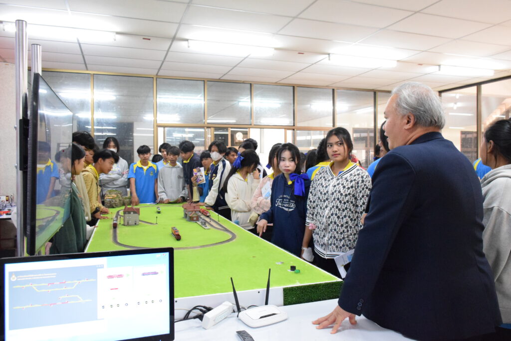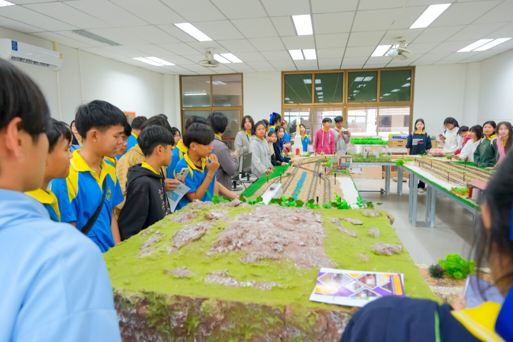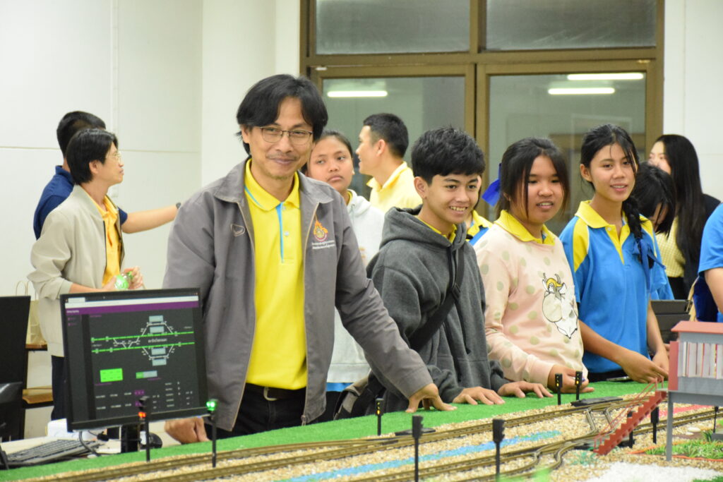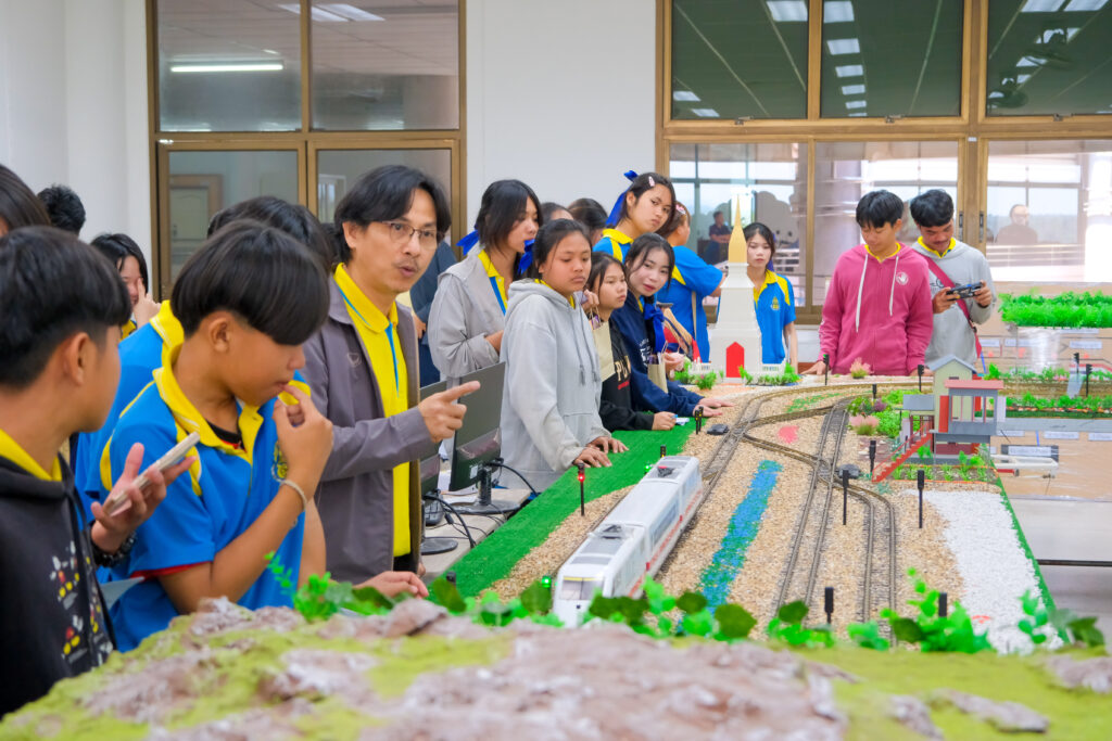 วันที่ 10 มีนาคม 2568 คณะอุตสาหกรรมและเทคโนโลยี มหาวิทยาลัยเทคโนโลยีราชมงคลอีสาน วิทยาเขตสกลนคร ร่วมต้อนรับคณะศึกษาดูงานจากโรงเรียนธาตุทองอำนวยวิทย์ สังกัดองค์การบริหารส่วนจังหวัดสกลนคร อำเภอวานรนิวาส จังหวัดสกลนคร นำโดย นายนนทชัย เวยสาร ผู้อำนวยการโรงเรียนธาตุทองอำนวยวิทย์ พร้อมด้วยคณะผู้บริหาร คณาจารย์และนักเรียน ในโอกาสเข้าศึกษาดูงาน ณ คณะอุตสาหกรรมและเทคโนโลยี โดยได้เข้าศึกษาดูงานห้องศูนย์ปฎิบัติการระบบขนส่งทางราง ห้องปฏิบัติการสร้างต้นแบบนวัตกรรม ห้องปฏิบัติการหุ่นยนต์แขนกล ห้องปฏิบัติการเทคโนโลยียานยนต์ไฟฟ้า ห้องปฎิบัติการระบบอาณัติสัญญาณรถไฟและระบบควบคุมสถานีรถไฟด้วยระบบสกาด้า ชุดฝึกปฎิบัติการอาณัติสัญญาณและการจราจร เยี่ยมชมผลงานนวัตกรรมของนักศึกษาโรงเรียนสาธิตเตรียมวิศวกรรมและเทคโนโลยี รวมทั้งเยี่ยมชมหัวรถจักรไฟฟ้าต้นแบบ ในการนี้ ผศ. ดร.สุริยา แก้วอาษา คณบดีคณะอุตสาหกรรมและเทคโนโลยีให้เกียรติเป็นประธานกล่าวต้อนรับคณะศึกษาดูงานในครั้งนี้ด้วย