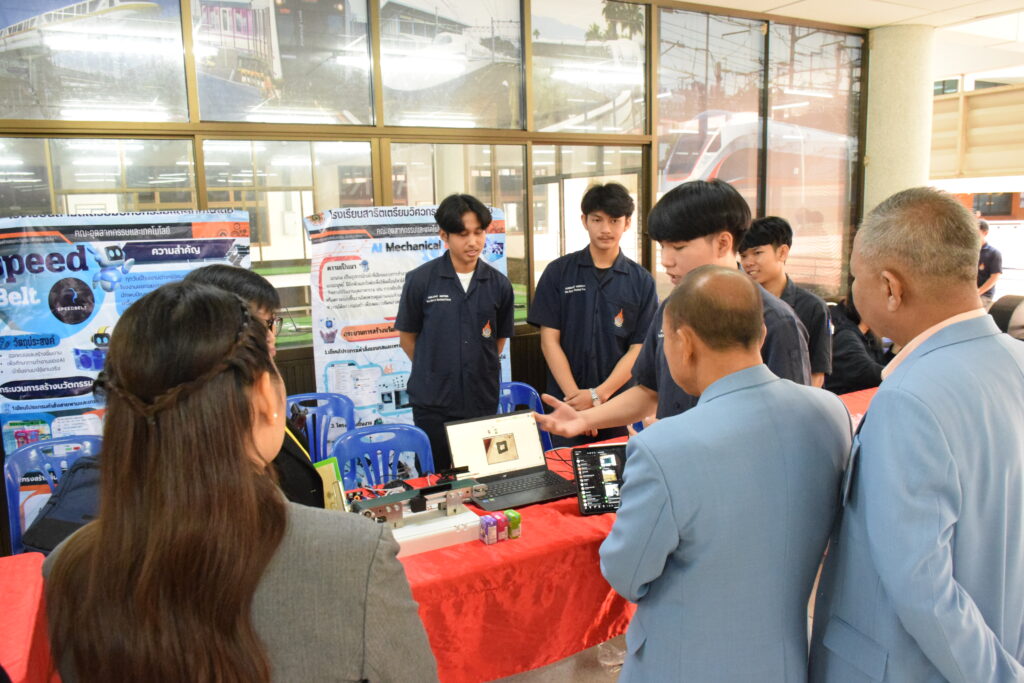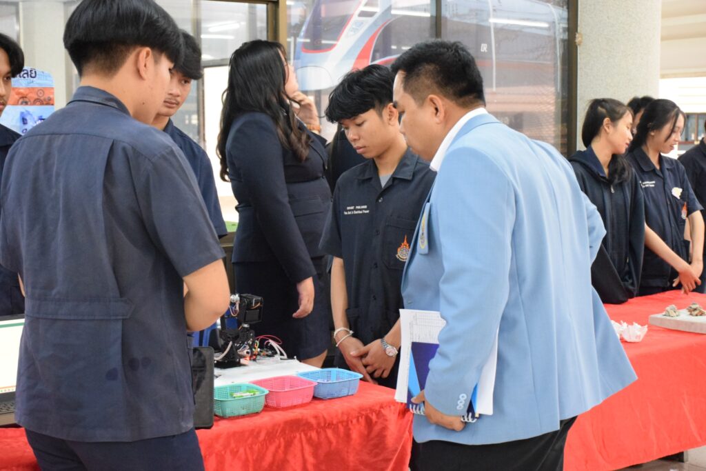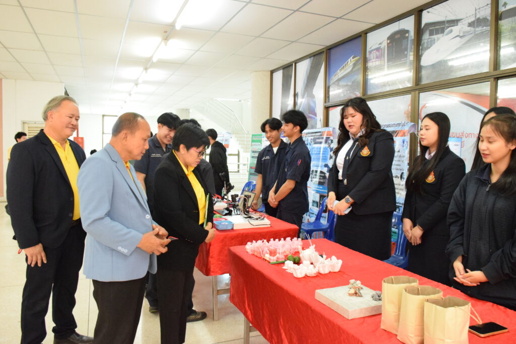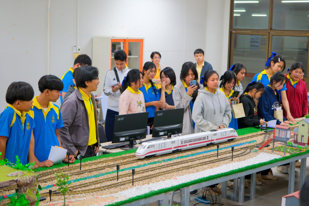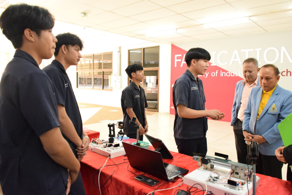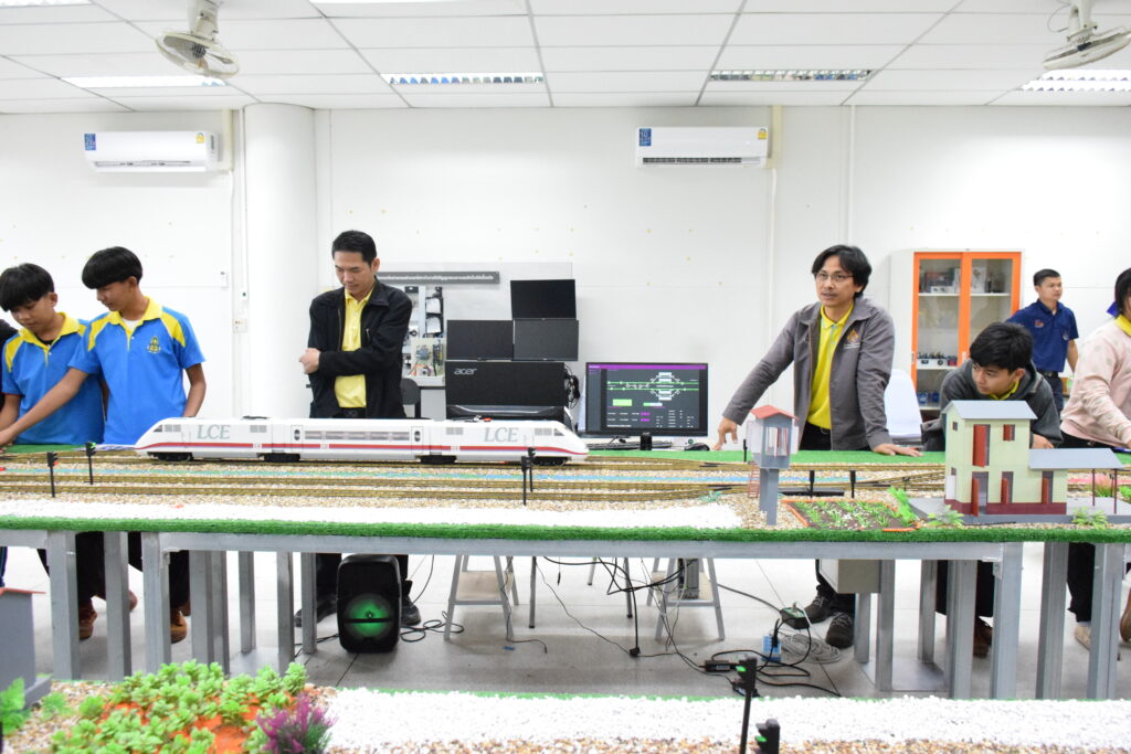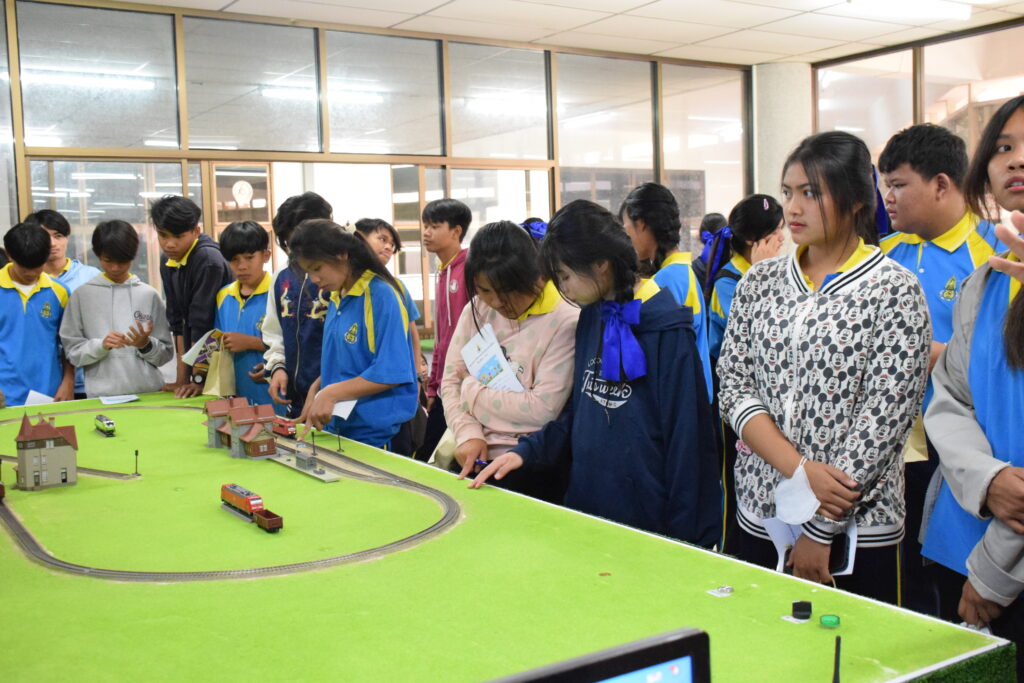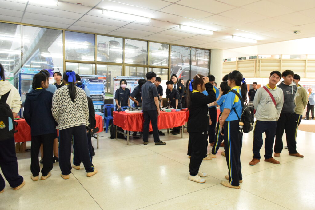 วันที่ 10 มีนาคม 2568 คณะอุตสาหกรรมและเทคโนโลยี มหาวิทยาลัยเทคโนโลยีราชมงคลอีสาน วิทยาเขตสกลนคร ร่วมต้อนรับคณะศึกษาดูงานจากโรงเรียนธาตุทองอำนวยวิทย์ สังกัดองค์การบริหารส่วนจังหวัดสกลนคร อำเภอวานรนิวาส จังหวัดสกลนคร นำโดย นายนนทชัย เวยสาร ผู้อำนวยการโรงเรียนธาตุทองอำนวยวิทย์ พร้อมด้วยคณะผู้บริหาร คณาจารย์และนักเรียน ในโอกาสเข้าศึกษาดูงาน ณ คณะอุตสาหกรรมและเทคโนโลยี โดยได้เข้าศึกษาดูงานห้องศูนย์ปฎิบัติการระบบขนส่งทางราง ห้องปฏิบัติการสร้างต้นแบบนวัตกรรม ห้องปฏิบัติการหุ่นยนต์แขนกล ห้องปฏิบัติการเทคโนโลยียานยนต์ไฟฟ้า ห้องปฎิบัติการระบบอาณัติสัญญาณรถไฟและระบบควบคุมสถานีรถไฟด้วยระบบสกาด้า ชุดฝึกปฎิบัติการอาณัติสัญญาณและการจราจร เยี่ยมชมผลงานนวัตกรรมของนักศึกษาโรงเรียนสาธิตเตรียมวิศวกรรมและเทคโนโลยี รวมทั้งเยี่ยมชมหัวรถจักรไฟฟ้าต้นแบบ ในการนี้ ผศ. ดร.สุริยา แก้วอาษา คณบดีคณะอุตสาหกรรมและเทคโนโลยีให้เกียรติเป็นประธานกล่าวต้อนรับคณะศึกษาดูงานในครั้งนี้ด้วย