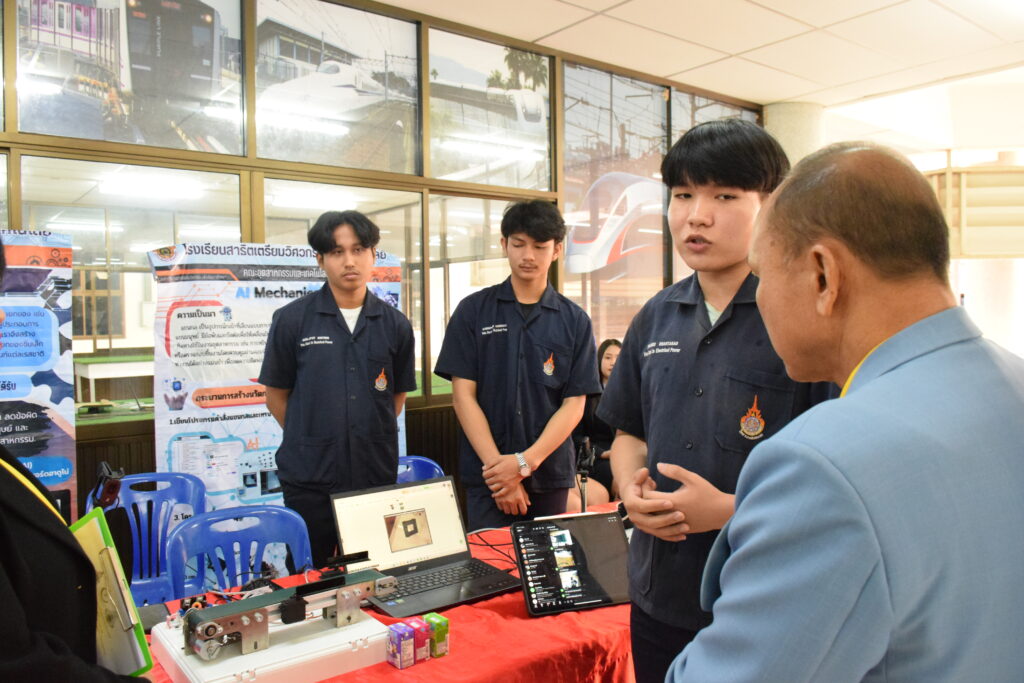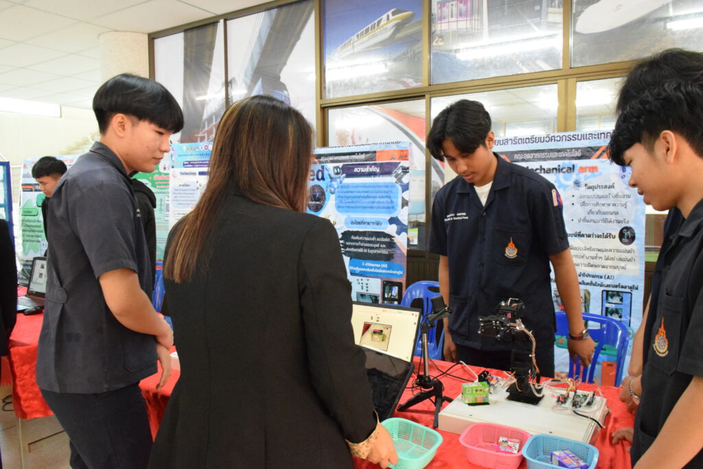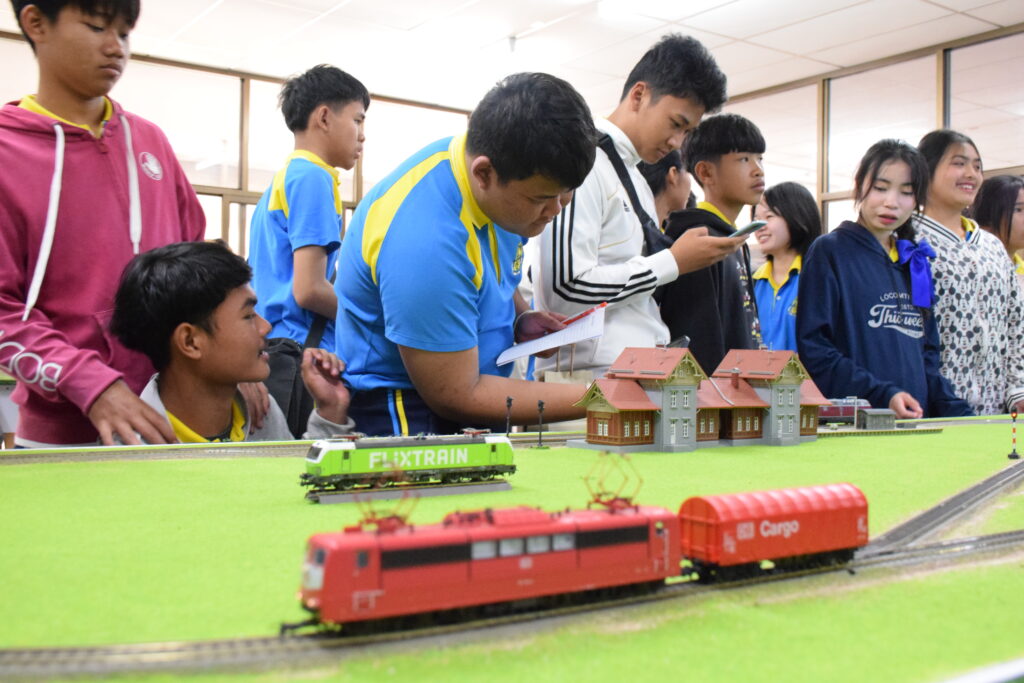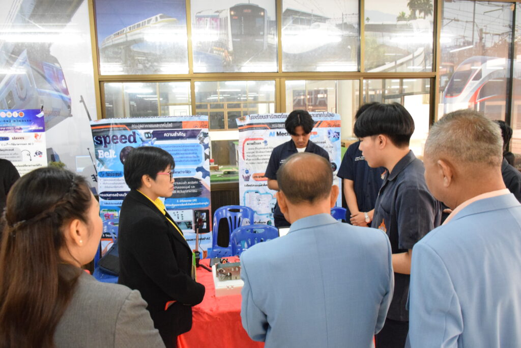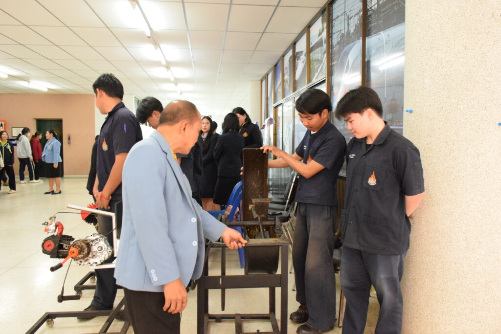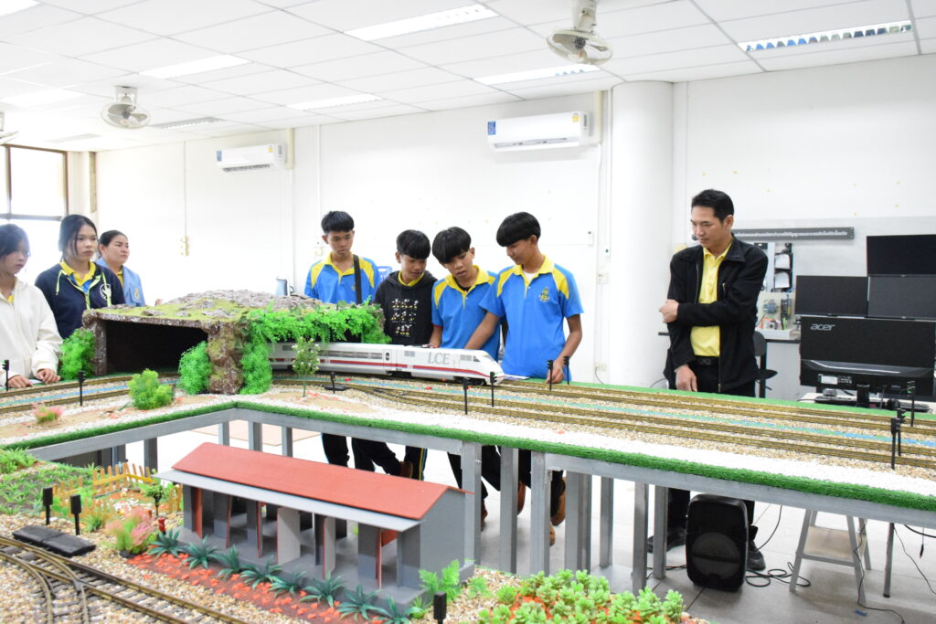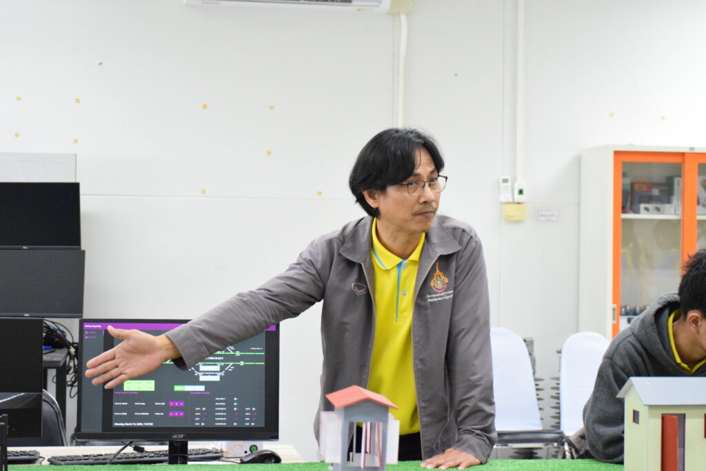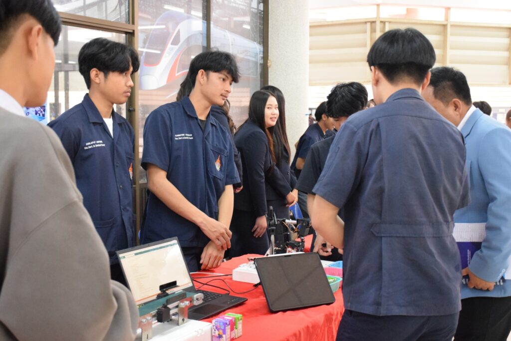 วันที่ 10 มีนาคม 2568 คณะอุตสาหกรรมและเทคโนโลยี มหาวิทยาลัยเทคโนโลยีราชมงคลอีสาน วิทยาเขตสกลนคร ร่วมต้อนรับคณะศึกษาดูงานจากโรงเรียนธาตุทองอำนวยวิทย์ สังกัดองค์การบริหารส่วนจังหวัดสกลนคร อำเภอวานรนิวาส จังหวัดสกลนคร นำโดย นายนนทชัย เวยสาร ผู้อำนวยการโรงเรียนธาตุทองอำนวยวิทย์ พร้อมด้วยคณะผู้บริหาร คณาจารย์และนักเรียน ในโอกาสเข้าศึกษาดูงาน ณ คณะอุตสาหกรรมและเทคโนโลยี โดยได้เข้าศึกษาดูงานห้องศูนย์ปฎิบัติการระบบขนส่งทางราง ห้องปฏิบัติการสร้างต้นแบบนวัตกรรม ห้องปฏิบัติการหุ่นยนต์แขนกล ห้องปฏิบัติการเทคโนโลยียานยนต์ไฟฟ้า ห้องปฎิบัติการระบบอาณัติสัญญาณรถไฟและระบบควบคุมสถานีรถไฟด้วยระบบสกาด้า ชุดฝึกปฎิบัติการอาณัติสัญญาณและการจราจร เยี่ยมชมผลงานนวัตกรรมของนักศึกษาโรงเรียนสาธิตเตรียมวิศวกรรมและเทคโนโลยี รวมทั้งเยี่ยมชมหัวรถจักรไฟฟ้าต้นแบบ ในการนี้ ผศ. ดร.สุริยา แก้วอาษา คณบดีคณะอุตสาหกรรมและเทคโนโลยีให้เกียรติเป็นประธานกล่าวต้อนรับคณะศึกษาดูงานในครั้งนี้ด้วย