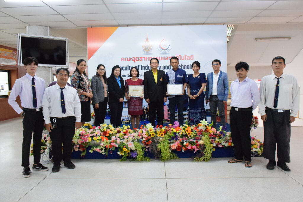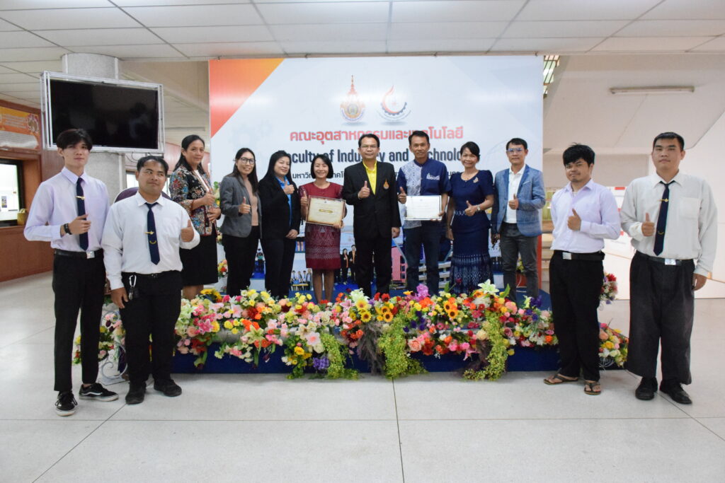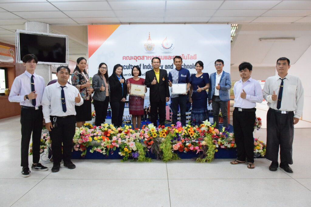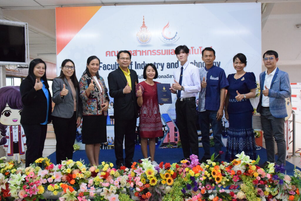 วันที่ 17 มีนาคม 2568 โปรแกรมวิชาคอมพิวเตอร์ธุรกิจ สาขาบริหารธุรกิจ คณะอุตสาหกรรมและเทคโนโลยี จัดพิธีมอบเกียรติบัตรเพื่อขอบคุณผู้นำชุมชน ในโอกาสที่ผลงานนักศึกษาได้รับรางวัล ในโครงการประกวดสื่อสร้างสรรค์เล่าเรื่องบทสะท้อนความพอเพียงที่ยั่งยืนของชุมชนในรูปแบบวีดิโอ ในหัวข้อ“หนึ่งเรื่องพอเพียง หล่อเลี้ยงชุมชน” ผลงาน: การพัฒนาสื่อประชาสัมพันธ์ยุคดิจิทัลเพื่อการส่งเสริมวิสาหกิจชุมชนไทโย้ยอุ่มเหม้า จัดโดย วิทยสถานด้านสังคมศาสตร์ มนุษยศาสตร์ และศิลปกรรมศาสตร์แห่งประเทศไทย (ธัชชา) กระทรวงการอุดมศึกษา วิทยาศาสตร์ วิจัยและนวัตกรรม ซึ่งเป็นความร่วมมือของผู้นำชุมชนไทโย้ยอุ่มเหม้า นายสีสุพรรณ ศรีสร้อย ผู้ใหญ่บ้าน และ นางนัทธมน ไชยวรรณ ประธานวิสาหกิจชุมชนไทโย้ยอุ่มเหม้า ทั้งนี้ยังช่วยเชื่อมความสัมพันธ์อันดีร่วมกับชุมชน นอกจากนี้ ในการนี้ ผศ. ดร.สุริยา แก้วอาษาคณบดีคณะอุตสาหกรรมและเทคโนโลยี ร่วมกล่าวแสดงความยินดีและเป็นประธานมอบเกียรติบัตรให้ผู้นำชุมชนในครั้งนี้