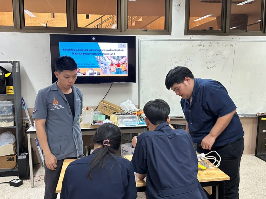 วันที่ 15 – 16 มีนาคม 2568 โรงเรียนสาธิตเตรียมวิศวกรรมและเทคโนโลยี คณะอุตสาหกรรมและเทคโนโลยี จัดกิจกรรมส่งเสริมการหารายได้จากการบูรณาการเครื่องใช้ไฟฟ้าเก่าให้สามารถใช้ทรัพยากรได้อย่างมีคุณค่า ให้กับนักศึกษาทุนนวัตกรรมสายอาชีพชั้นสูง กองทุนเพื่อความเสมอภาคทางการศึกษา (กสศ.) ณ อาคารอเนกประสงค์ มหาวิทยาลัยเทคโนโลยีราชมงคลอีสาน วิทยาเขตสกลนคร เพื่อพัฒนาทักษะวิชาชีพด้านการซ่อมแซมเครื่องใช้ไฟฟ้า สามารถนำความรู้มาบูรณาการซ่อมเครื่องใช้ไฟฟ้าที่ชำรุดหรือเสื่อมสภาพให้กลับมาใช้งานได้และเกิดประโยชน์สูงสุด อีกทั้งยังช่วยสร้างรายได้ให้กับตนเองและครอบครัวได้อีกด้วย ในการนี้ ผศ. ดร.พรเทพ ปัญญาแก้ว รองคณบดีฝ่ายวิชาการและวิจัย ให้เกียรติเป็นประธานในพิธีเปิดโครงการ โดยมีนักศึกษาทุนนวัตกรรมสายอาชีพชั้นสูง ประเภททุน 5 ปี ปวช. รุ่นที่ 4 เข้าร่วมโครงการจำนวน 20 คน