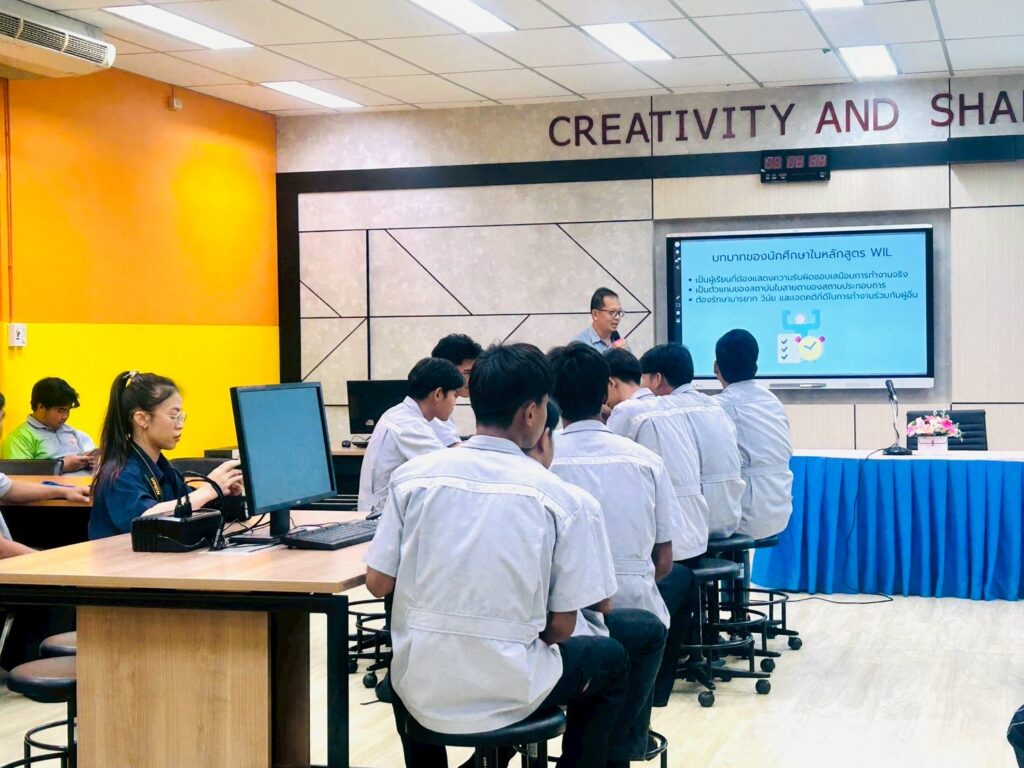 วันที่ 22 พฤษภาคม 2568 คณะอุตสาหกรรมและเทคโนโลยี มหาวิทยาลัยเทคโนโลยีราชมงคลอีสาน วิทยาเขตสกลนคร จัดกิจกรรมวิชาการและวิชาชีพที่ส่งเสริมคุณลักษณะบัณฑิตที่พึงประสงค์ ณ ห้องปฏิบัติการสร้างต้นแบบนวัตกรรม (FabLab) อาคารสำนักงานคณบดีคณะอุตสาหกรรมและเทคโนโลยี โดยมีวัตถุประสงค์เพื่อเสริมสร้างความรู้ ความเข้าใจ และการตระหนักรู้ในคุณธรรมจริยธรรมที่เหมาะสมสำหรับการใช้สื่อดิจิทัลอย่างรับผิดชอบในกลุ่มวัยรุ่น ปลูกฝังค่านิยมในการเคารพสิทธิผู้อื่น การใช้สื่ออย่างมีมารยาท และการอยู่ร่วมกันในสังคมดิจิทัลอย่างสร้างสรรค์ โดยได้รับเกียรติจาก รศ. ดร.ประสิทธิ์ ชาระ ผู้ช่วยคณบดีด้านพัฒนานักศึกษาและเศรษฐกิจพอเพียง เป็นวิทยากรบรรยายพิเศษในหัวข้อเรื่อง การส่งเสริมคุณธรรม จริยธรรม สำหรับวัยรุ่นยุคดิจิทัล โดยมีนักศึกษาระดับประกาศนียบัตรวิชาชีพชั้นสูงสาขาวิชาเมคคาทรอนิกส์และวิทยาการหุ่นยนต์ โครงการบูรณาการการเรียนรู้กับการทำงาน รูปแบบ Work-integrated Learning (WiL) เข้าร่วมกิจกรรมในครั้งนี้จำนวน 35 คน