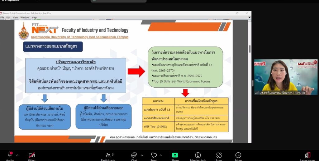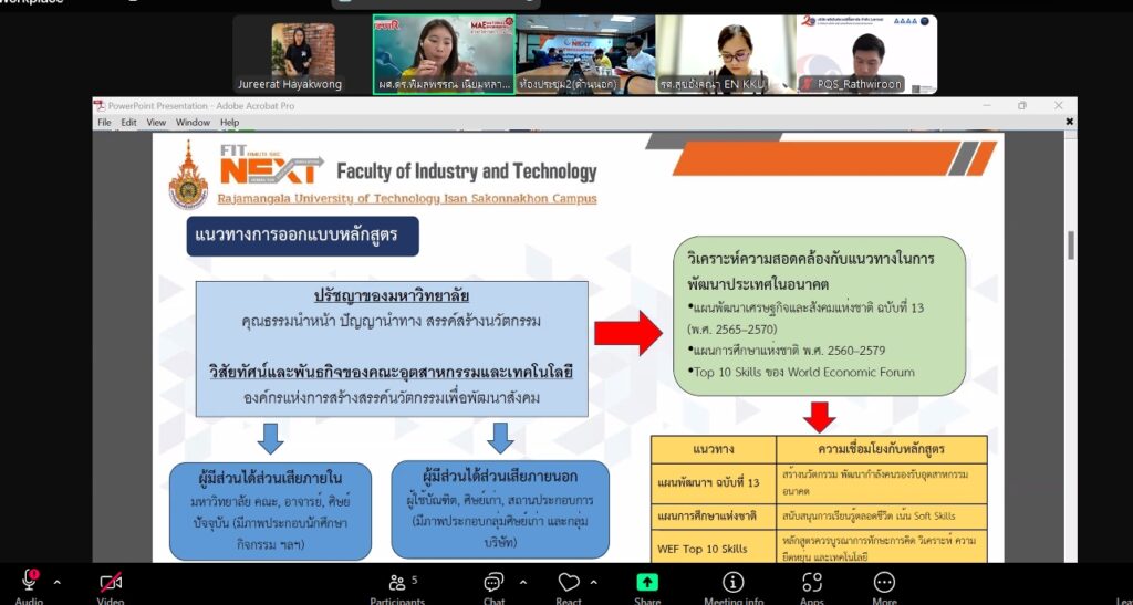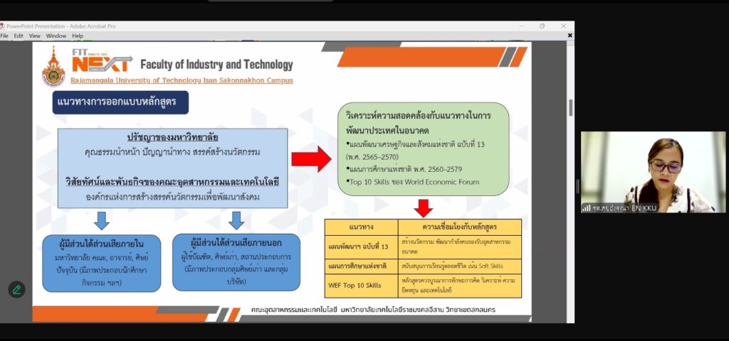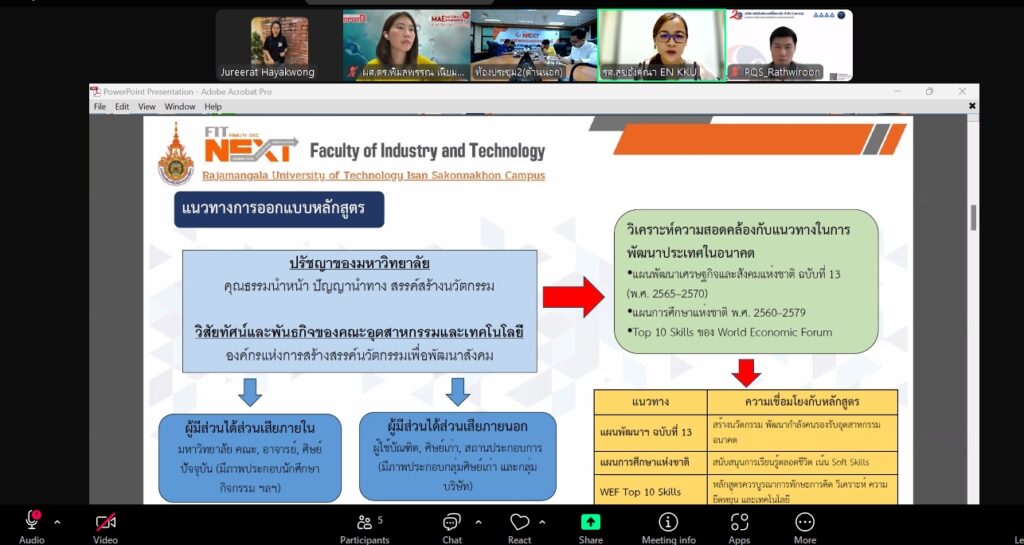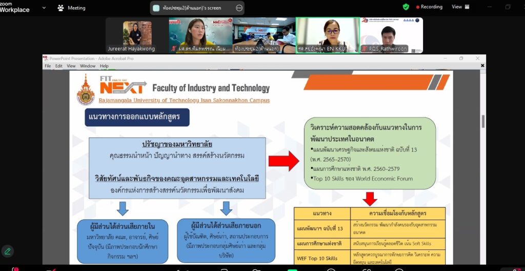 วันที่ 26 พฤษภาคม 2568 คณะอุตสาหกรรมและเทคโนโลยี มหาวิทยาลัยเทคโนโลยีราชมงคลอีสาน วิทยาเขตสกลนคร จัดกิจกรรมอบรมการพัฒนาและยกร่างหลักสูตรระดับปริญญาโท หลักสูตรวิศวกรรมศาสตรมหาบัณฑิต สาขาวิชาวิศวกรรมอุตสาหการและระบบการผลิต (หลักสูตรใหม่ พ.ศ. 2569) โดยการประชุมในรูปแบบผสมผสาน (Hybrid Meeting) ผ่านระบบสื่ออิเล็กทรอนิกส์ (Zoom Meeting) โดยมี วัตถุประสงค์เพื่อพัฒนาหลักสูตรให้มีมาตรฐานสอดคล้องกับเกณฑ์มาตรฐานหลักสูตร มาตรฐานวิชาชีพ และตอบสนองความต้องการของ สถานประกอบการ ในการนี้ อาจารย์ ดร.อรรคชัยภูผานิล ผู้ช่วยคณบดีด้านพัฒนาหลักสูตรและการเรียนรู้ตลอดชีวิต ให้เกียรติเป็นประธาน พร้อมกล่าวต้อนรับผู้ทรงคุณวุฒิ นำโดย รศ. ดร.สุขอังคณา แถลงกัณฑ์ มหาวิทยาลัยขอนแก่น ผศ. ดร.พิมลพรรณ เนียมหลาง มทร.รัตนโกสินทร์ และ คุณรัฐวิรุฬห์ ชาญจึงถาวร กรรมการบริษัท บริษัท พรีเมียร์ควอลิตี้สตาร์ช จํากัด (มหาชน)