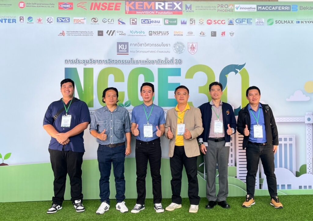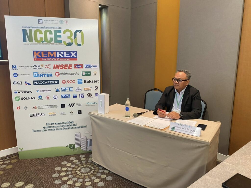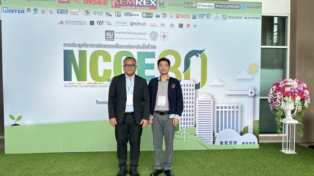 วันที่ 28 – 30 พฤษภาคม 2568 คณาจารย์และนักศึกษาสาขาวิชาวิศวกรรมโยธา คณะอุตสาหกรรมและเทคโนโลยี เข้าร่วมและนำเสนอบทความวิจัยในการประชุมวิชาการโยธาแห่งชาติ ครั้งที่ 30 จัดโดยภาควิชาวิศวกรรมโยธา คณะวิศวกรรมศาสตร์ กำแพงแสน มหาวิทยาลัยเกษตรศาสตร์ วิทยาเขตกำแพงแสน ร่วมกับ วิศวกรรมสถานแห่งประเทศไทย ในพระบรมราชูปถัมภ์ (วสท.) ณ ศูนย์ประชุมนานาชาติจุฬาภรณ์ โรงแรม เดอะเกษตรหัวหิน จังหวัดประจวบคีรีขันธ์ โดยมี รศ. ดร.ปกรณ์ พัฒนานุโรจน์ พร้อมด้วย ผศ. ดร.จิรวัฒน์ ศุภโกศล อาจารย์ ดร.โกวิท บุญรอด อาจารย์อุกฤษฎ์ โข่ศรี อาจารย์พุฒิพัทธ์ ราชคำ อาจารย์ภาณุพงศ์ จันฤาไชย และนักศึกษาระดับปริญญาโท สาขาวิชาวิศวกรรมโยธา เข้าร่วมนำเสนอผลงาน โดยผลงานของ ผศ. ดร.จิรวัฒน์ ศุภโกศล ได้รับรางวัล “บทความยอดเยี่ยม” บทความเรื่อง “การประเมินการเกิดภัยแล้ง ระดับตําบลภายใต้การเปลี่ยนแปลงสภาพภูมิอากาศด้วยดัชนีความแห้งแล้ง มาตรฐานค่าการระเหยและการคายน้ำ กรณีศึกษาลุ่มน้ำชีส่วนที่ 4” ในสาขาวิศวกรรมทรัพยากรน้ำ ทั้งนี้ อาจารย์ ดร.โกวิท บุญรอด ผู้ช่วยคณบดีด้านประชาสัมพันธ์และภาพลักษณ์องค์กร ได้รับเชิญเป็น ประธานภาคบรรยายสำหรับการนำเสนอผลงานทางวิชาการ ประจำห้องสาขาวิศวกรรมทรัพยากรน้ำในครั้งนี้ด้วย