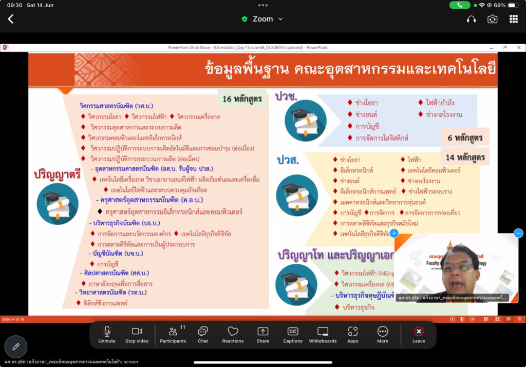 คณะอุตสาหกรรมและเทคโนโลยี จัดกิจกรรมปฐมนิเทศนักศึกษาใหม่ ระดับบัณฑิตศึกษา ประจำปีการศึกษา 2568