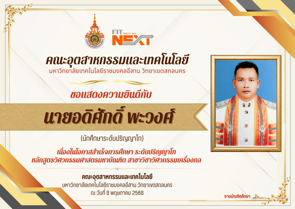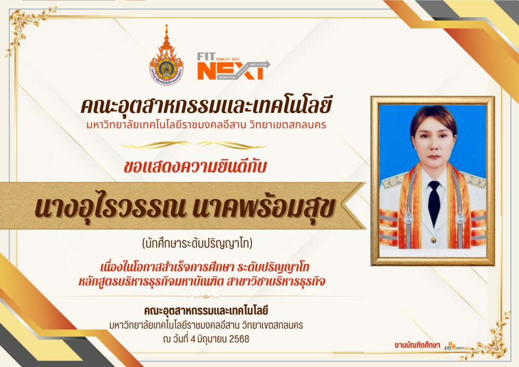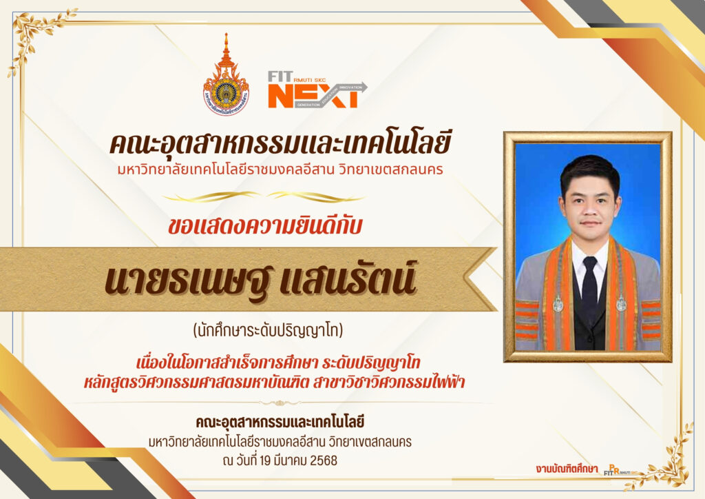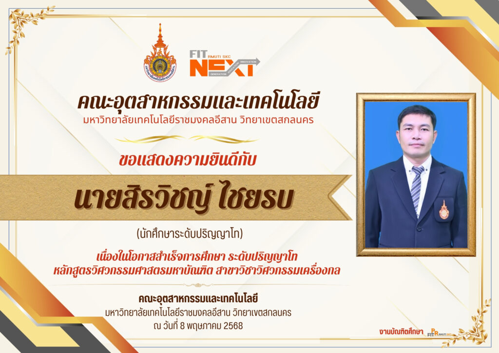 นัขอแสดงความยินดีกับนักศึกษาระดับปริญญาโท คณะอุตสาหกรรมและเทคโนโลยี