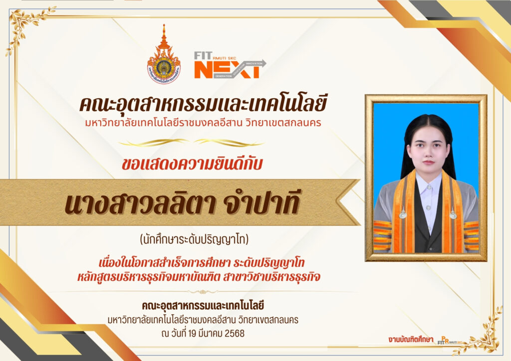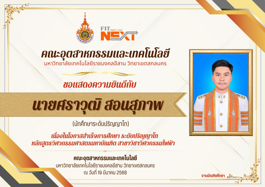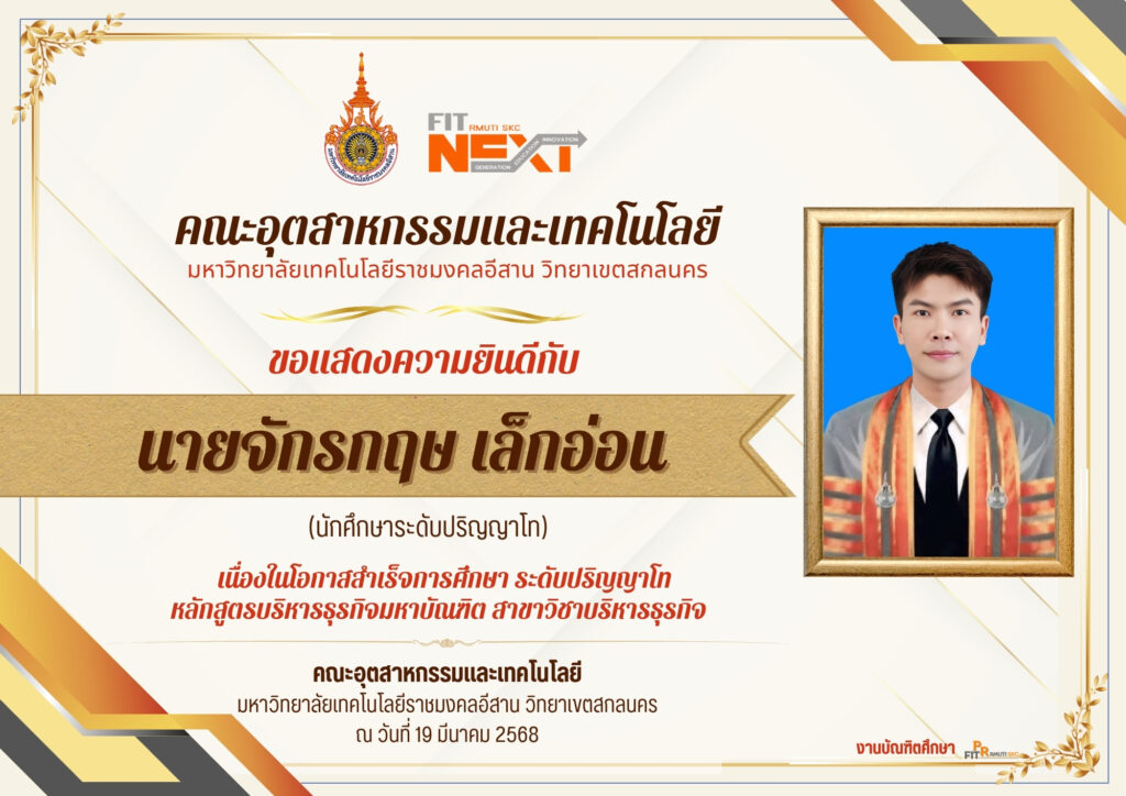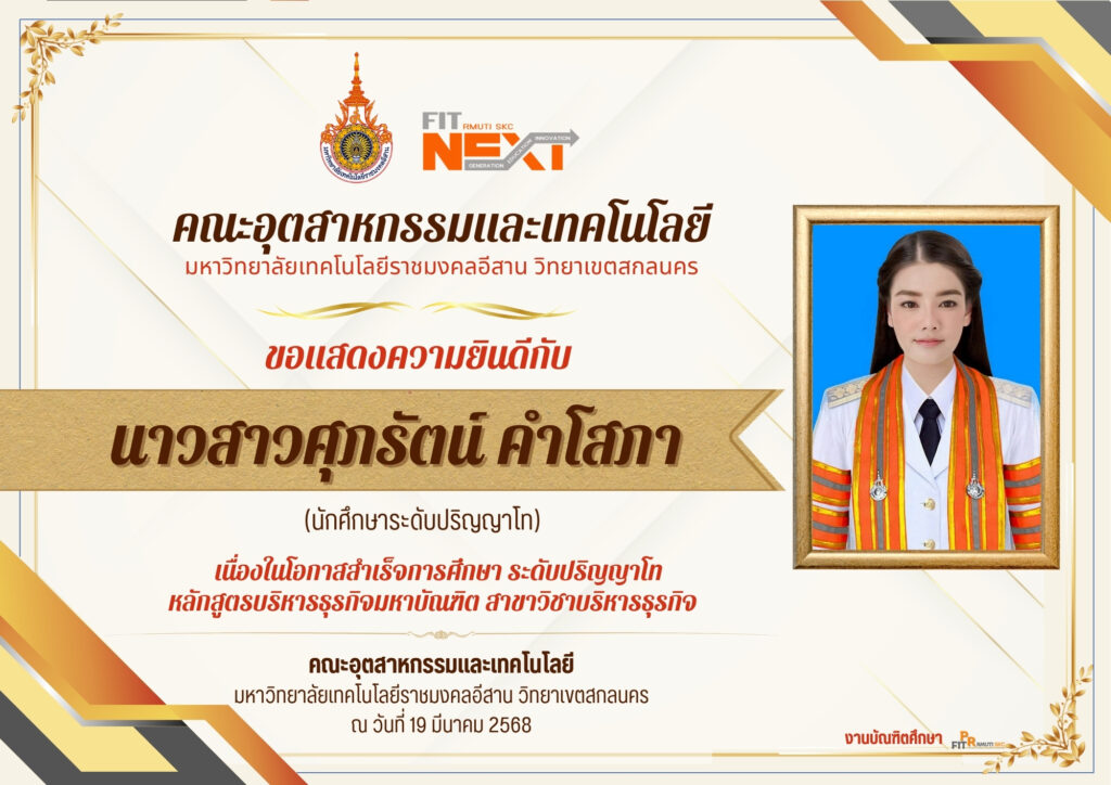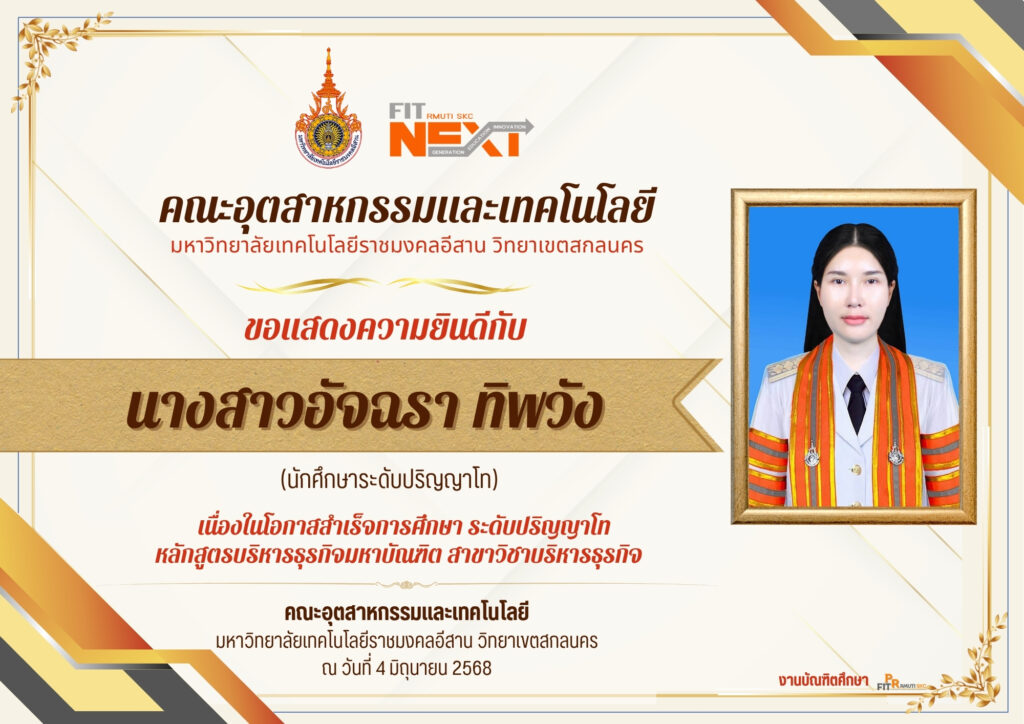 นัขอแสดงความยินดีกับนักศึกษาระดับปริญญาโท คณะอุตสาหกรรมและเทคโนโลยี
